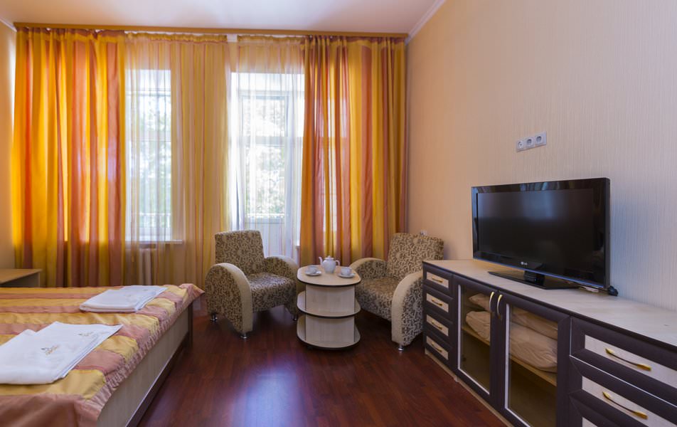 В корпусе имеются двухместные однокомнатные номера полулюкс, которые находятся на третьем и четвертом этаже. С балконом.