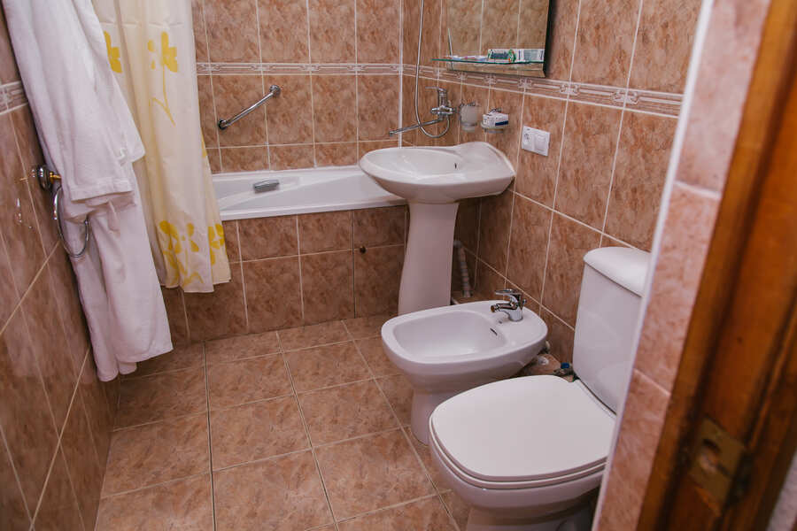 В номере есть балкон с видом на горы. В номере есть совмещенный санузел с душевой кабинкой, умывальником и унитазом. Гостям предоставляется комплект полотенец и туалетный набор. Уборка в номере проводится с понедельника по пятницу.