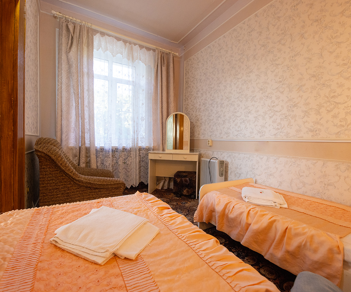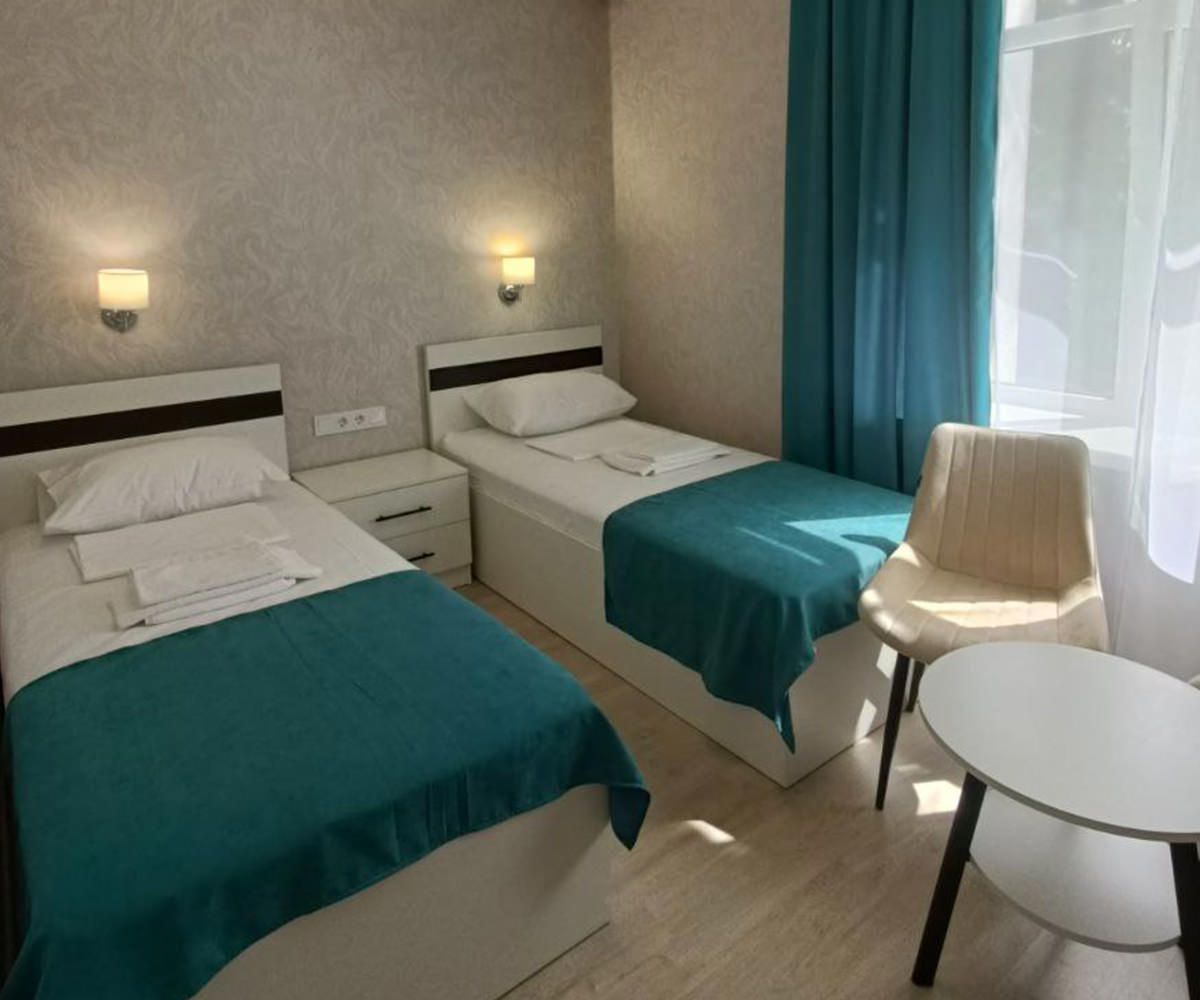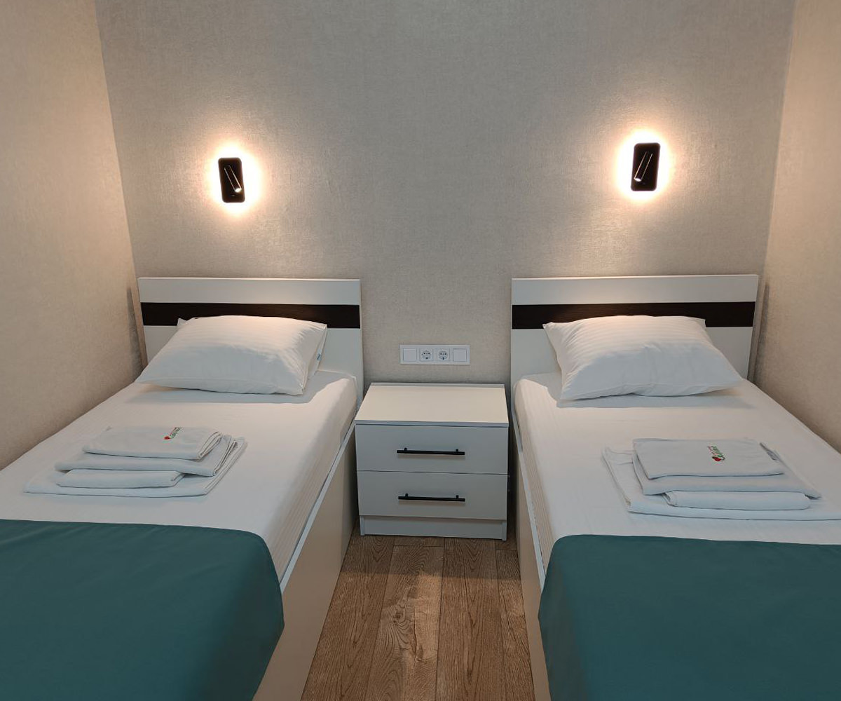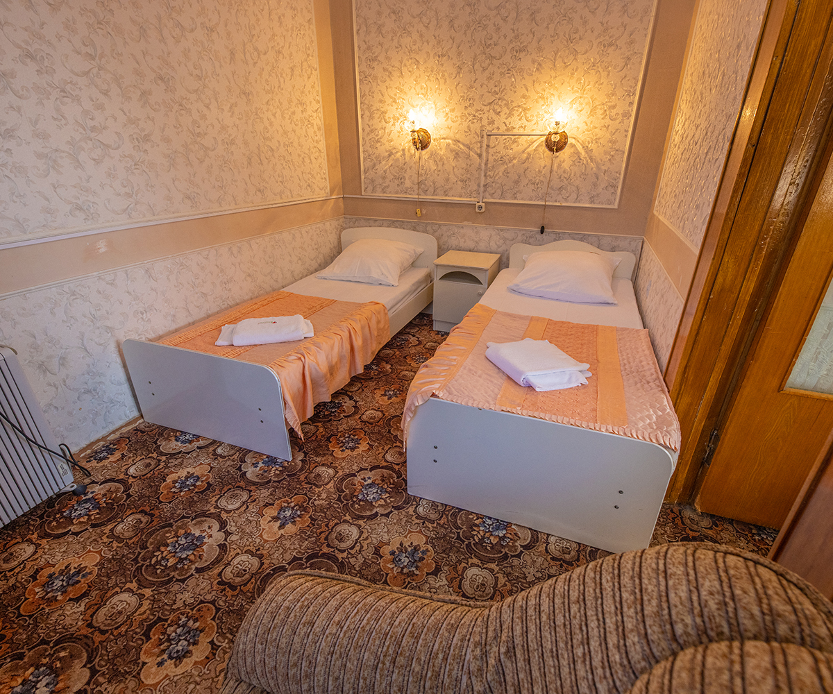 Количество проживающих в номерах: от одного до трех человек. Двухместный 1 категории и Люкс дают возможность подселить третьего гостя.