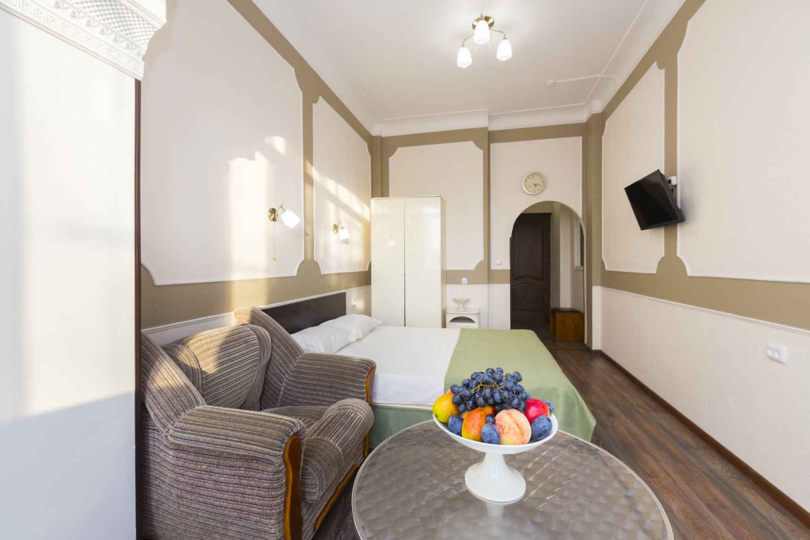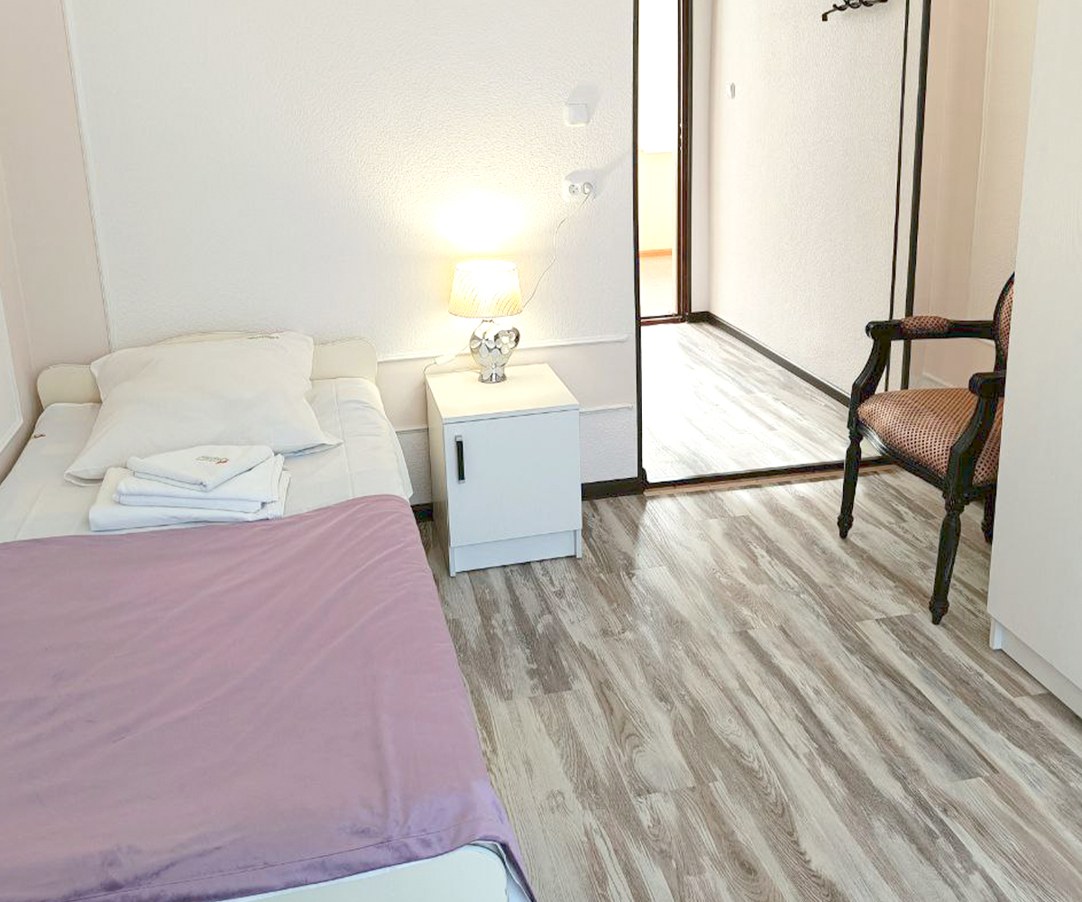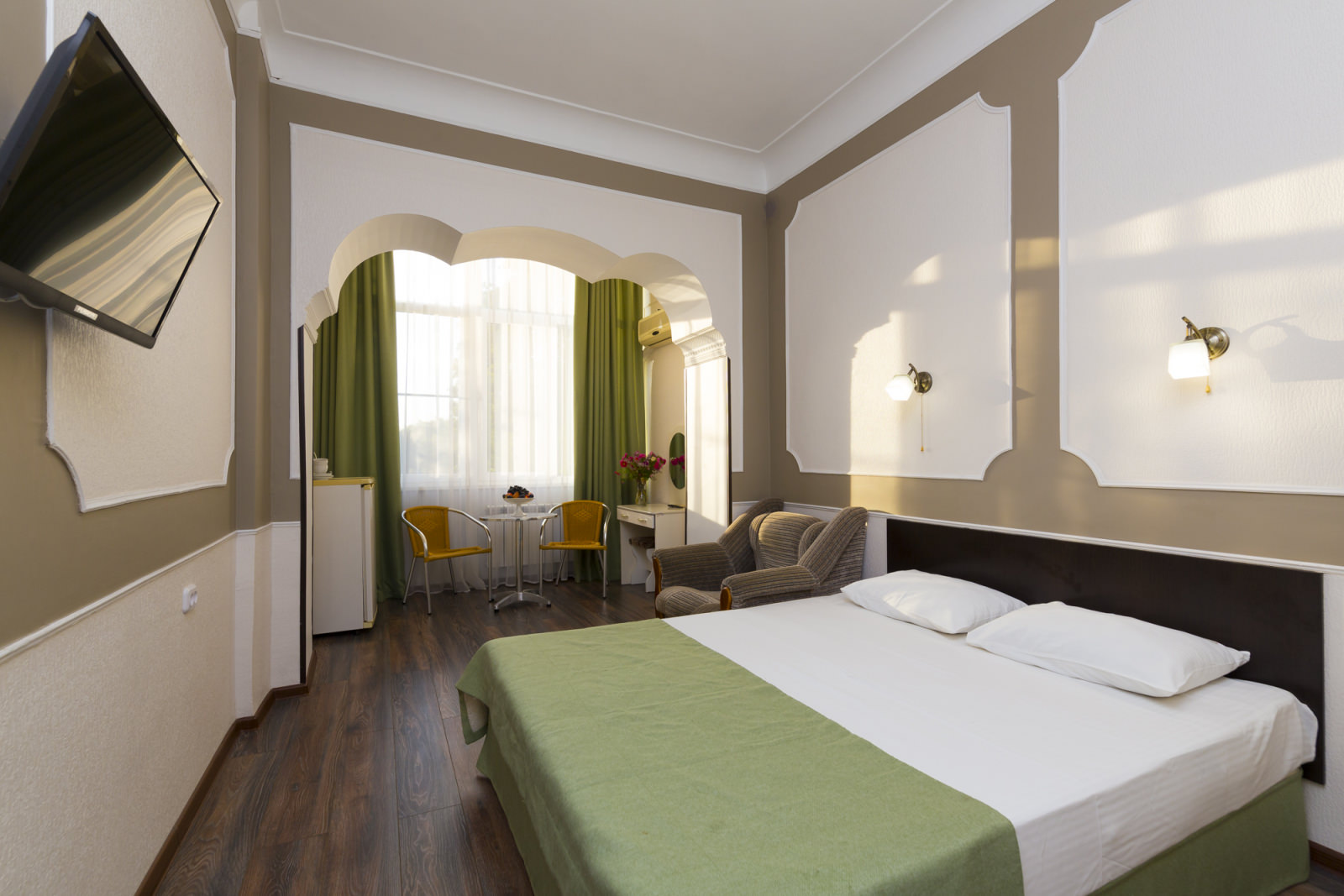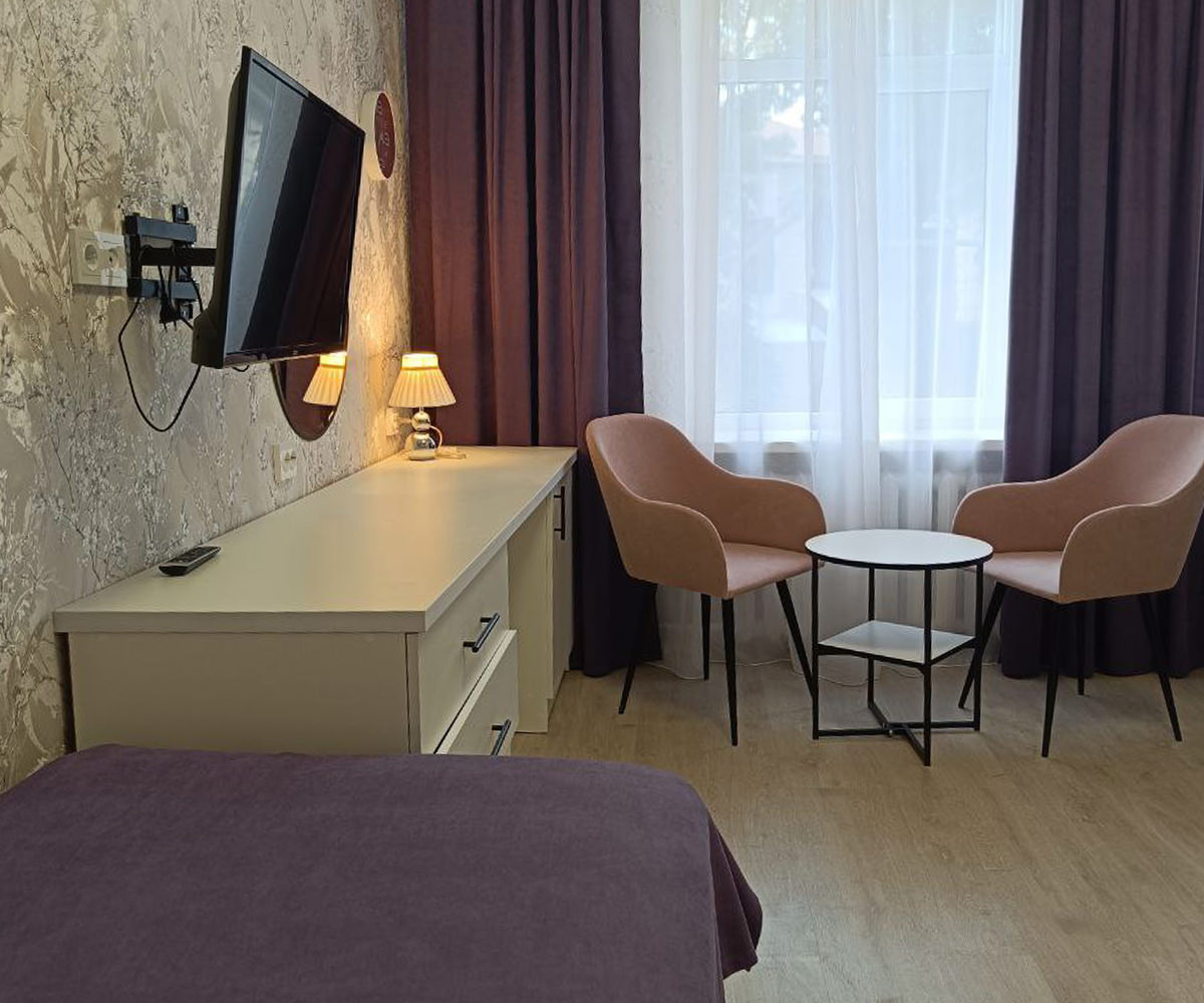 Количество проживающих в номерах: от одного до трех человек. Двухместный 1 категории и Люкс дают возможность подселить третьего гостя.