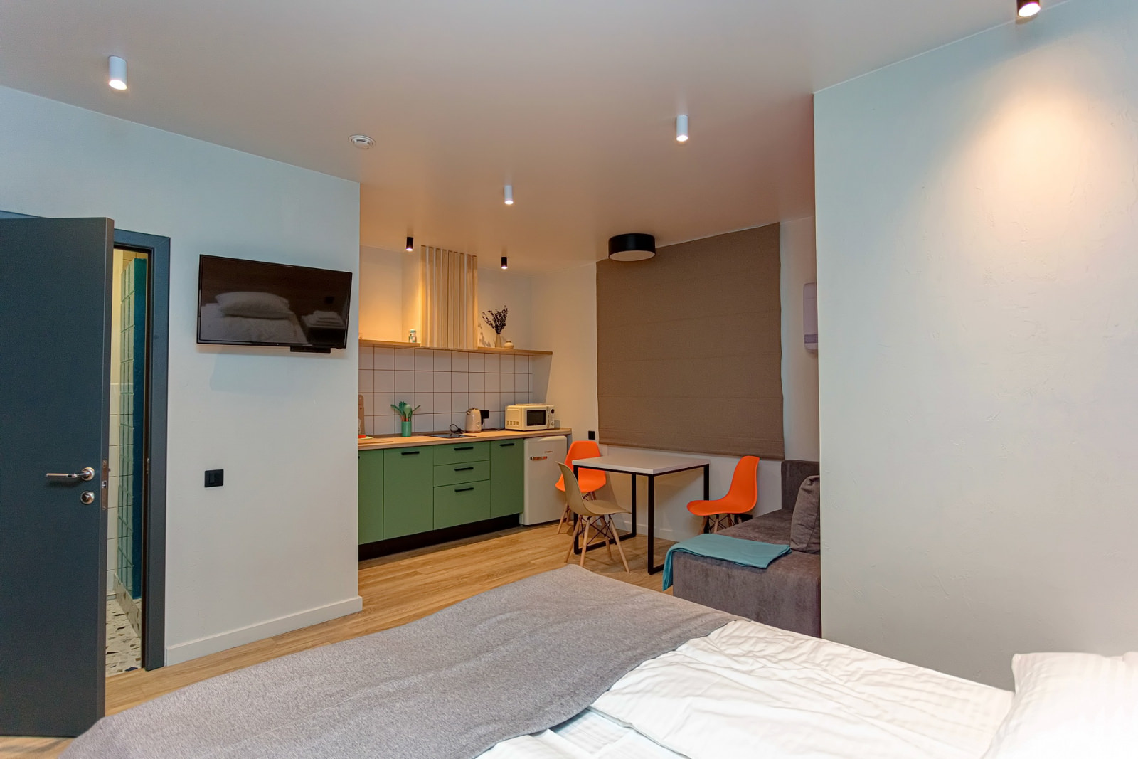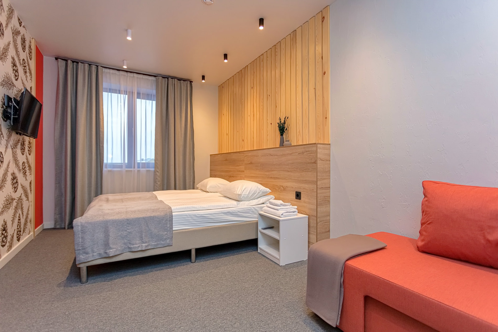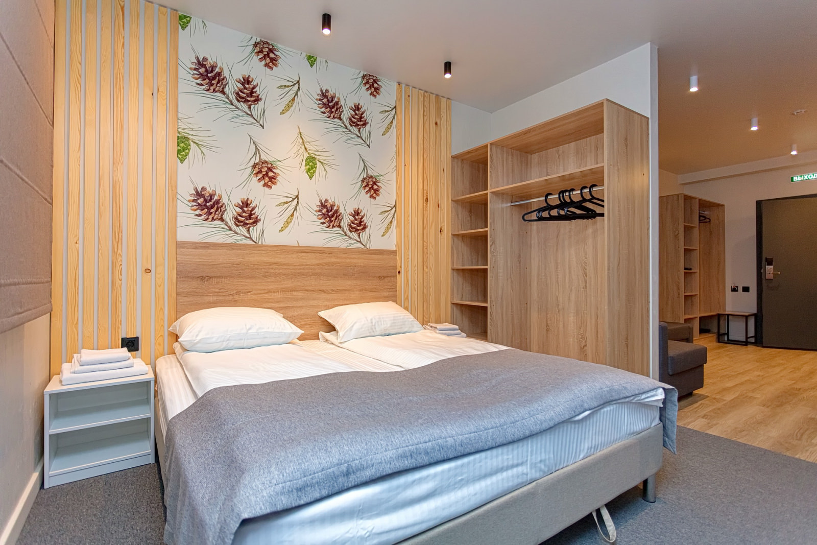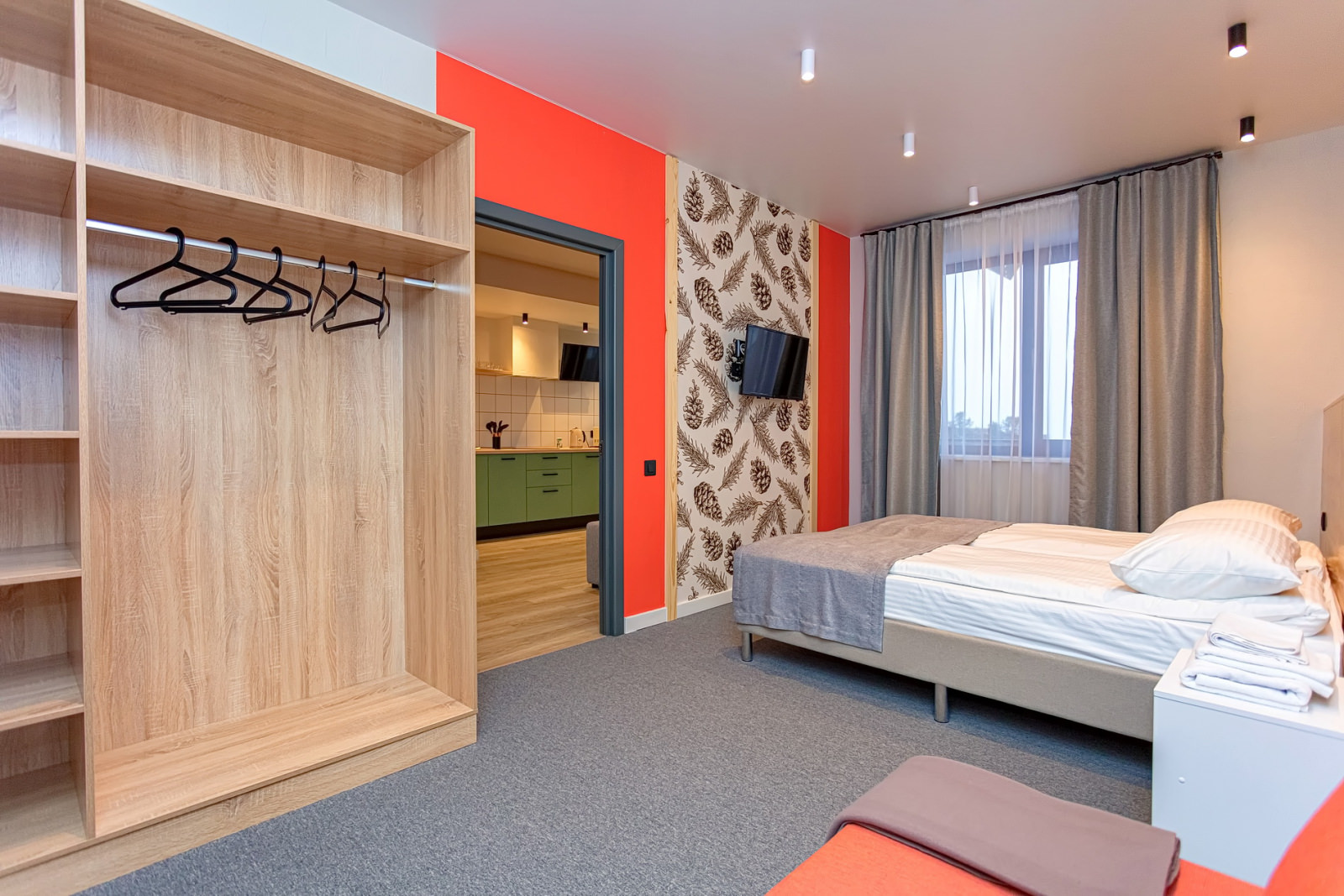 Площадь номера - 24 кв.м. 2 осн. места. 1 доп. место. Кухня. Мебель: кровати односпальные /одна двуспальная кровать, прикроватные тумбочки, стол (на кухне), стулья (на кухне), шкаф. Оборудование: микроволновая печь (на кухне), набор посуды (на кухне), плита электрическая (на кухне), телевизор, холодильник (на кухне), электрочайник. Санузел. Сервис: Wi-Fi бесплатно, смена полотенец, смена постельного белья, уборка номера.