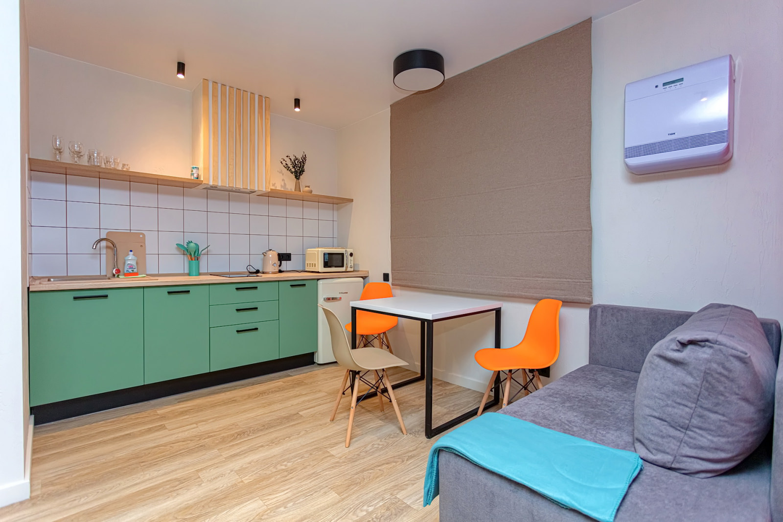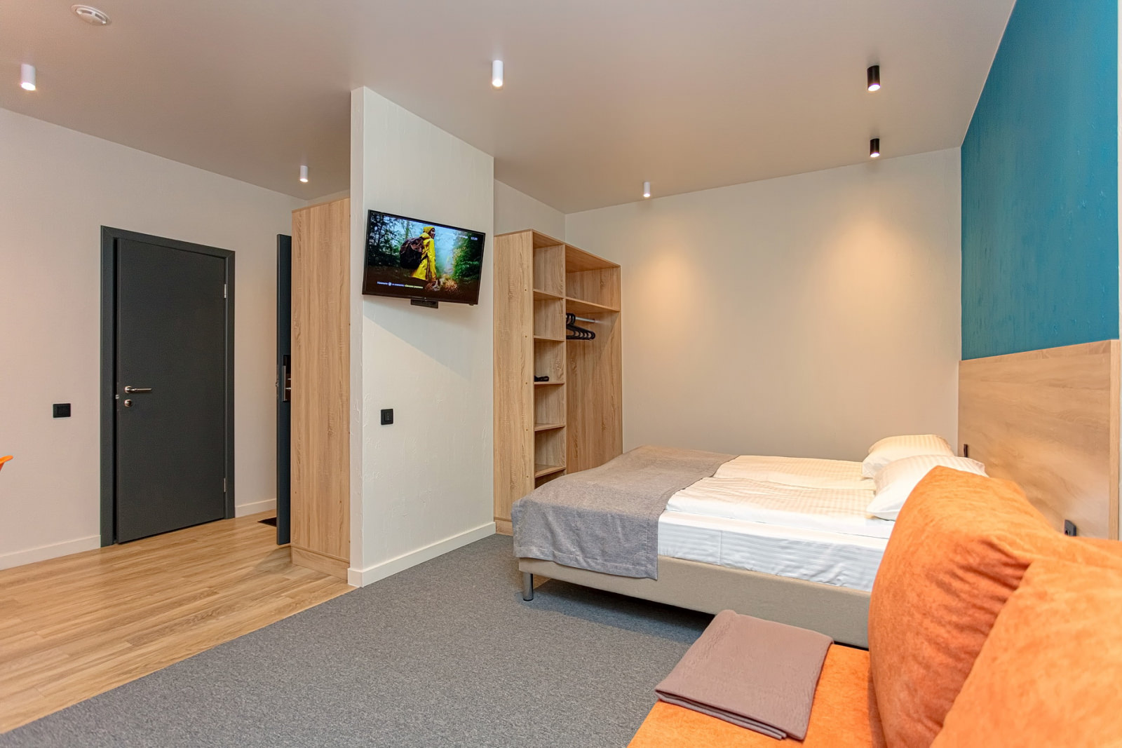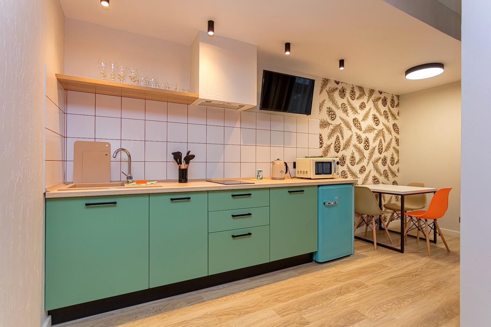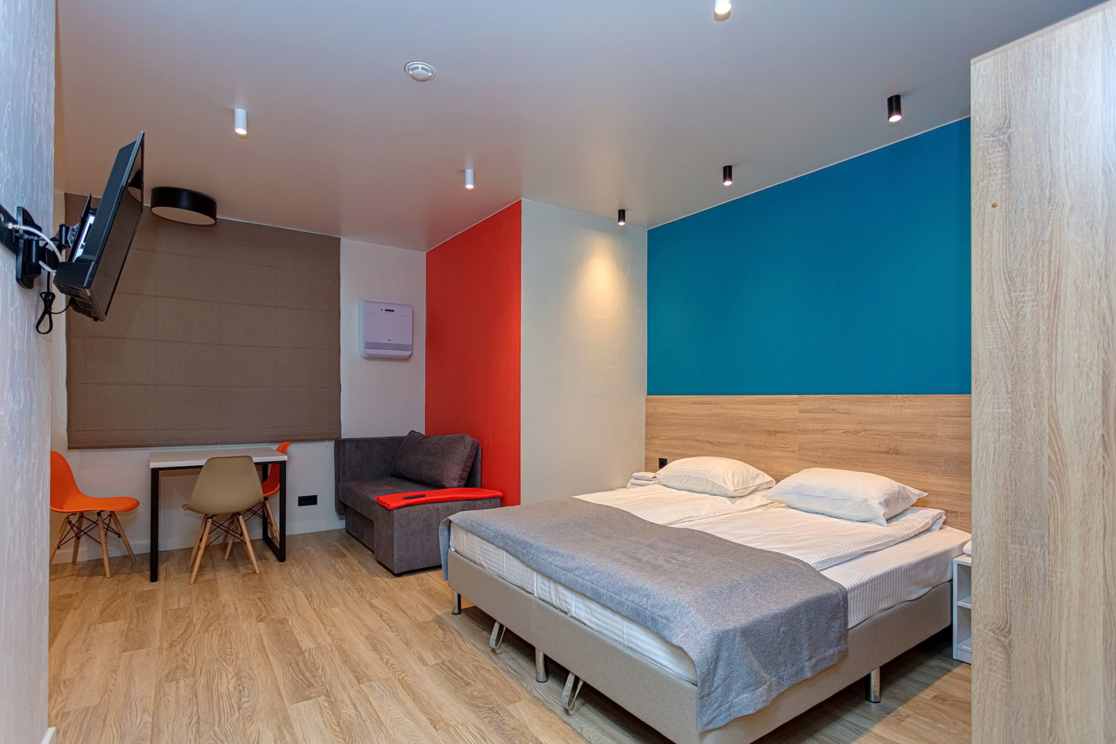 Площадь номера - 24 кв.м. 2 осн. места. 1 доп. место. Кухня. Мебель: кровати односпальные /одна двуспальная кровать, прикроватные тумбочки, стол (на кухне), стулья (на кухне), шкаф. Оборудование: микроволновая печь (на кухне), набор посуды (на кухне), плита электрическая (на кухне), телевизор, холодильник (на кухне), электрочайник. Санузел. Сервис: Wi-Fi бесплатно, смена полотенец, смена постельного белья, уборка номера.