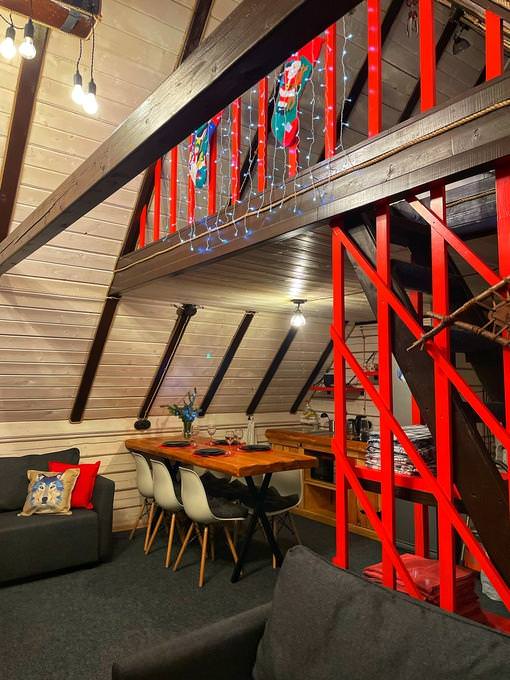 База "Volki" расположена в горнолыжном курорте, в поселке Шерегеш, Кемеровской области. База расположена в 3 минутах на авто до сектора А, Б. Расстояние до аэропорта составляет 176 км. К услугам гостей представлены четыре домика A-frame, где есть все необходимое для отдыха. На территории гости могут посетить русскую баню на дровах, воспользоваться мангальной зоной и услугами парковки.