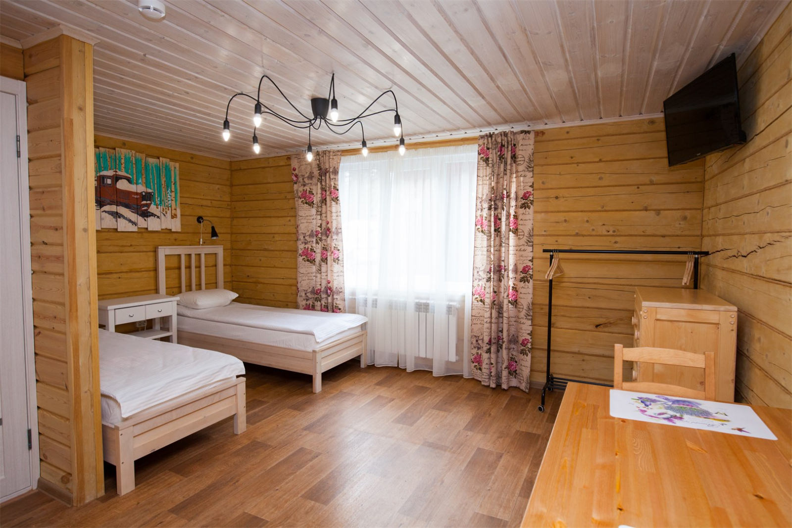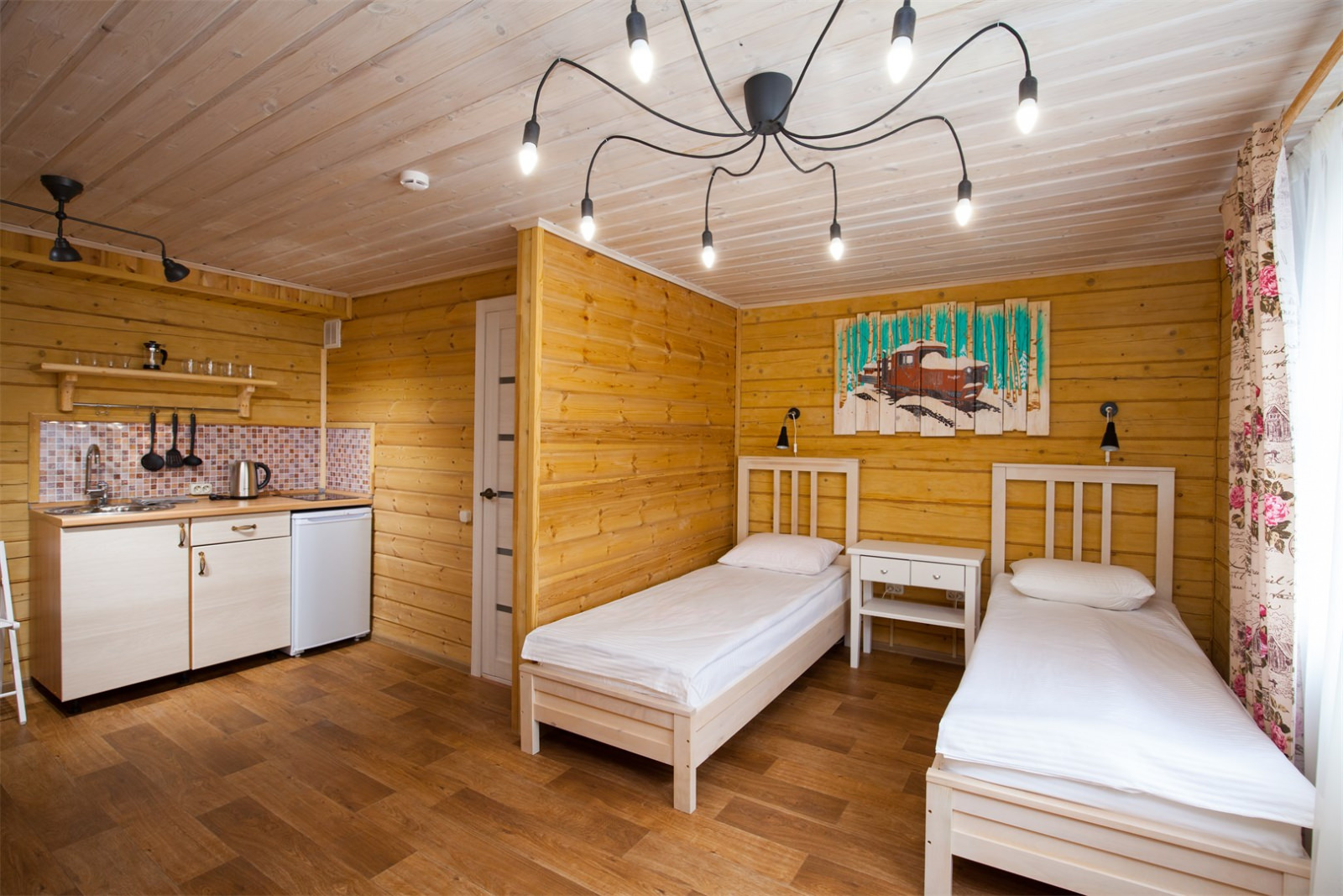 Площадь номера - 25 кв.м. 2 осн. места. 1 доп. место. Кухня. Мебель: вешалка, комод, кровати односпальные, прикроватная тумбочка, стол, стулья. Оборудование: набор посуды, плита электрическая, телевизор, холодильник, электрочайник. Санузел: с душевой кабиной, туалетные принадлежности, фен. Сервис: Wi-Fi бесплатно, смена полотенец, смена постельного белья, уборка номера.