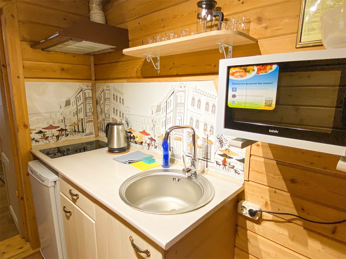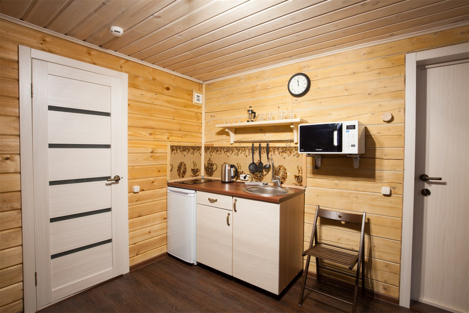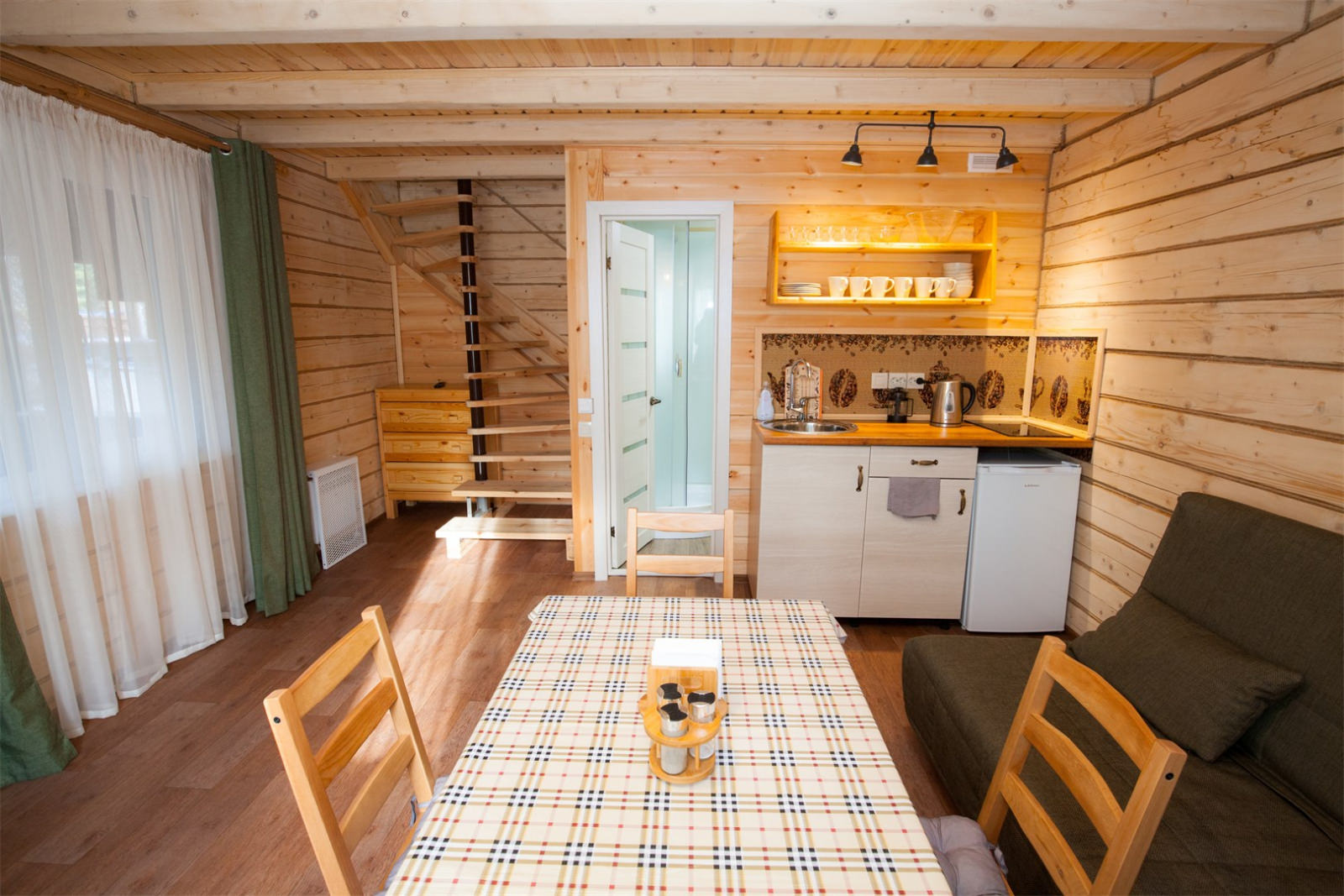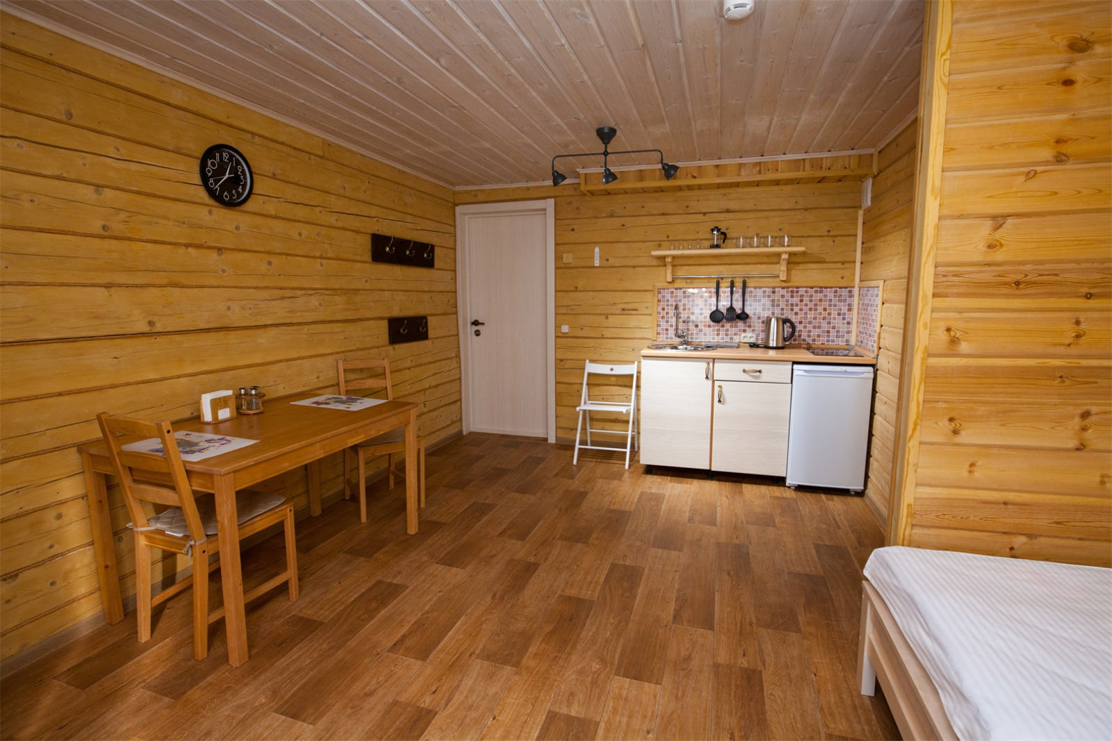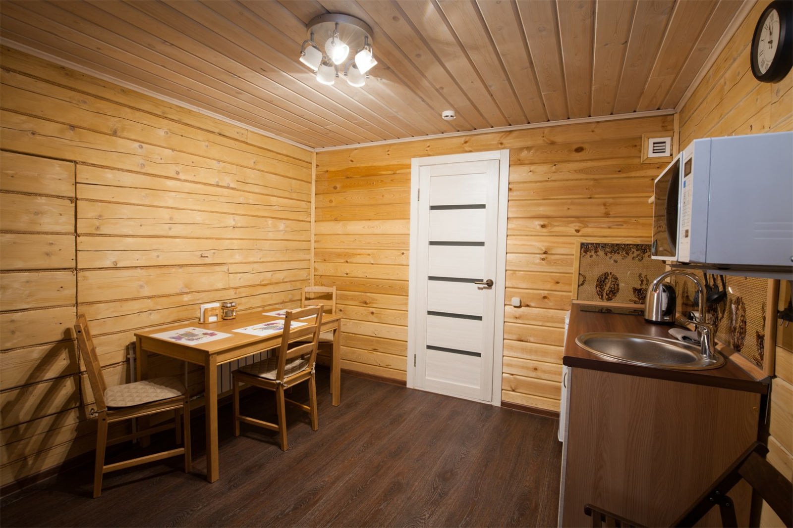 Площадь номера - 30 кв.м. 2 осн. места. 2 доп. места. Кухня. Мебель: вешалка, диван раскладной, комод, кровать двуспальная, прикроватные тумбочки, стол, стулья. Оборудование: микроволновая печь, набор посуды, плита электрическая, телевизор, холодильник, электрочайник. Санузел: сауна, с душевой кабиной, тапочки, туалетные принадлежности, фен. Сервис: Wi-Fi бесплатно, смена полотенец, смена постельного белья, уборка номера.