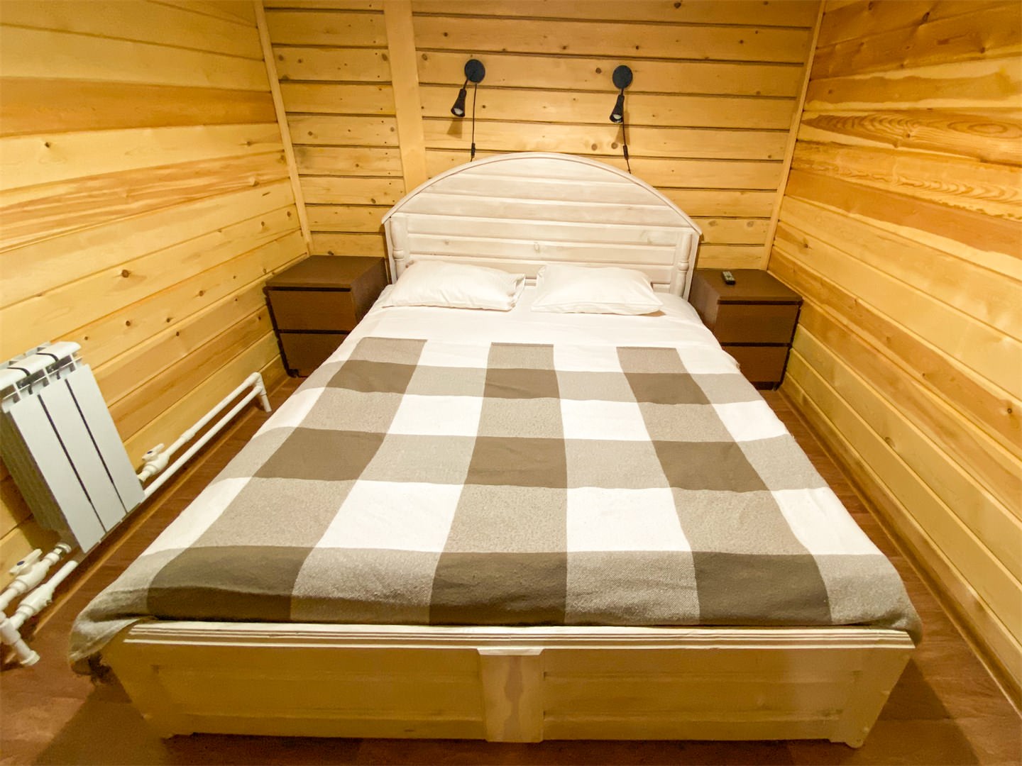 Площадь номера - 25 кв.м. 2 осн. места. 1 доп. место. Кухня. Мебель: вешалка, комод, кровать двуспальная, прикроватные тумбочки, стол, стулья. Оборудование: набор посуды, плита электрическая, телевизор, холодильник, электрочайник. Санузел: с душевой кабиной, туалетные принадлежности, фен. Сервис: Wi-Fi бесплатно, смена полотенец, смена постельного белья, уборка номера.