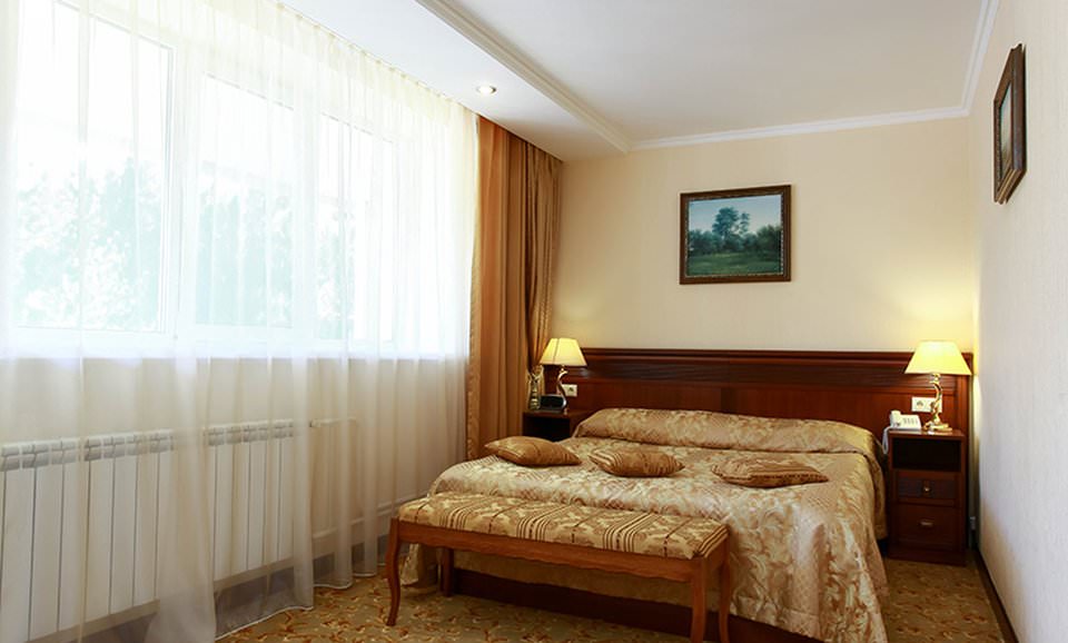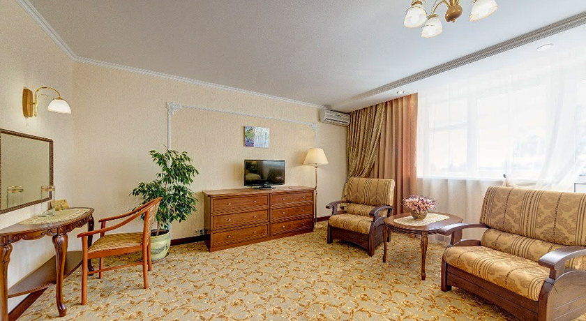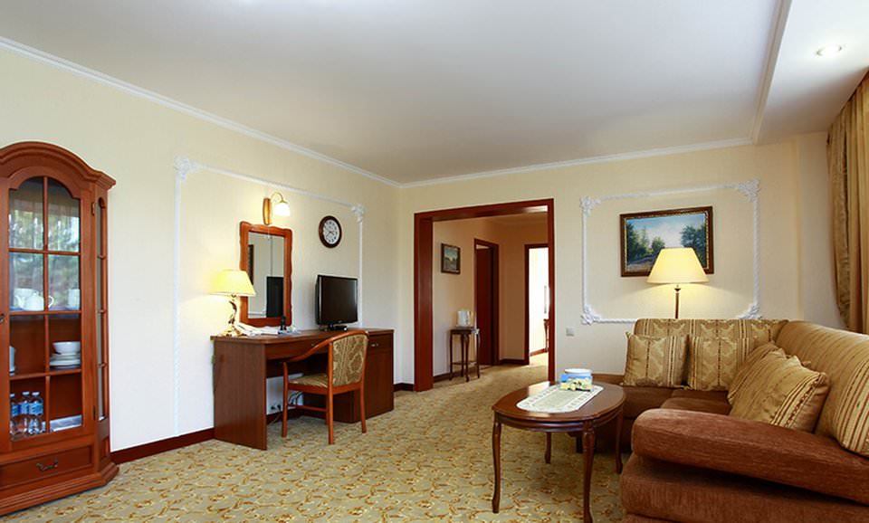 Оборудование: кондиционер, холодильник, телевизор, сейф, телефон с выходом на междугороднюю и международную связь, часы-будильник с радио приёмником, часы настенные.