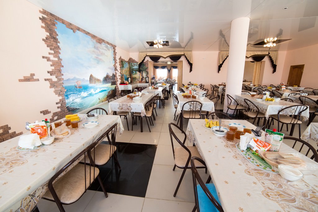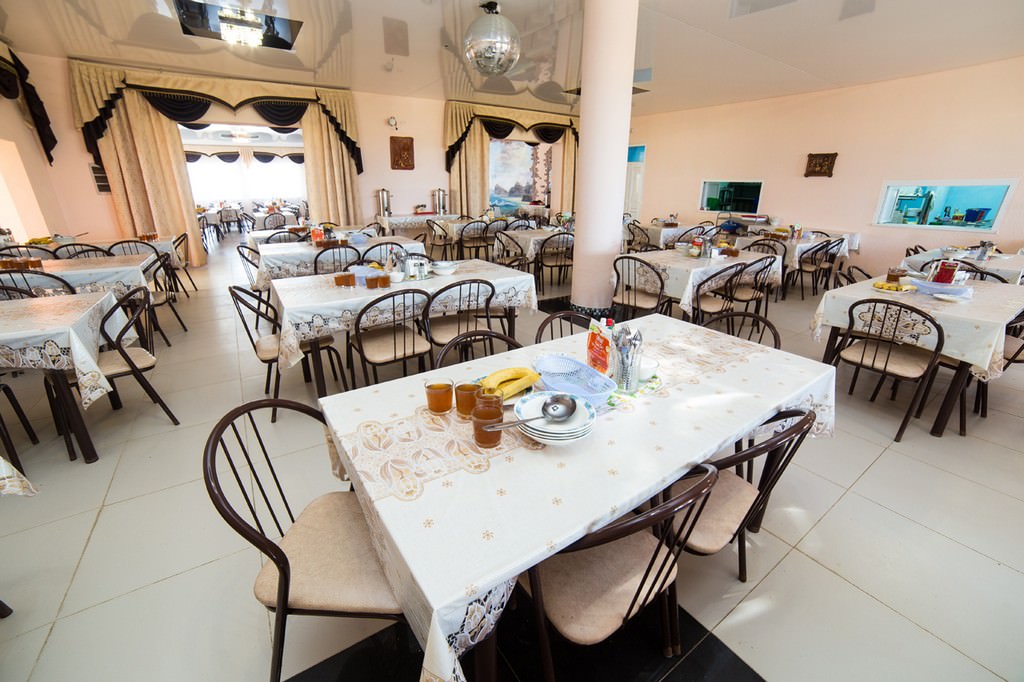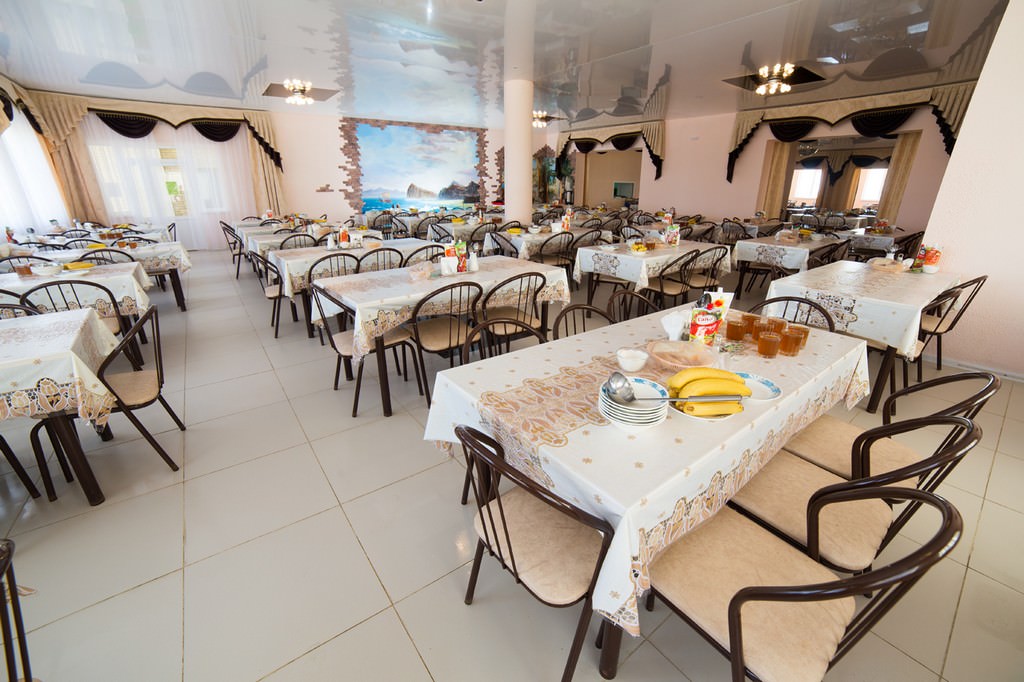 Прием пищи проходит в большом зале столовой. В нем создана очень уютная и непринужденная атмосфера, которая как нельзя лучше способствует комфортной трапезе.