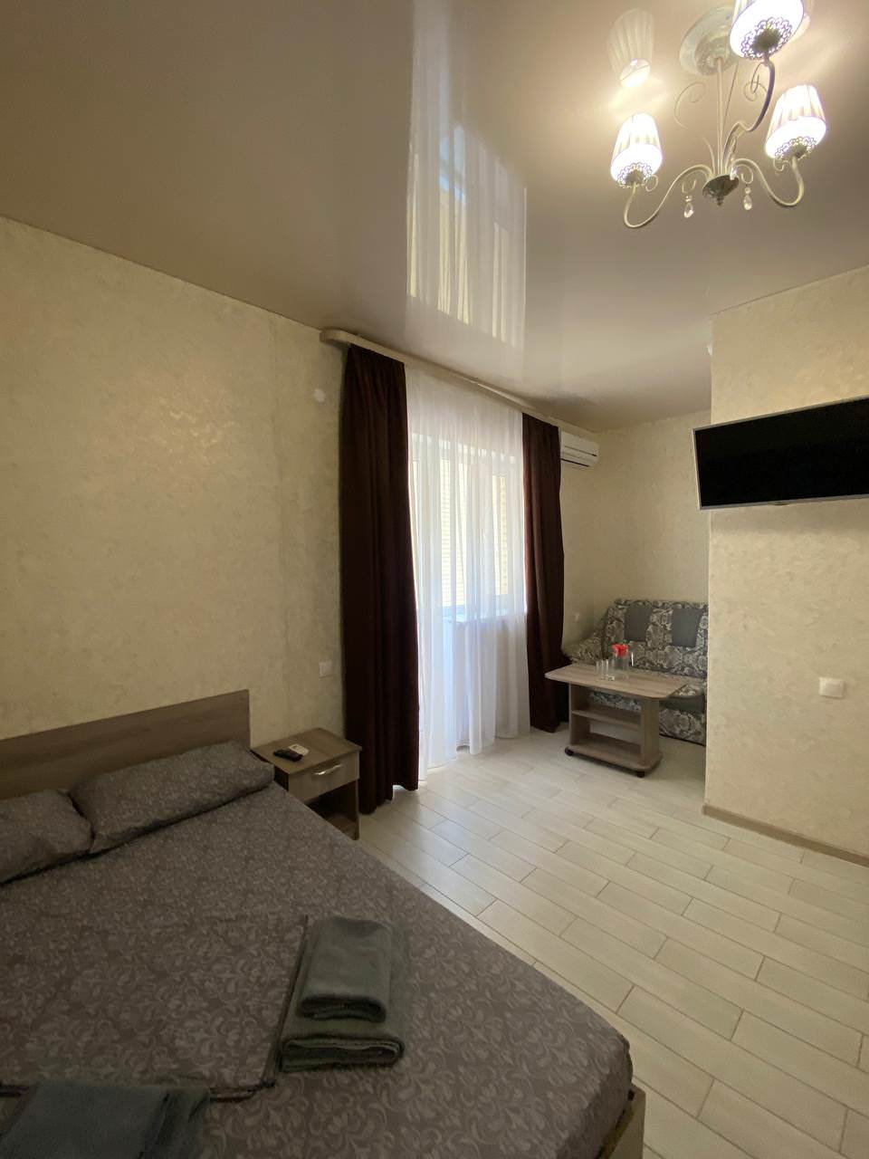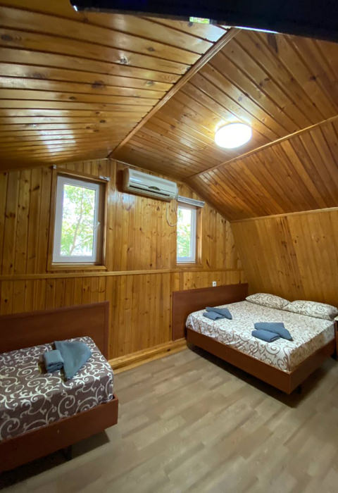 Во всех номерах есть санузел с душем, телевизор и холодильник, а также приятно порадует оснащение сплит-системой.