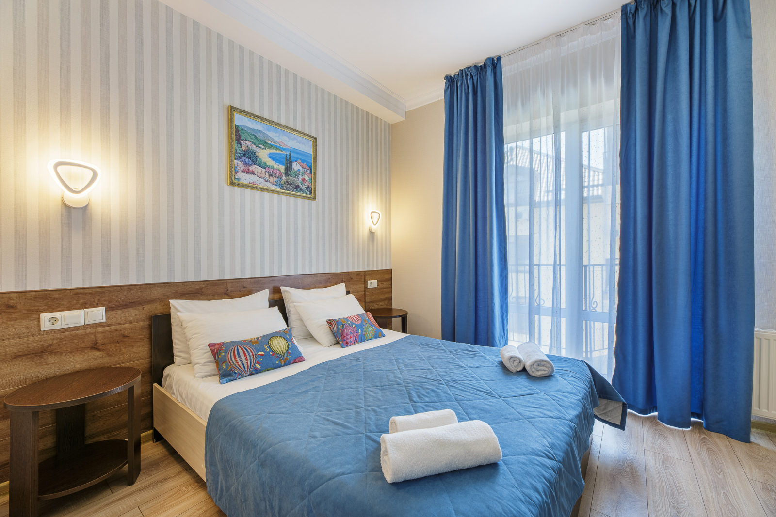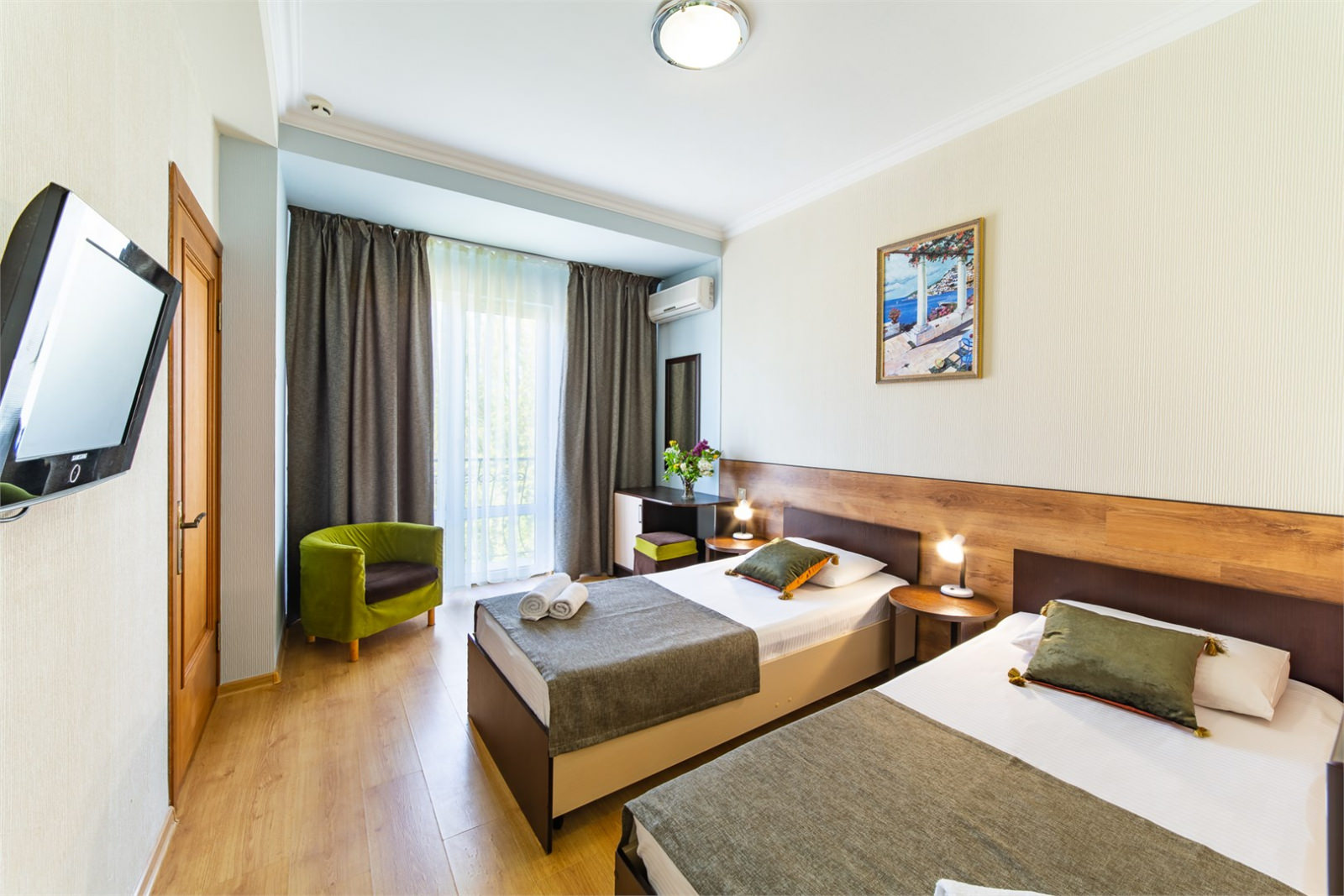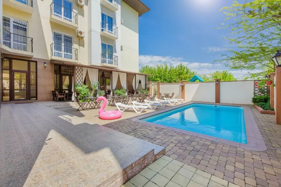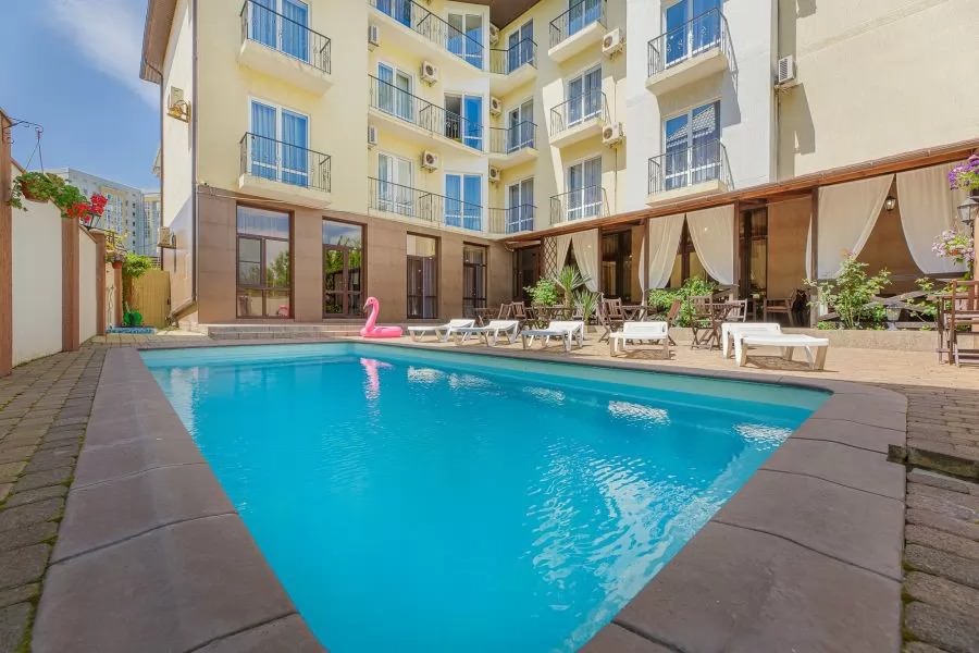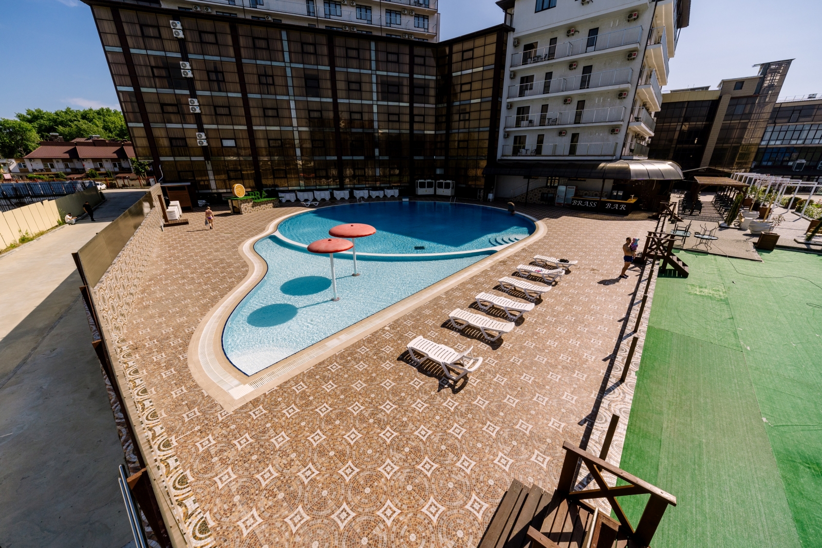 Самолетом до аэропорта г. Анапы, далее на маршрутном такси №113 до остановки «Аквапарк», далее пройти пешком 370 м до отеля.