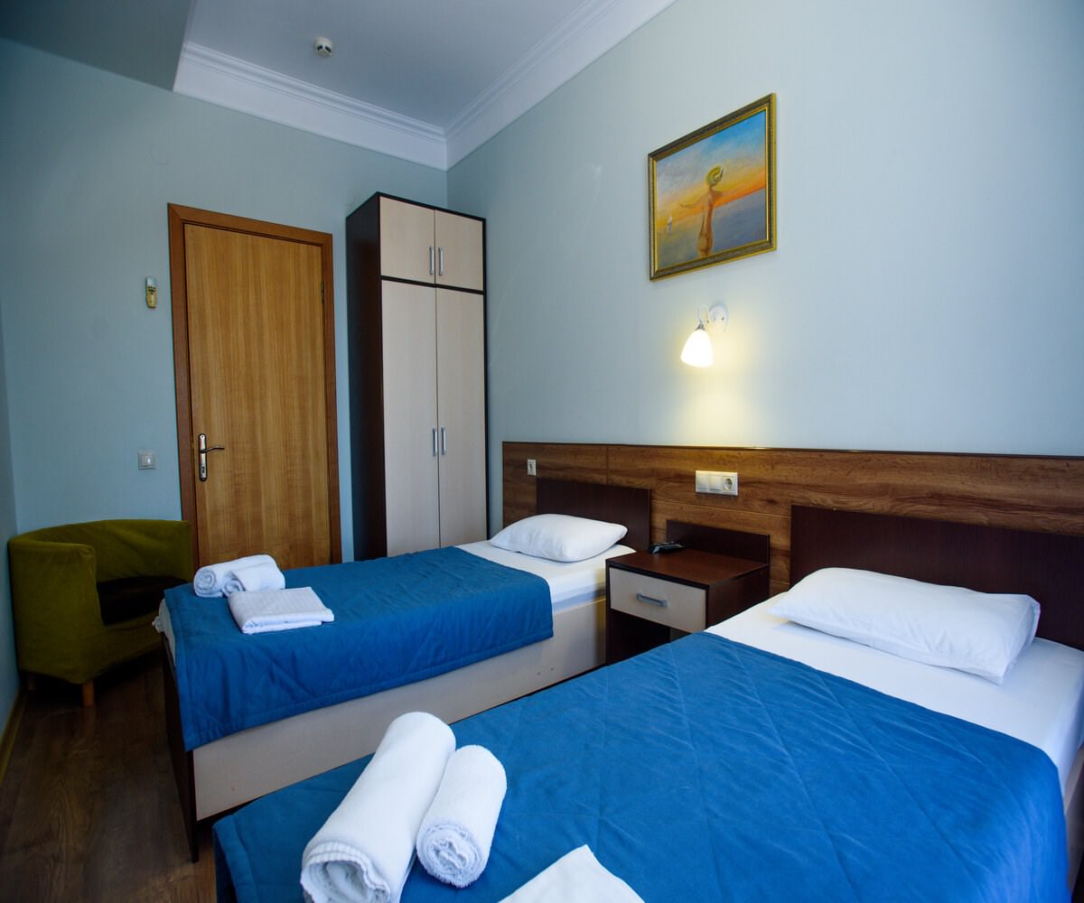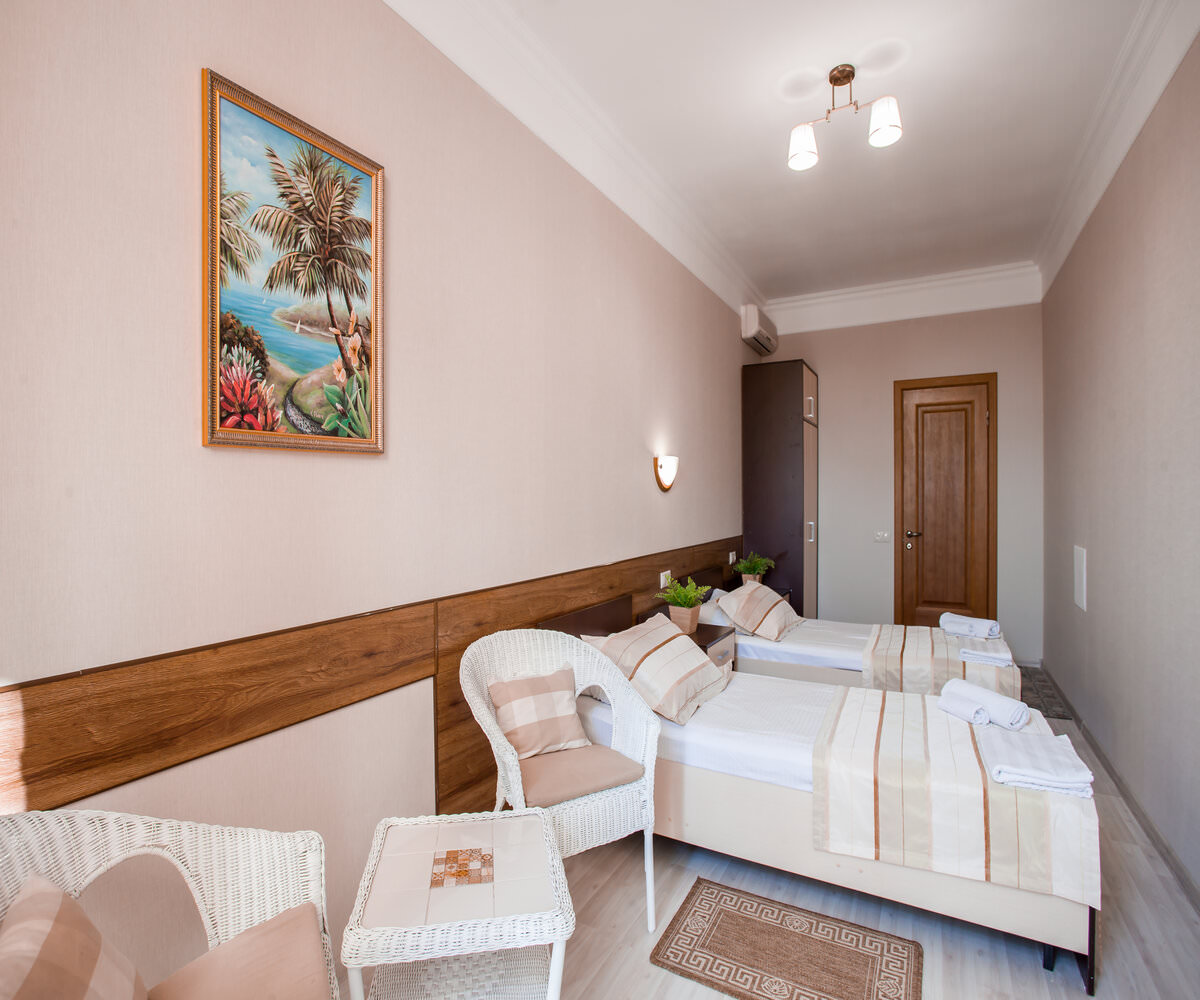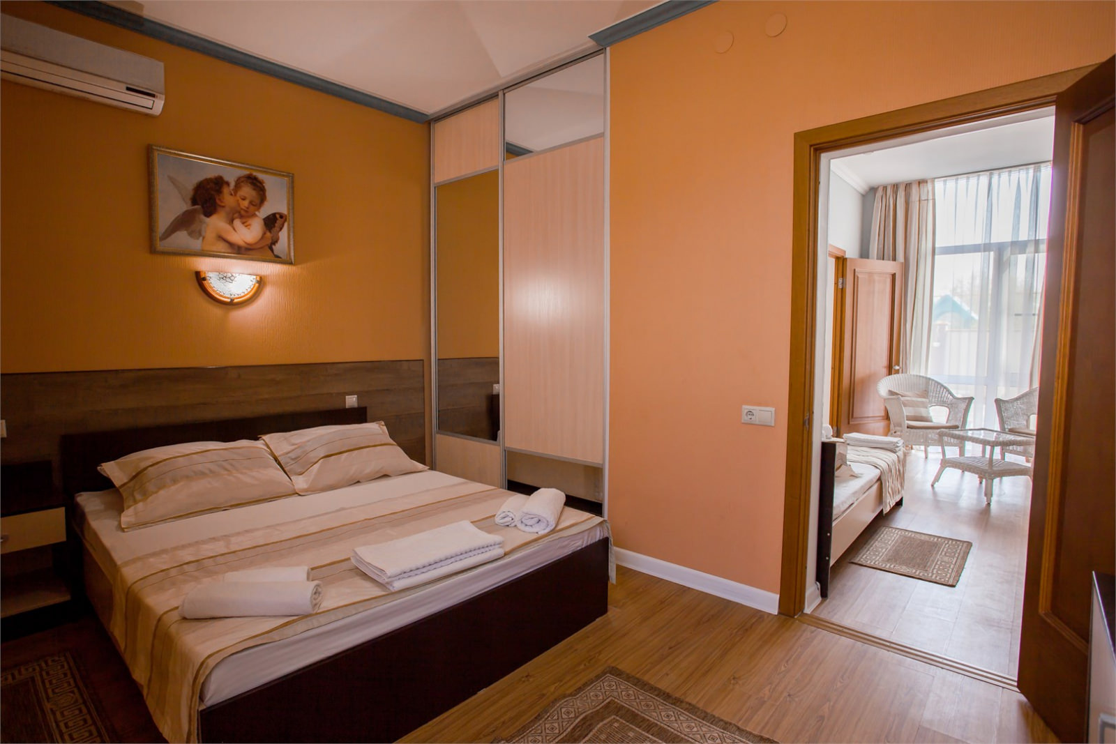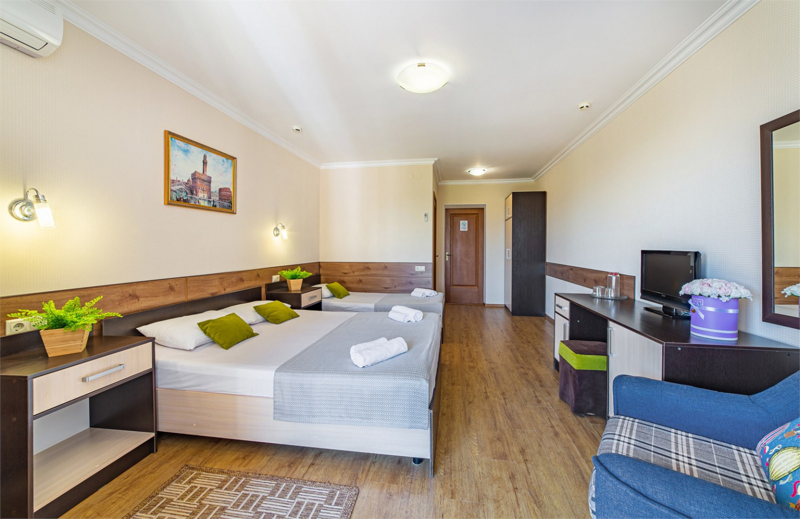 Самолетом до аэропорта г. Анапы, далее на маршрутном такси №113 до остановки «Аквапарк», далее пройти пешком 370 м до отеля.