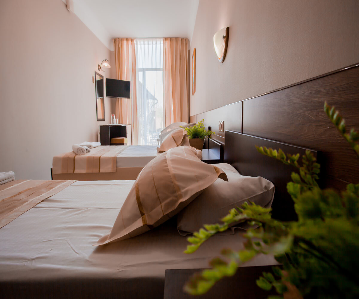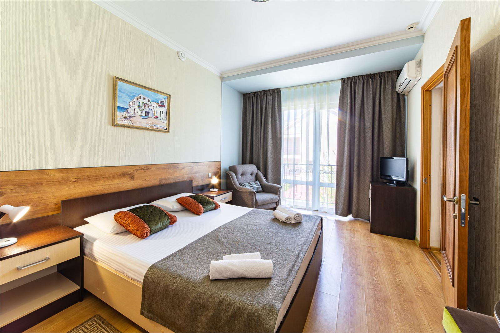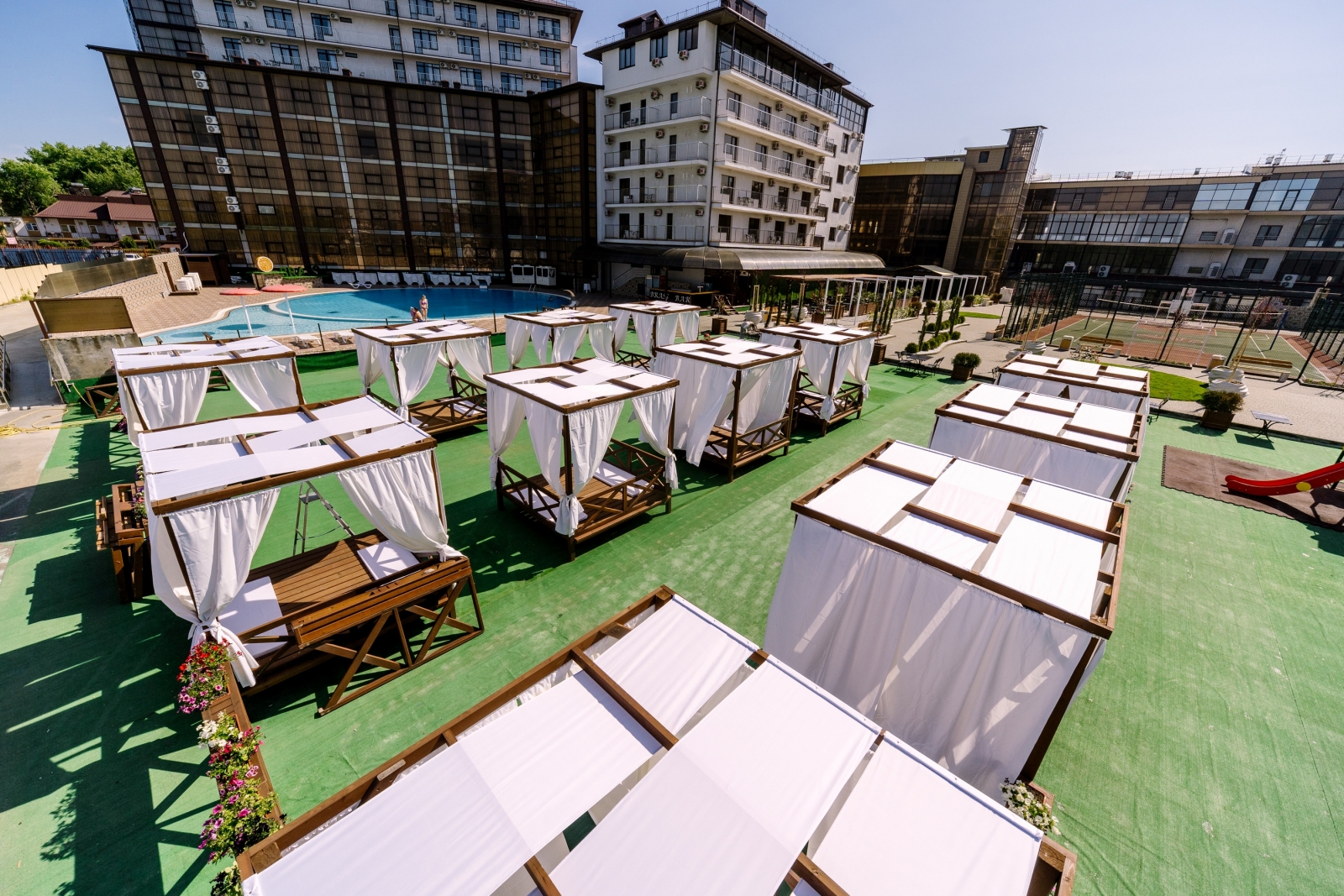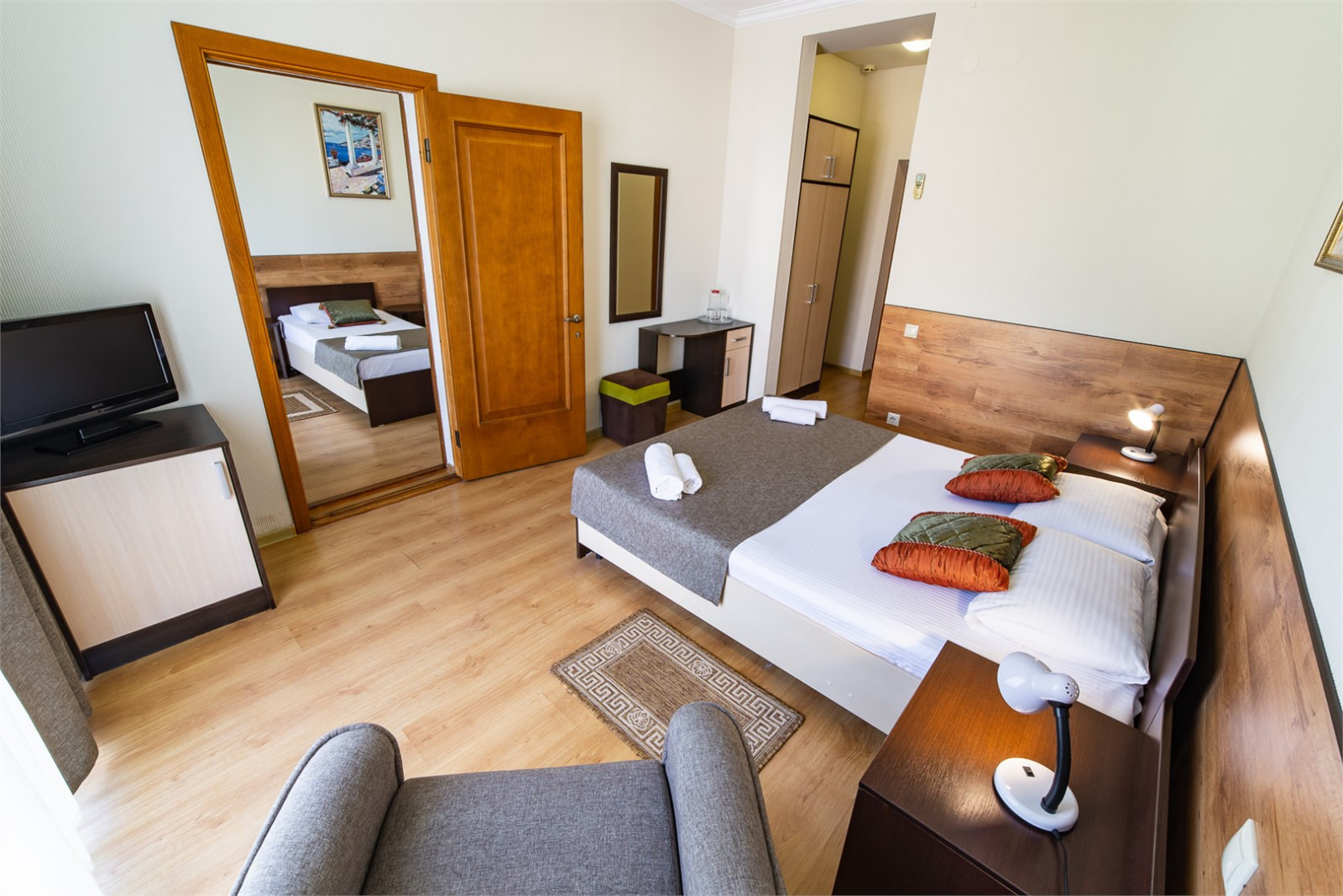 Самолетом до аэропорта г. Анапы, далее на маршрутном такси №113 до остановки «Аквапарк», далее пройти пешком 370 м до отеля.