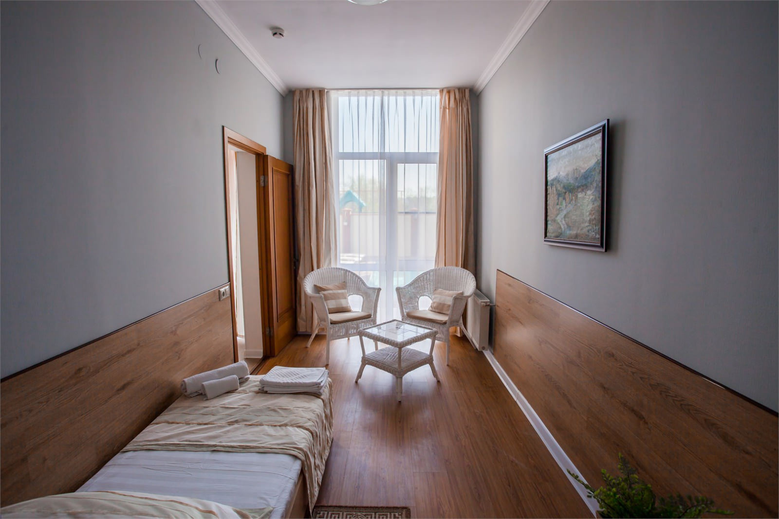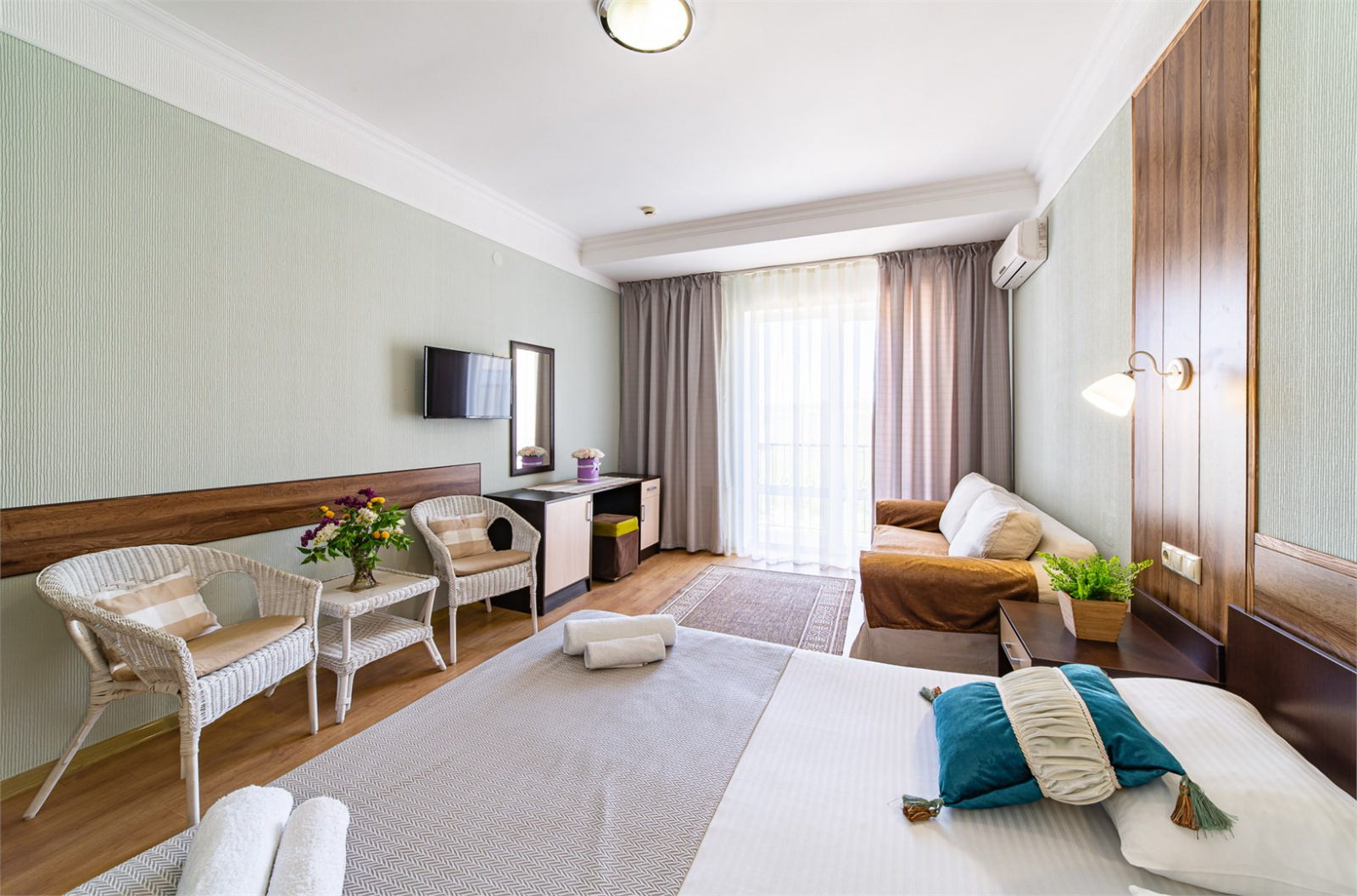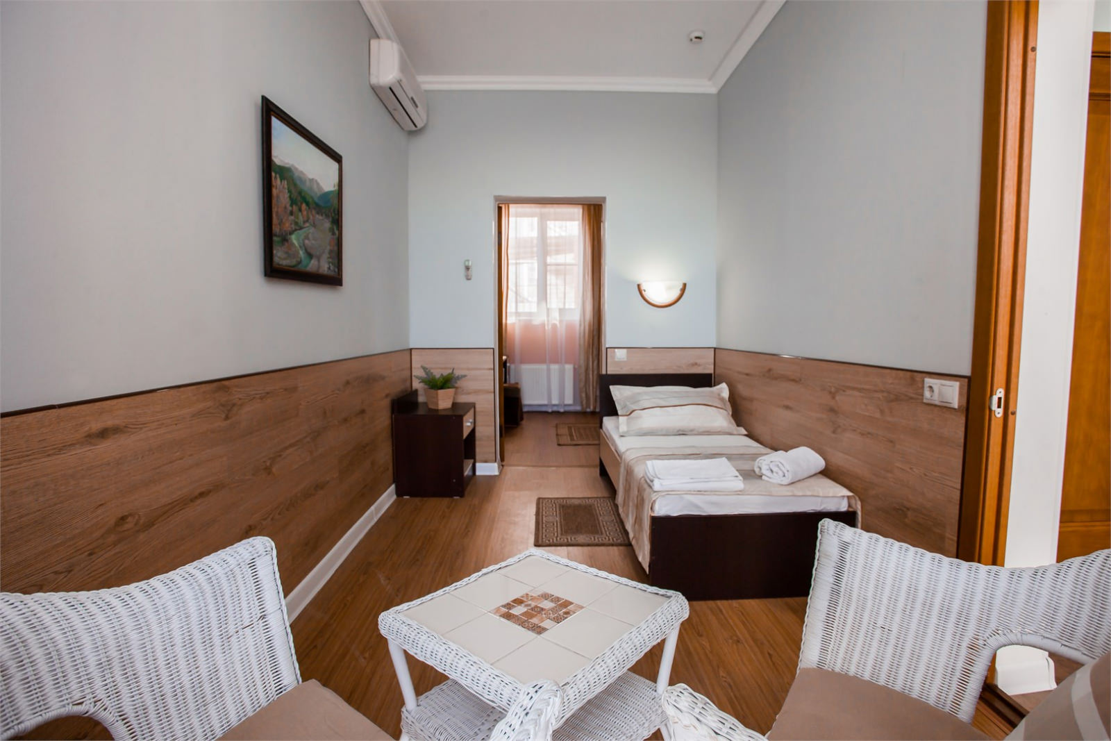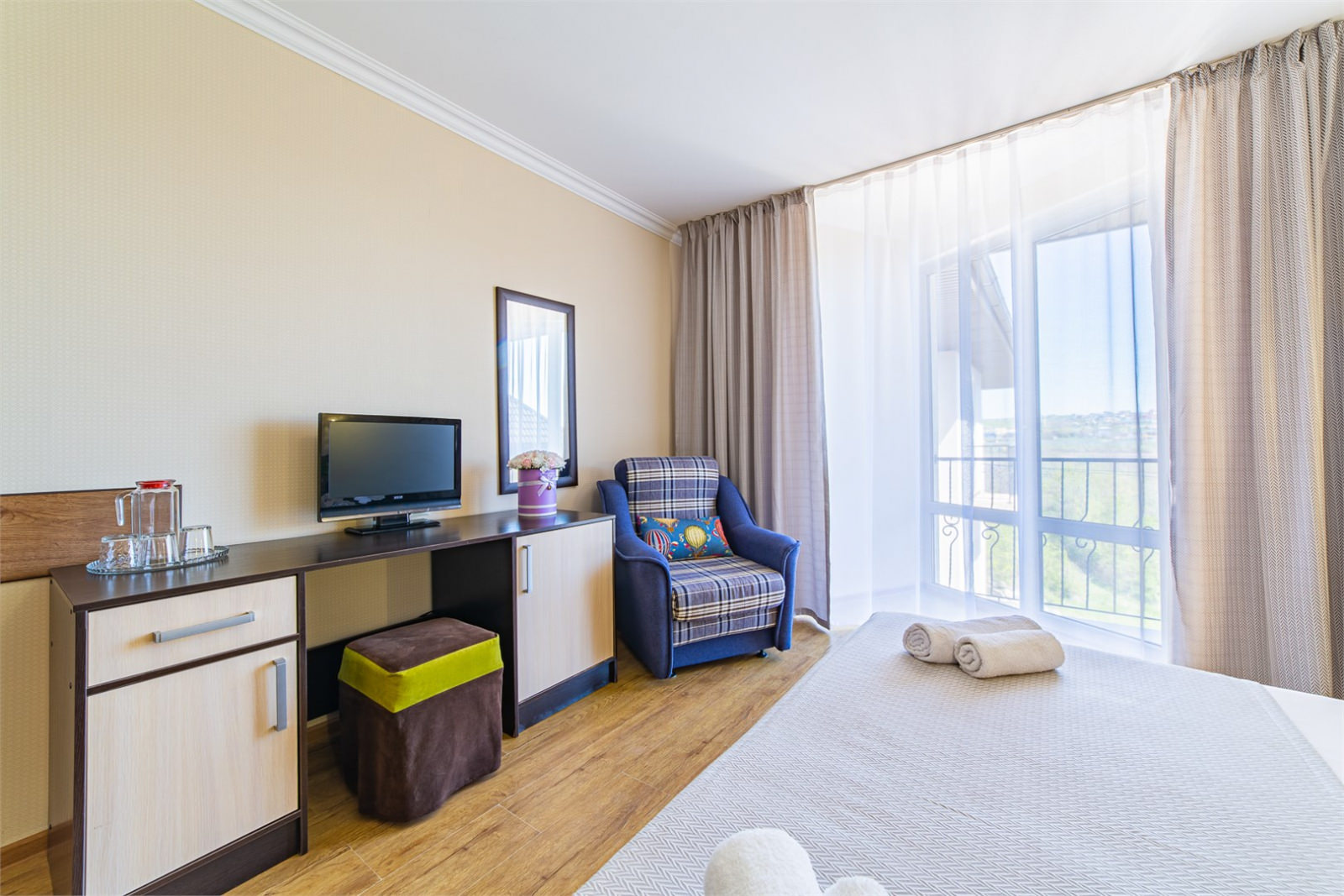 Самолетом до аэропорта г. Анапы, далее на маршрутном такси №113 до остановки «Аквапарк», далее пройти пешком 370 м до отеля.