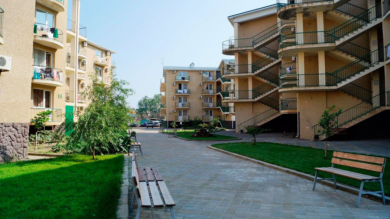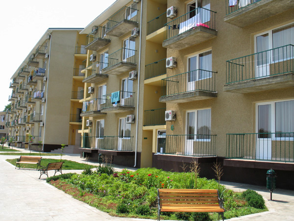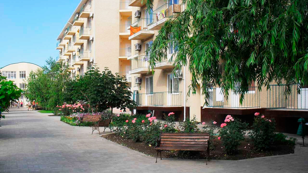 Номерной фонд пансионата представляет собой 25 пятиэтажных корпусов, расположенных на территории с площадью 2 га, которые можно даже назвать коттеджными домиками.