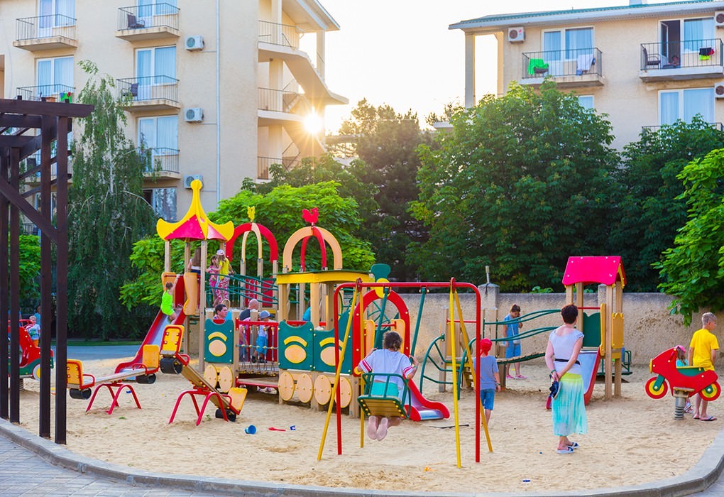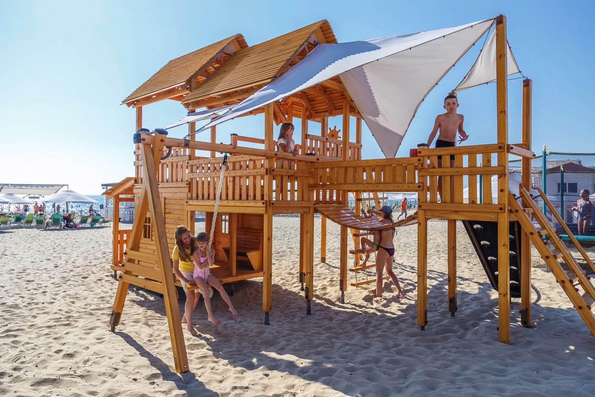 У ребят есть прекрасная возможность активно проводить время на чистом воздухе, благодаря наличию двух детских площадок, одна из которых находится на пляже.