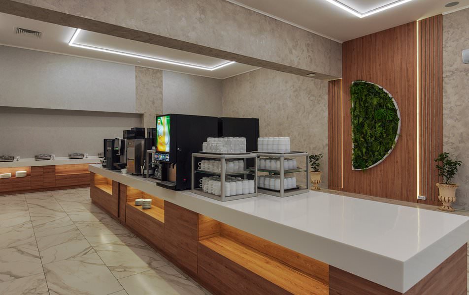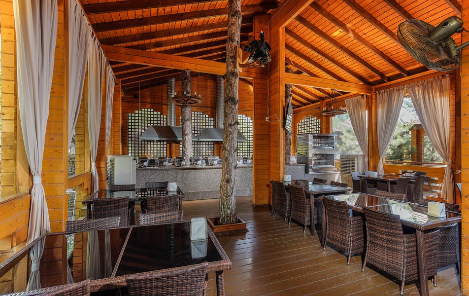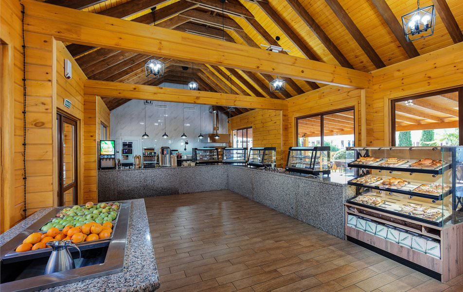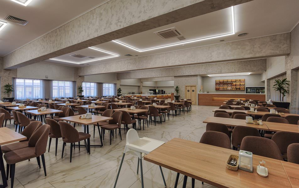 Основной прием пищи, а также промежуточные перекусы, проходят в ресторане, оформленном в светлых тонах и приятном стиле. Также на территории предусмотрены бар и кафе, где во время отдыха гости смогут побаловать себя разнообразными напитками и закусками.
