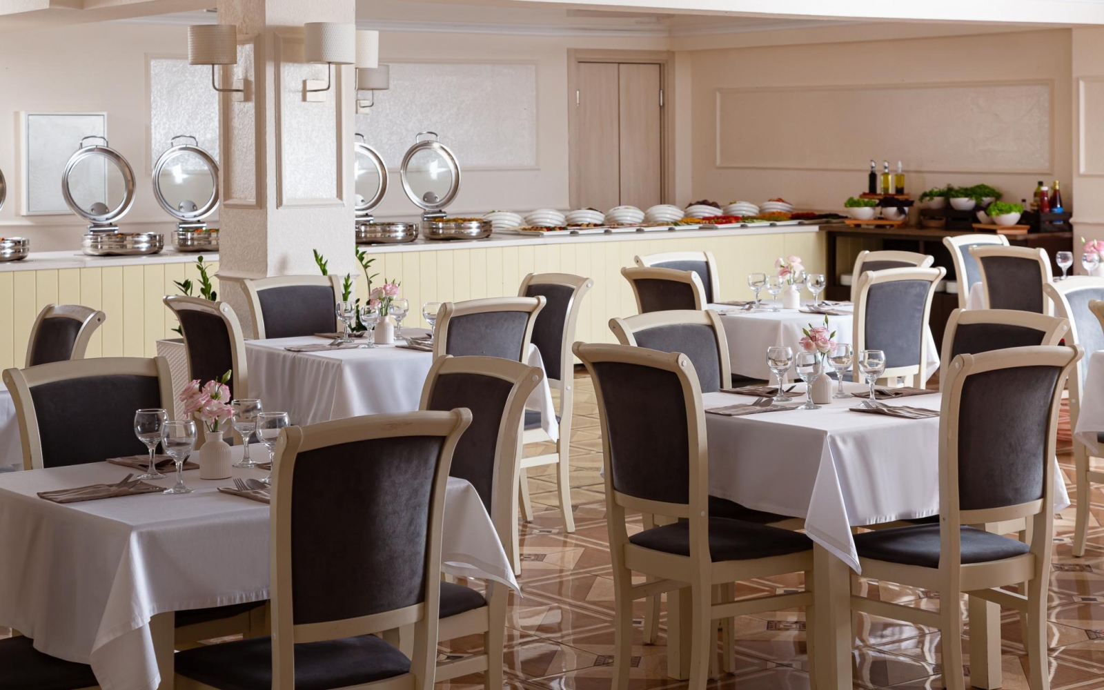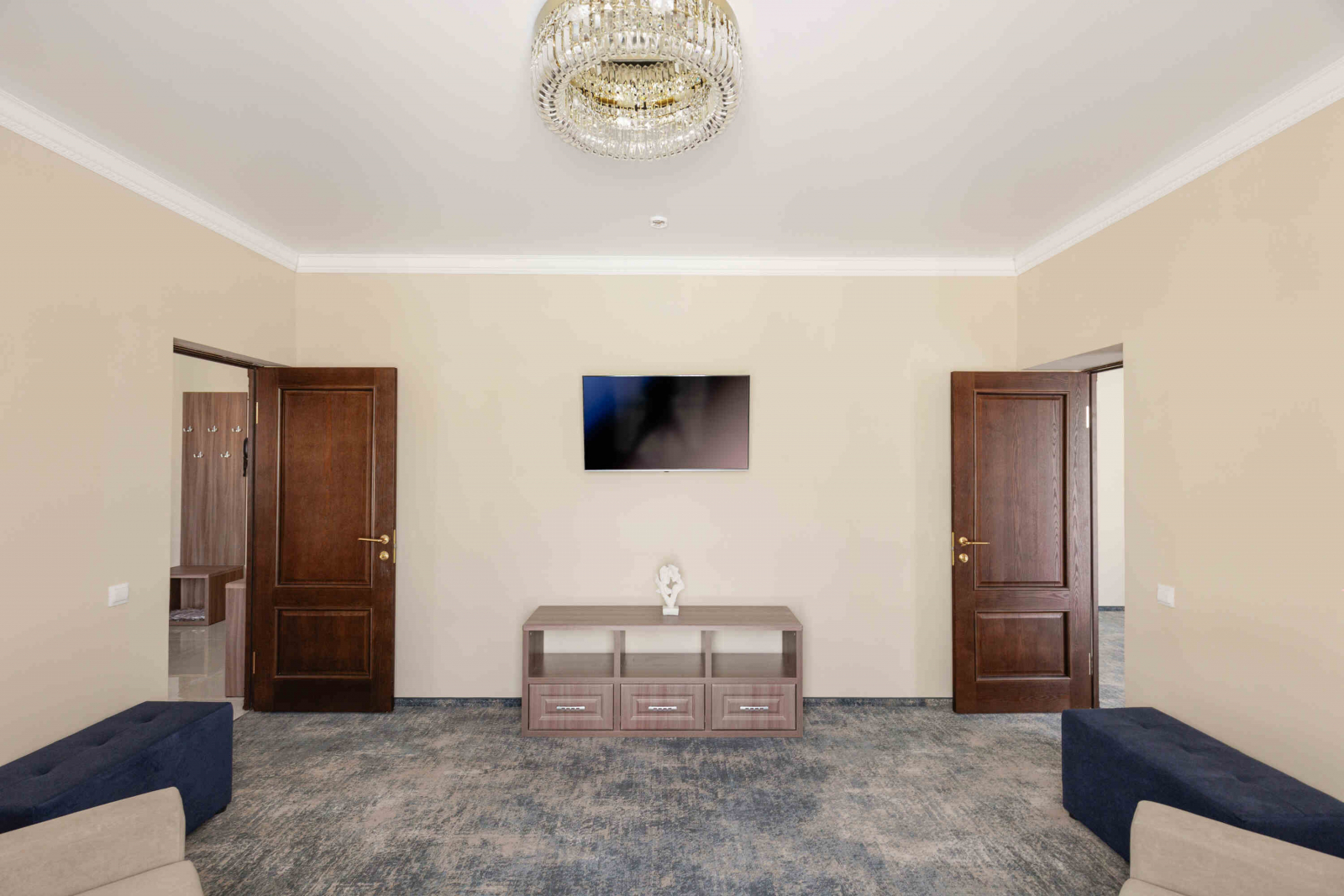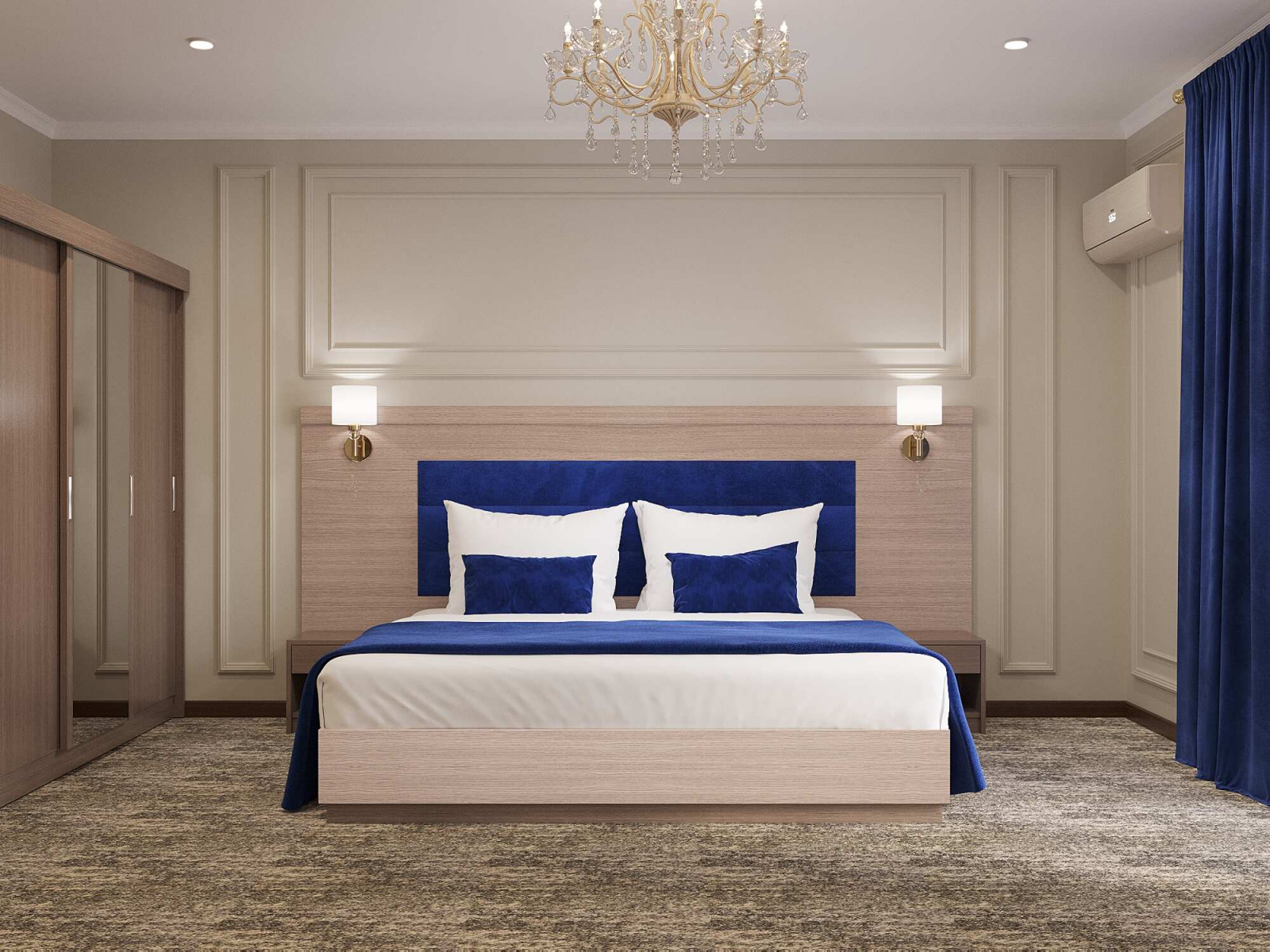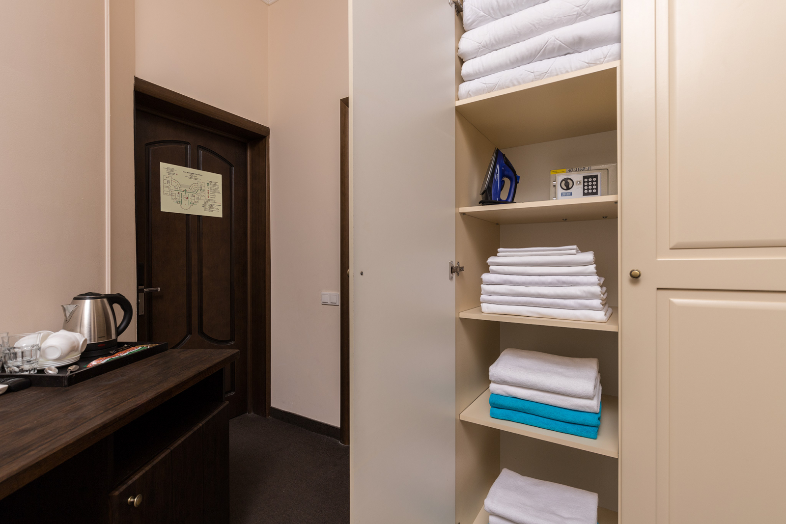 2 осн. места. Мебель: вешалка, зеркало, кровати односпальные /одна двуспальная кровать, прикроватные тумбочки, стол, стулья, шкаф. Оборудование: гладильная доска, мини-холодильник, сейф, сплит-система, телевизор ЖК, утюг, электрочайник. Санузел: с душем, тапочки, туалетные принадлежности, фен, халат. Сервис: Wi-Fi бесплатно, смена полотенец (1 раз в 3 дня), смена постельного белья (1 раз в 3 дня), уборка номера (ежедневно).