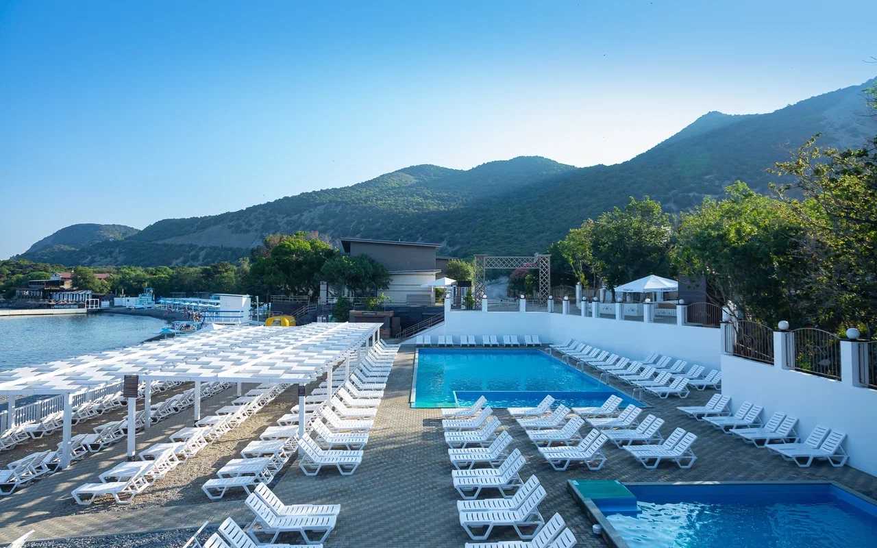 Площадь номера - 30 кв.м. 2 осн. места. 2 доп. места. Мебель: вешалка, диван, зеркало, кресло, кровать двуспальная, прикроватные тумбочки, стол, стулья, шкаф. Оборудование: гладильная доска, мини-холодильник, сейф, сплит-система, телевизор ЖК, утюг, электрочайник. Санузел: с душем, тапочки, туалетные принадлежности, фен, халат. Сервис: Wi-Fi бесплатно, смена полотенец (1 раз в 3 дня), смена постельного белья (1 раз в 3 дня), уборка номера (ежедневно). Терраса.