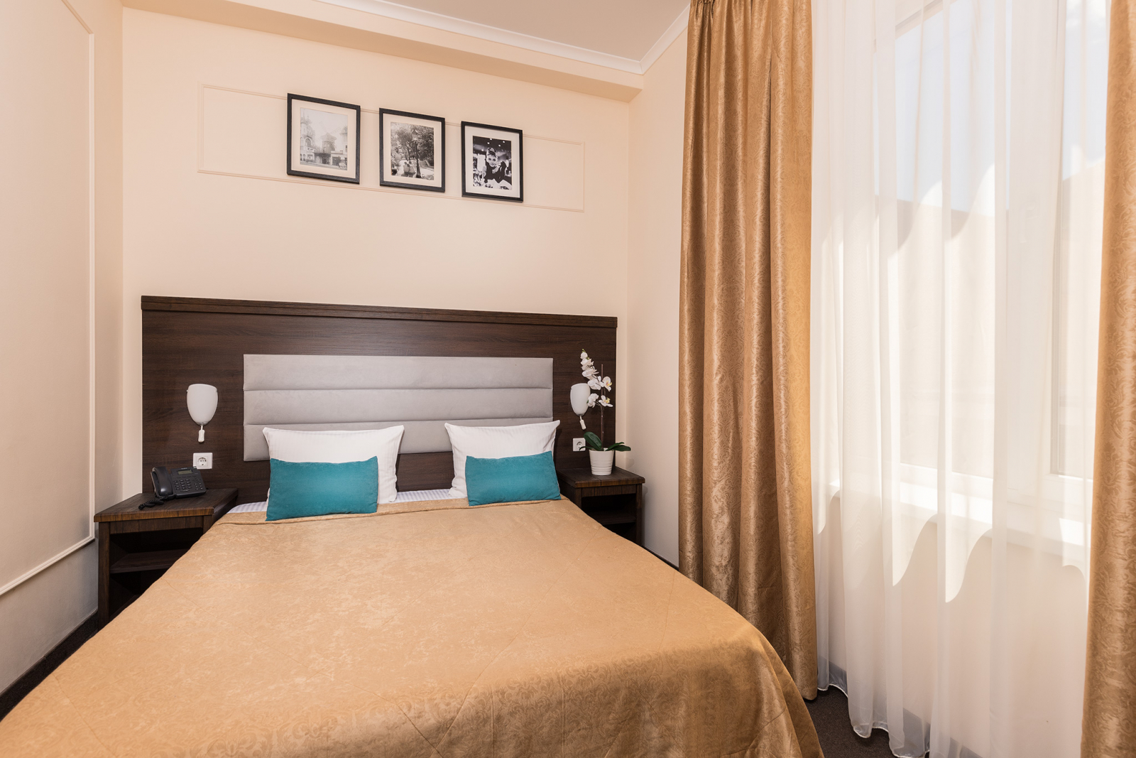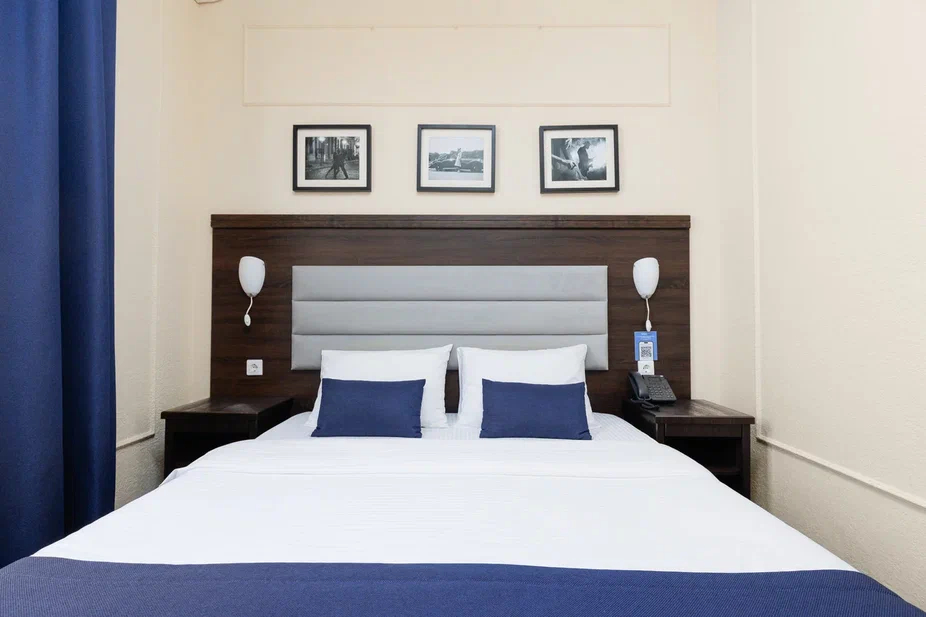 Площадь номера - 15 кв.м. 2 осн. места. Балкон. Мебель: вешалка, зеркало, кровать двуспальная, прикроватные тумбочки, стол, стул, шкаф. Оборудование: гладильная доска, мини-холодильник, сейф, сплит-система, телевизор ЖК, утюг, электрочайник. Санузел: с душем, тапочки, туалетные принадлежности, фен, халат. Сервис: Wi-Fi бесплатно, смена полотенец (1 раз в 3 дня), смена постельного белья (1 раз в 3 дня), уборка номера (ежедневно).