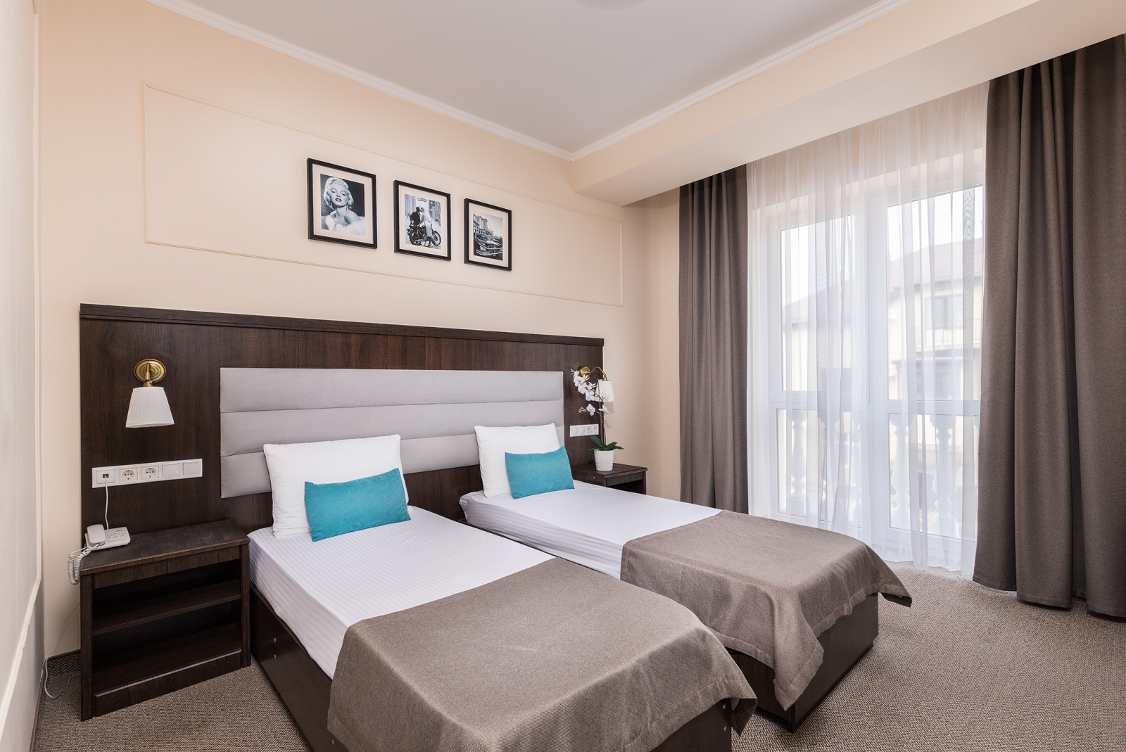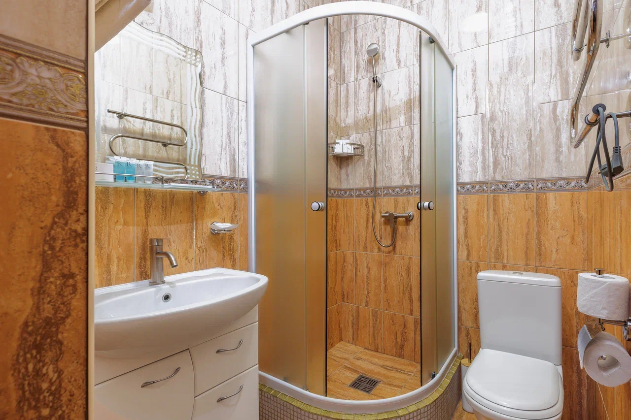Площадь номера - 23 кв.м. 2 осн. места. 1 доп. место. Балкон. Мебель: вешалка, зеркало, кровати односпальные /одна двуспальная кровать, прикроватные тумбочки, стол, стулья, шкаф. Оборудование: гладильная доска, мини-холодильник, сейф, сплит-система, телевизор, утюг, электрочайник. Санузел: с душем, тапочки, туалетные принадлежности, фен, халат. Сервис: Wi-Fi бесплатно, смена полотенец (1 раз в 3 дня), смена постельного белья (1 раз в 3 дня), уборка номера (ежедневно).