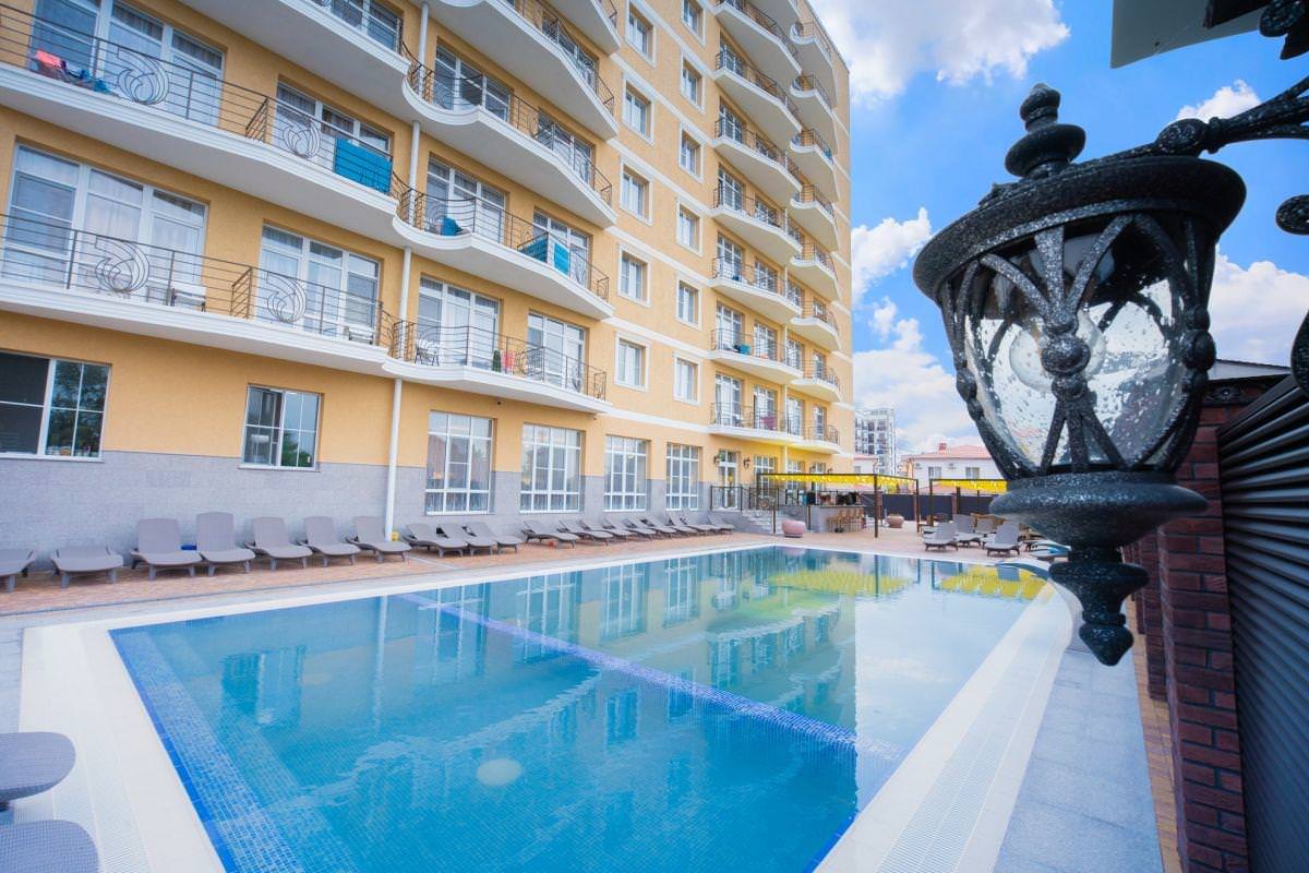 Самолетом до аэропорта г. Анапы, далее на маршрутном такси №127 до остановки «Аквапарк», далее на маршрутном такси №114 до остановки «Бульвар Шардоне», далее пройти пешком 740 м до отеля.