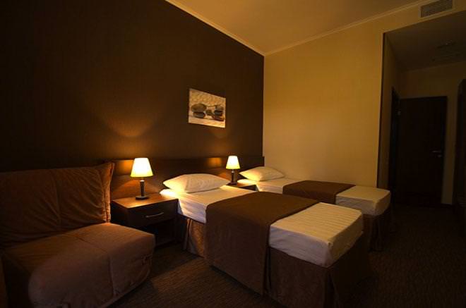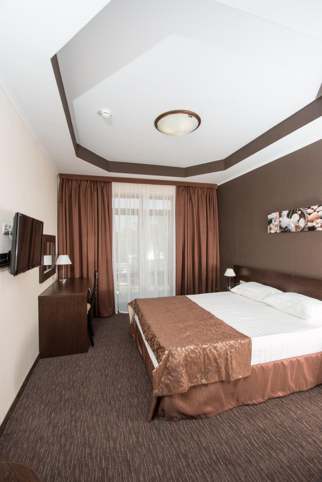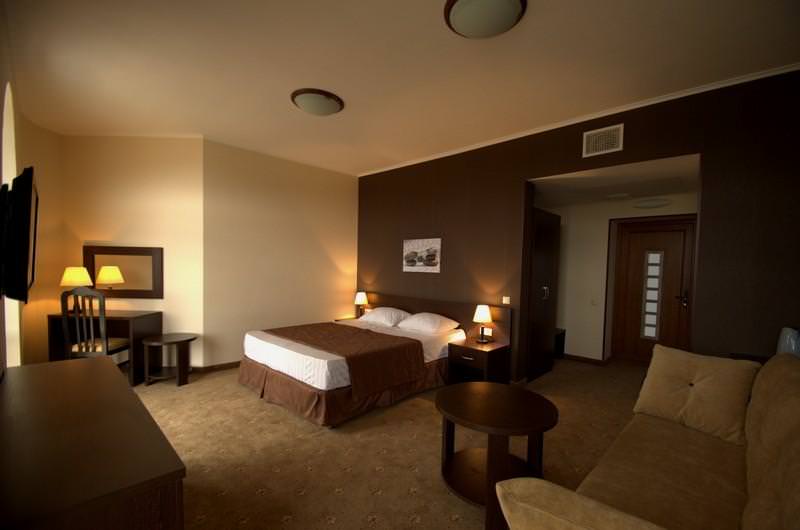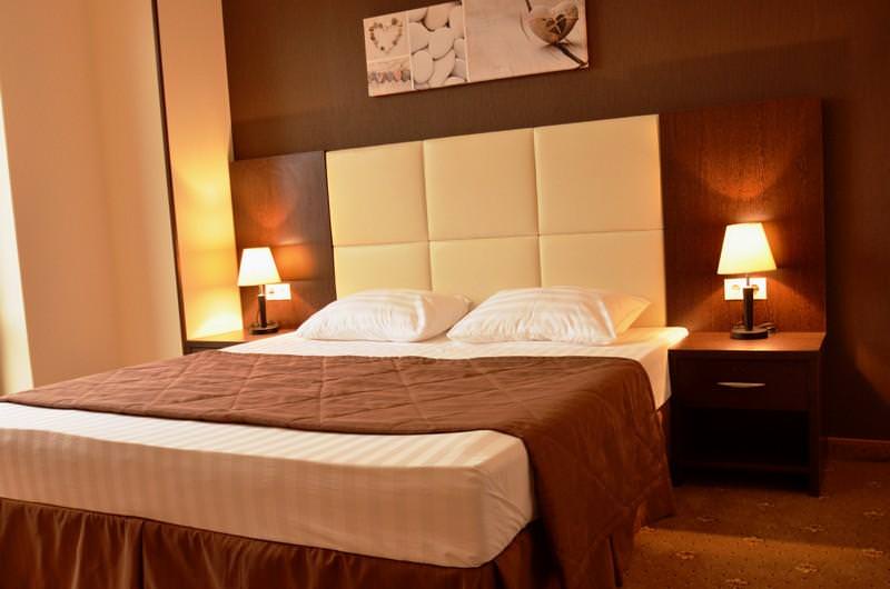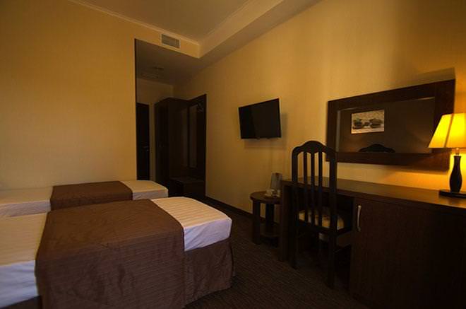 Номера категории "стандарт" это однокомнатные номера площадью 18 кв.м. В номере двуспальная кровать, либо 2 односпальные кровати, 2 прикроватные тумбы, кресло-кровать, ЖК ТВ., письменный/туалетный стол с зеркалом и встроенной тумбой под холодильник, небольшой прикроватный столик, шкаф для одежды, багажная тумба, прихожая с зеркалом. Все номера категории "стандарт" оборудованы центральной системой климат-контроля. Количество спальных мест : 2 ( 1)