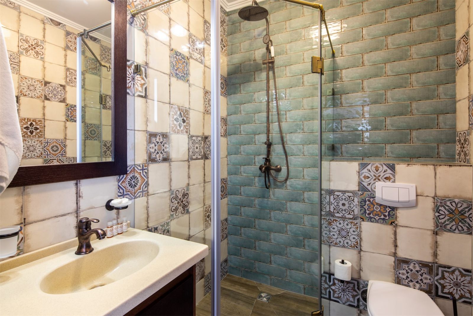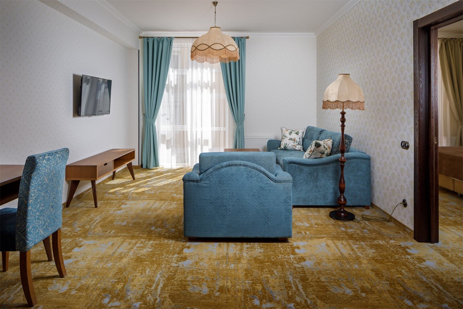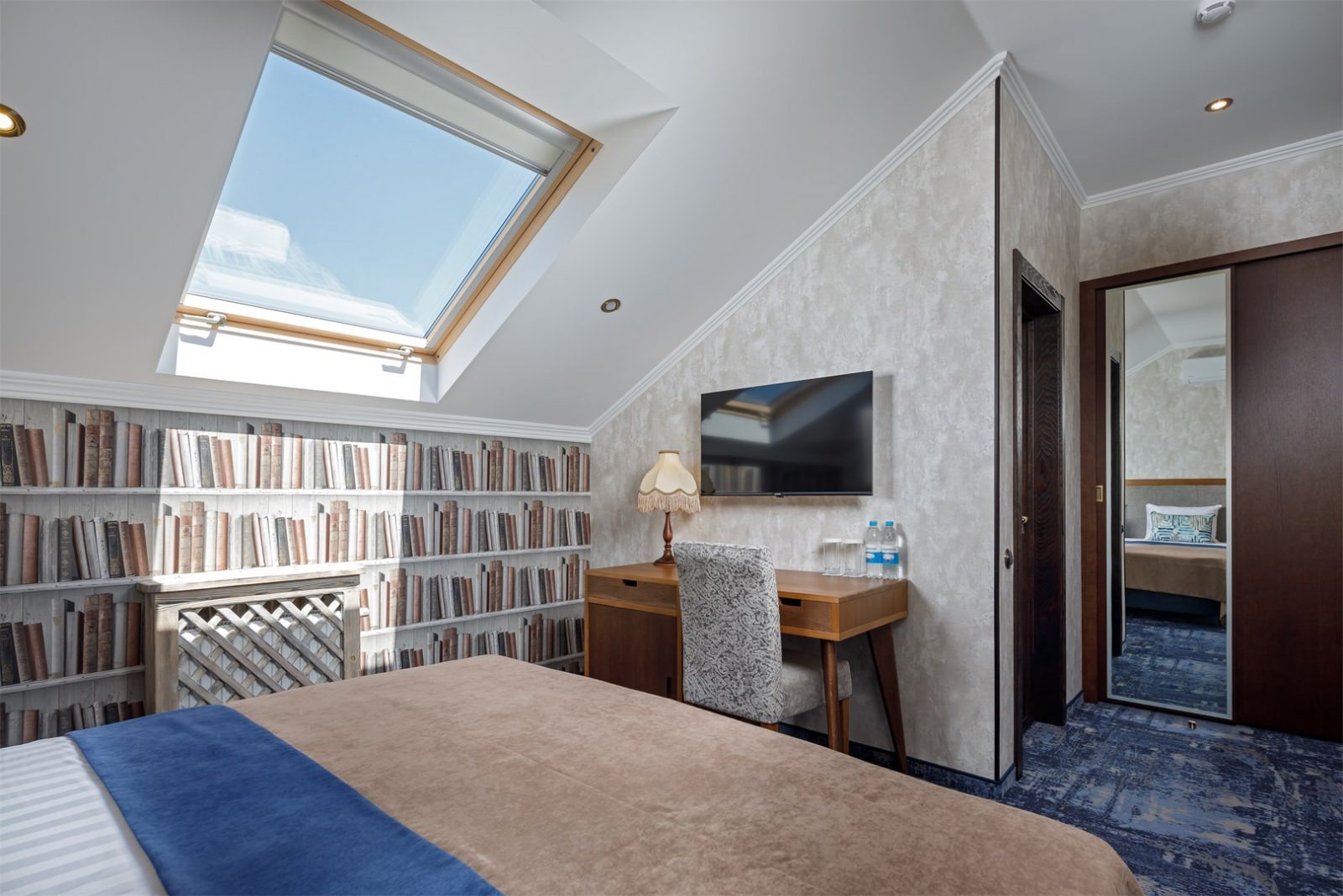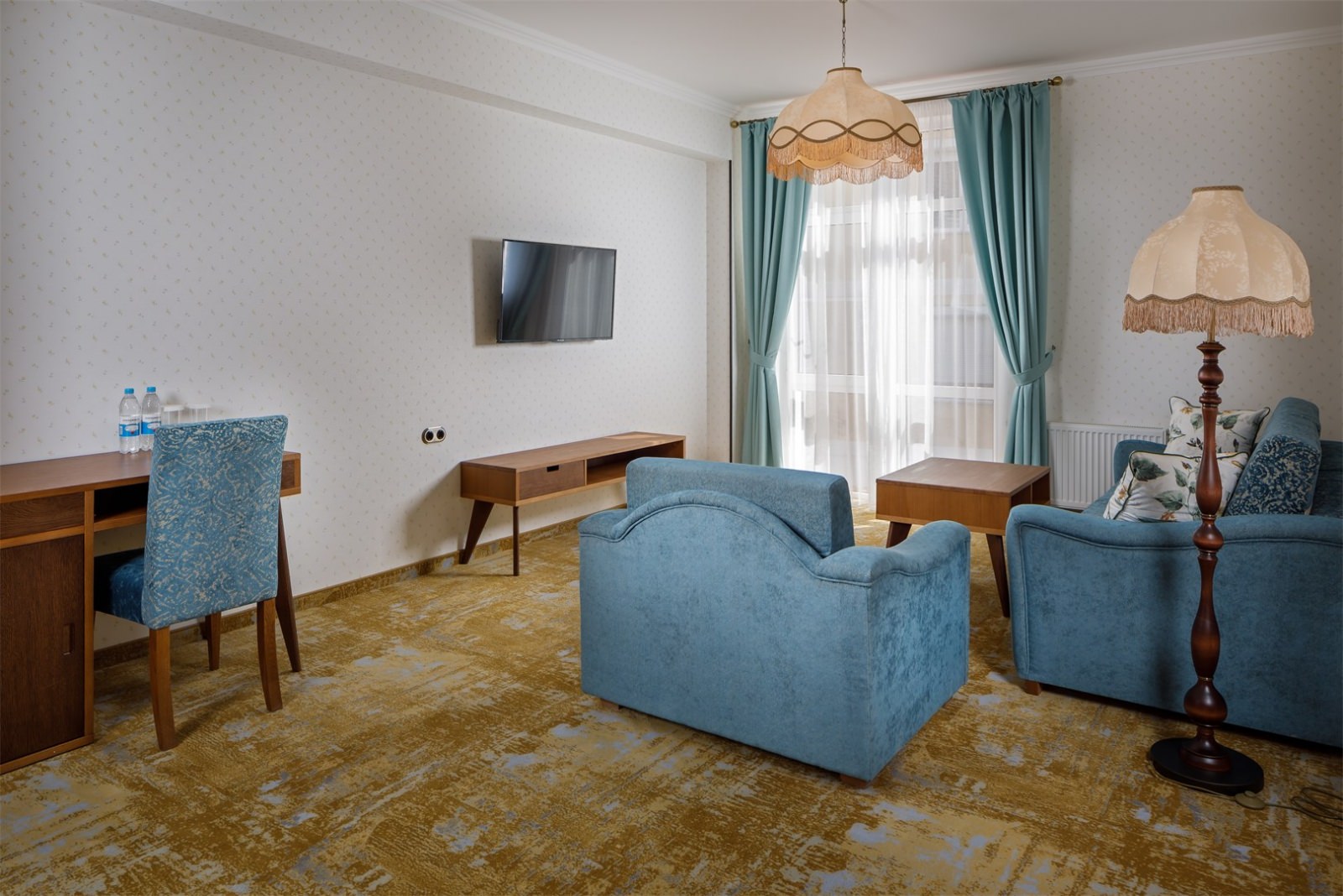 Трехэтажные жилые корпуса с мансардами разместились на благоустроенной закрытой территории гостиничного комплекса. Отель предлагает отдыхающим девять категорий номеров, способных вместить до 162 человек. Светлые номера в стиле прованс оснащены современной техникой и укомплектованы удобным мебельным гарнитуром с прикроватными тумбочками и шкафом-купе, в ванных комнатах гостей ожидают косметические принадлежности, тапочки, фен.