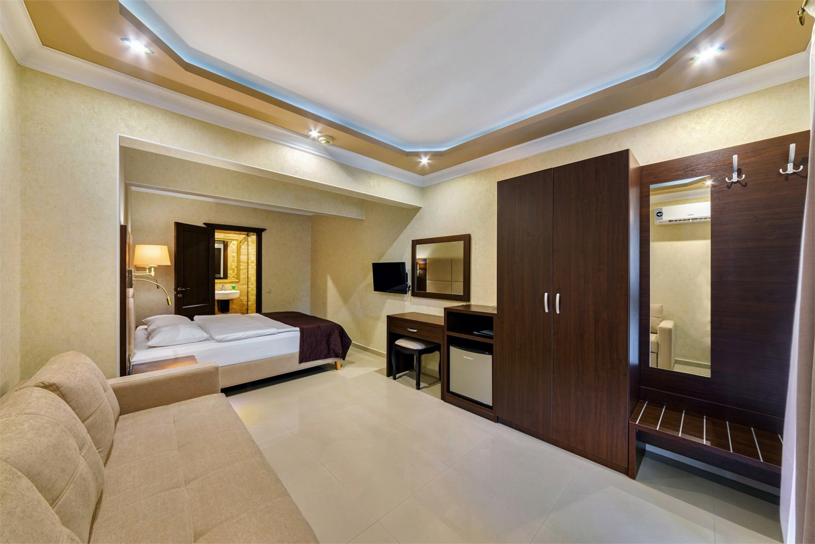20 кв.м, одна двуспальная кровать, с/у с душем, мини-холодильник, сплит-система, телевизор, Wi-fi, доп.место – диван-кровать