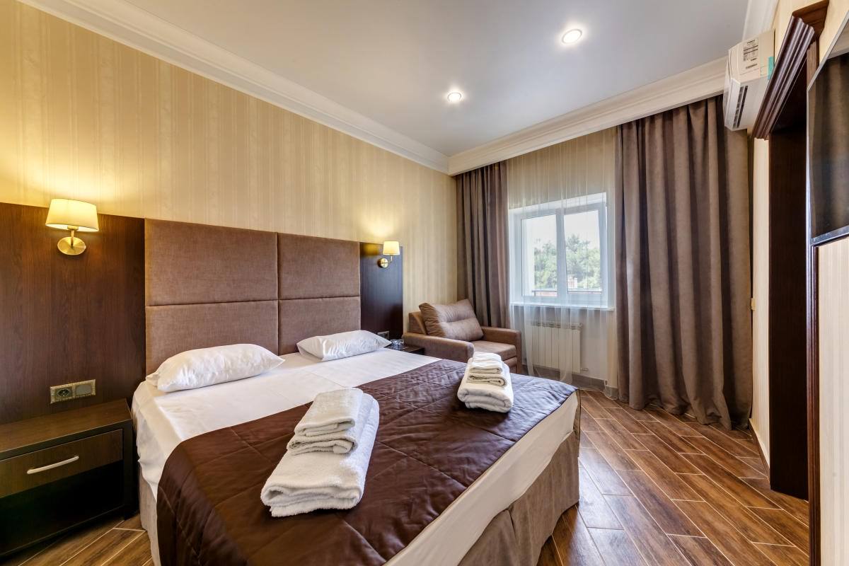 18 кв.м, одна двуспальная кровать, с/у с душем, мини-холодильник, сплит-система, телевизор, Wi-fi, доп.место – кресло-кровать