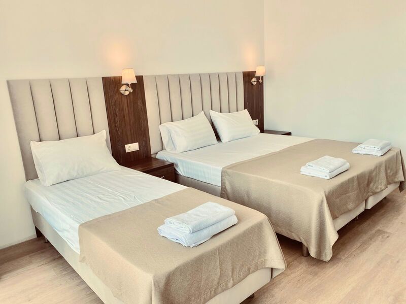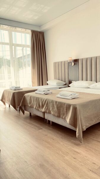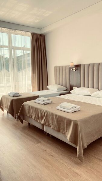 Площадь номера - 22 кв.м.; В номере: Двуспальная кровать, Односпальная кровать ; Макс. кол-во гостей - 3