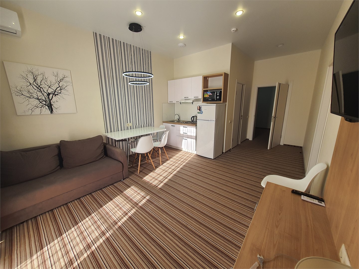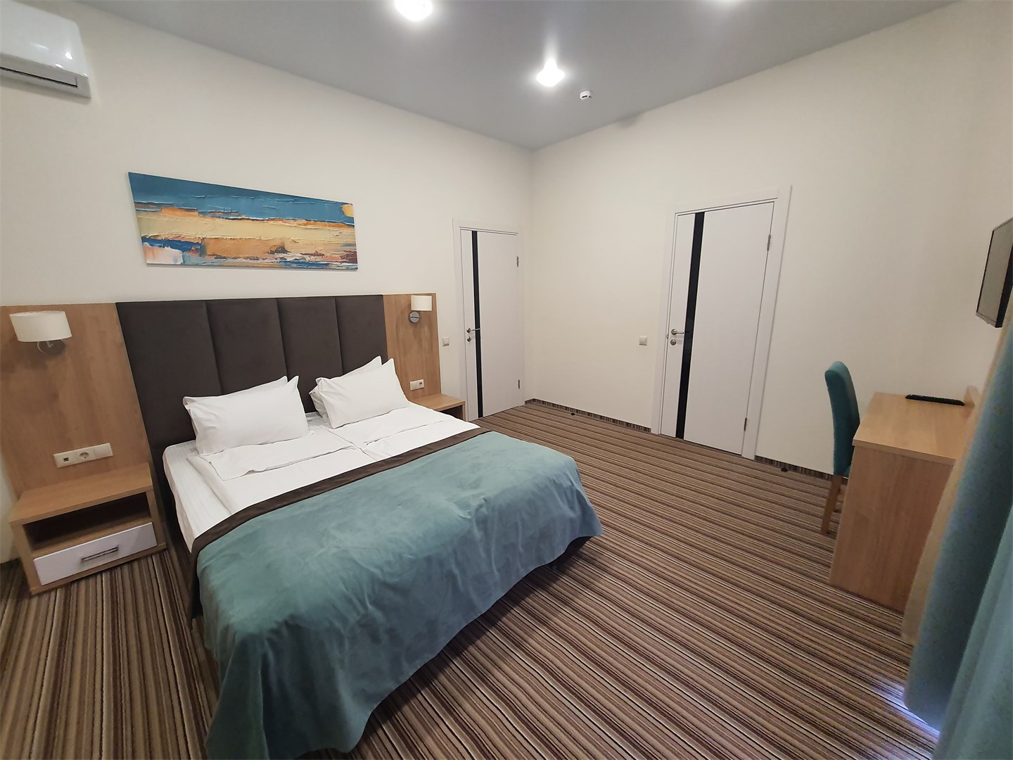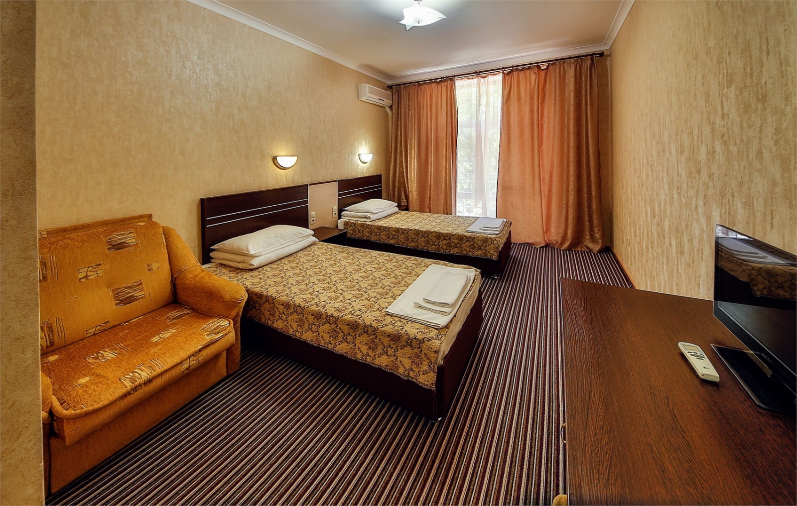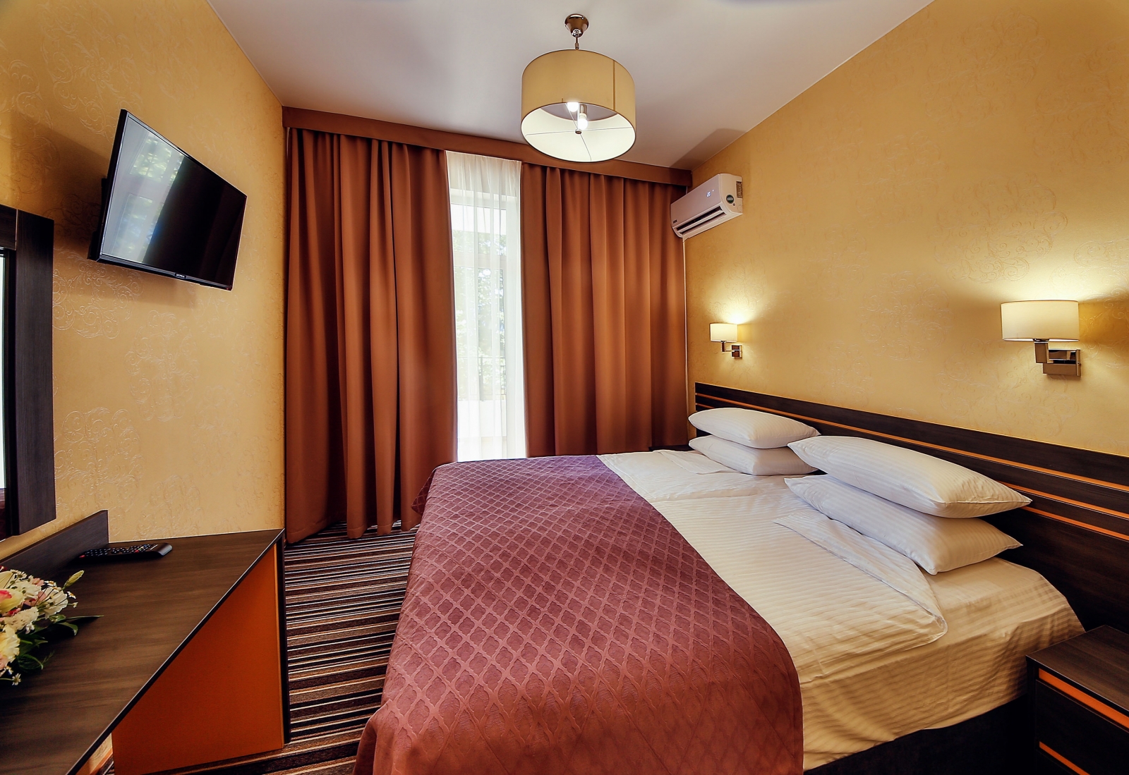 Заселение проходит в номерах категорий: стандарт, сюит, люкс и апартаменты. Здесь развита инфраструктура для занятий спортом: открыты спортивный и тренажёрный залы, волейбольная площадка, теннисные корты, поле для мини-футбола. Для гостей также есть сауна, библиотека, парикмахерская, массажный и косметологический кабинет. Собственный оборудованный пляж находится в 70 метрах.
