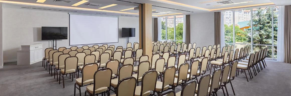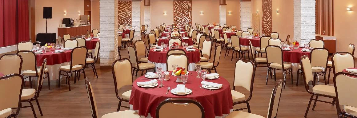 Территория отеля дает возможность корпоративным клиентам реализовать свои планы по организации и проведению различных мероприятий торжественного и праздничного характера. Это возможно благодаря наличию замечательных залов в ресторанах и кафе отеля.