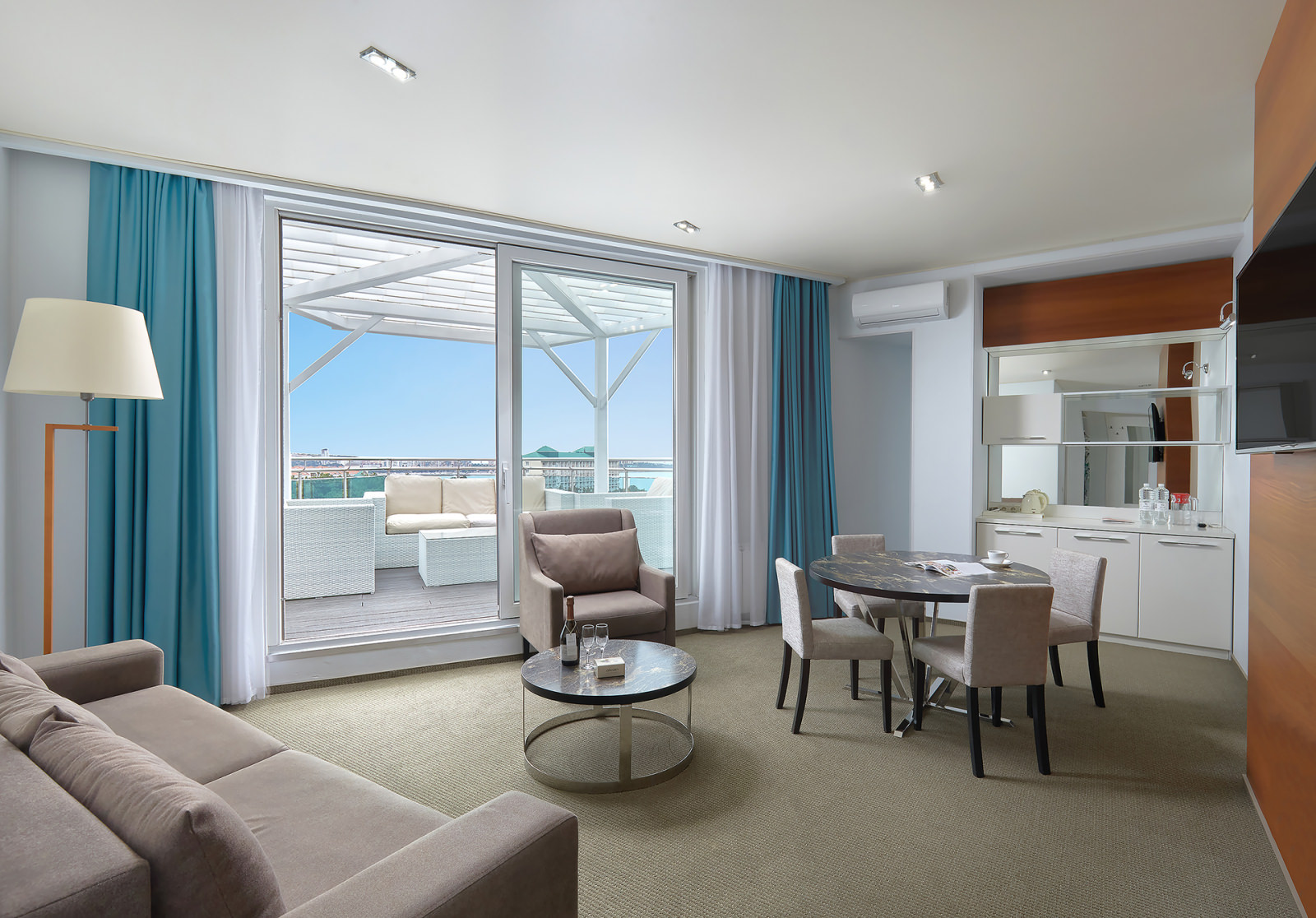 Для купания и отдыха с семьей предусмотрены отличный оборудованный пляж и комплекс бассейнов, где можно замечательно провести время, а любители активного досуга могут отправиться на спорт-площадки и даже заняться водным поло.