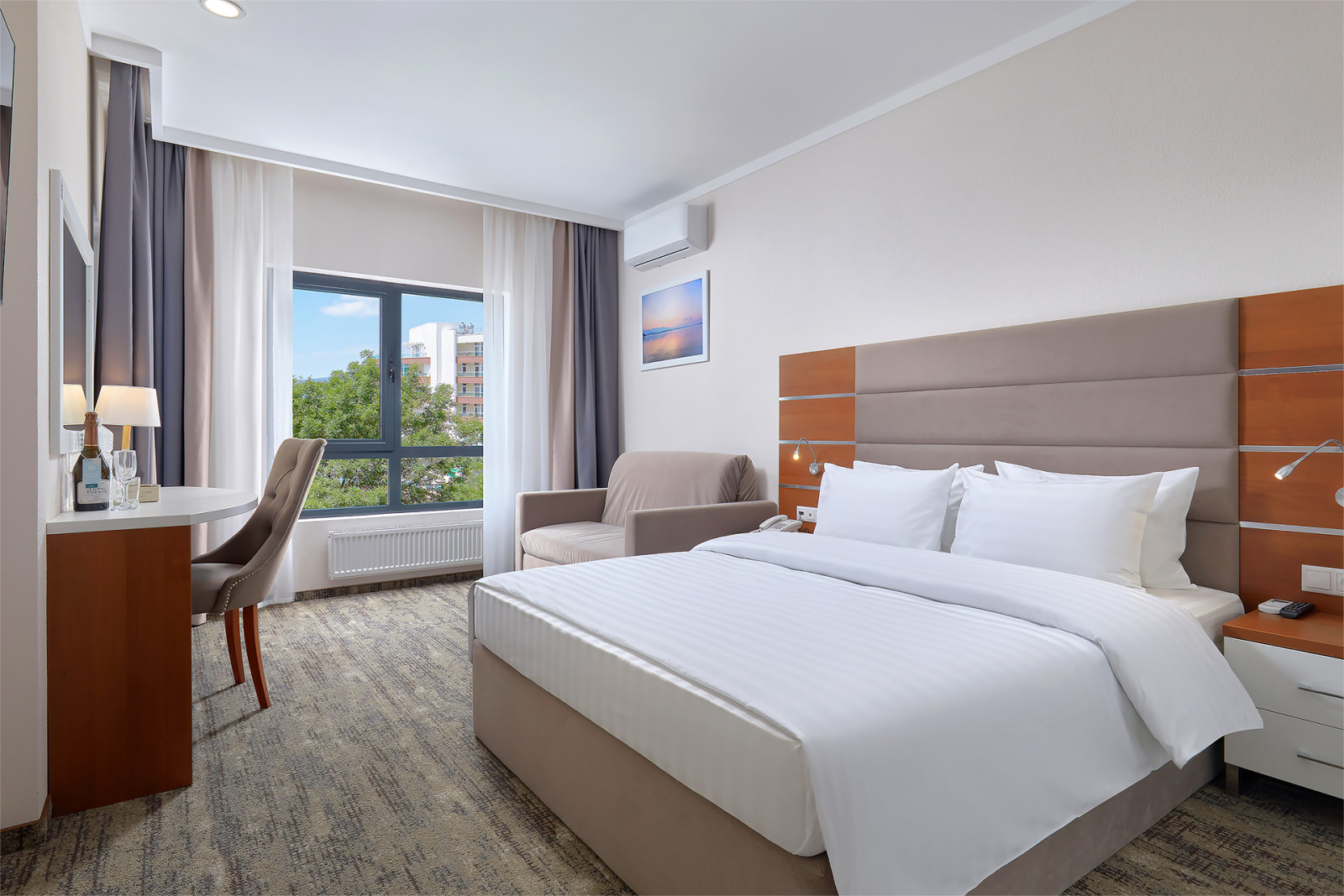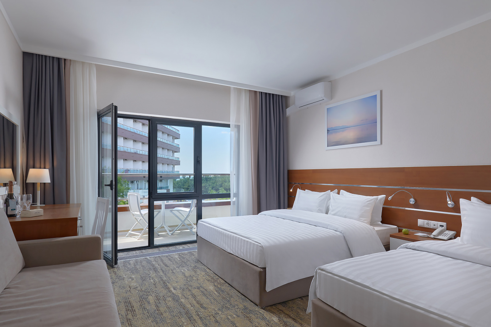 Номерной фонд отеля «Биарриц» представлен двумя жилыми корпусами, включающими в себя 330 номеров различных категорий от бюджетных вариантов (стандартные номера) до роскошных люксов, поэтому отдыхающим будет совсем не трудно определиться с выбором номера.