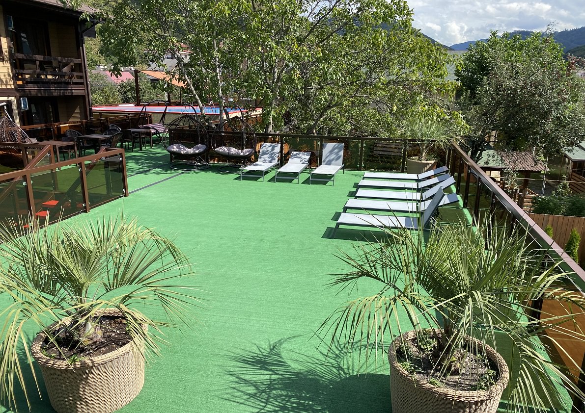 Самолетом до аэропорта Адлер, далее автобусом №105э,105,105с,535 до остановки «Мегафон», далее пешком 380 м до отеля.