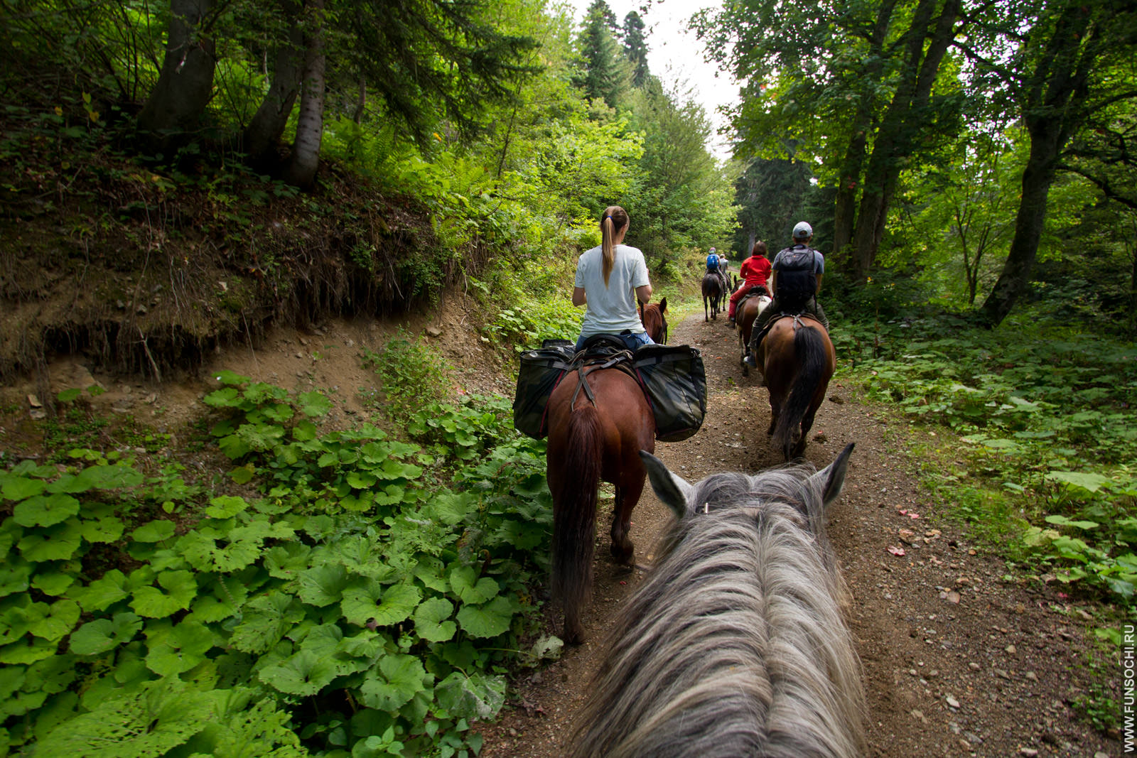 Прогулки на лошади в горах доставят вам незабываемые эмоции. Местные лошади карачаевской породы считаются одними из самых красивых в мире. У вас будет возможность любоваться пейзажами гор из седла лошади, которая будет уверенно везти вас по самым извилистым тропам.