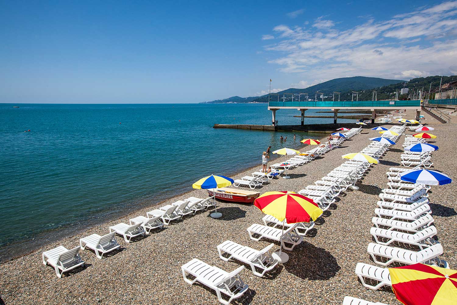 Отдыхающие имеют возможность посетить пляж в горах или отправиться на Черное море. Местный пляж рассчитан на 300 человек. Отдых там доставит вам максимум комфорта. Пляж оборудован зонтами и шезлонгами, имеются пляжные полотенца.