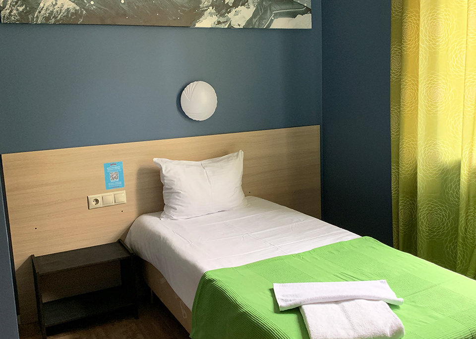 Поездом до ж/д вокзала Роза Хутор, далее пройти 1,93 км до канатной дороги «Олимпия», далее проехать до станции «Олимпия 1100 м», далее пройти 980 м до отеля.