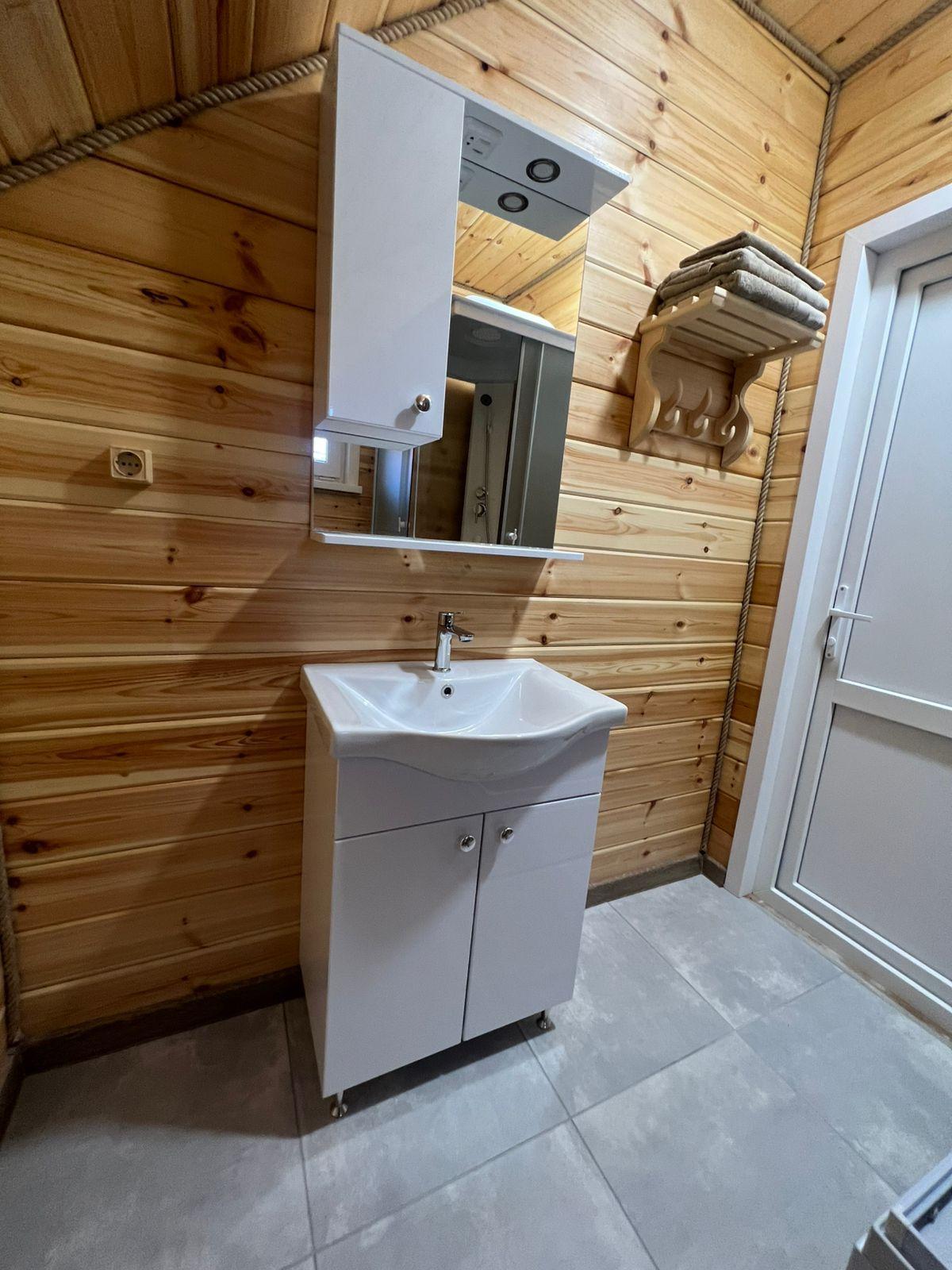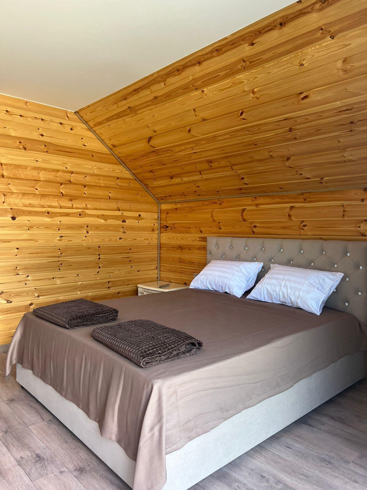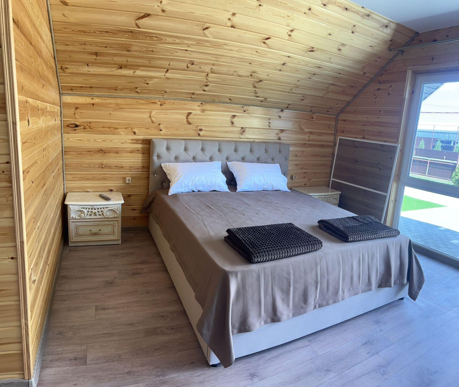 Площадь номера 35 квадратных метров. Одна двуспальная кровать. Собственный санузел и душевая кабинка. Телевизор, беспроводной интернет.