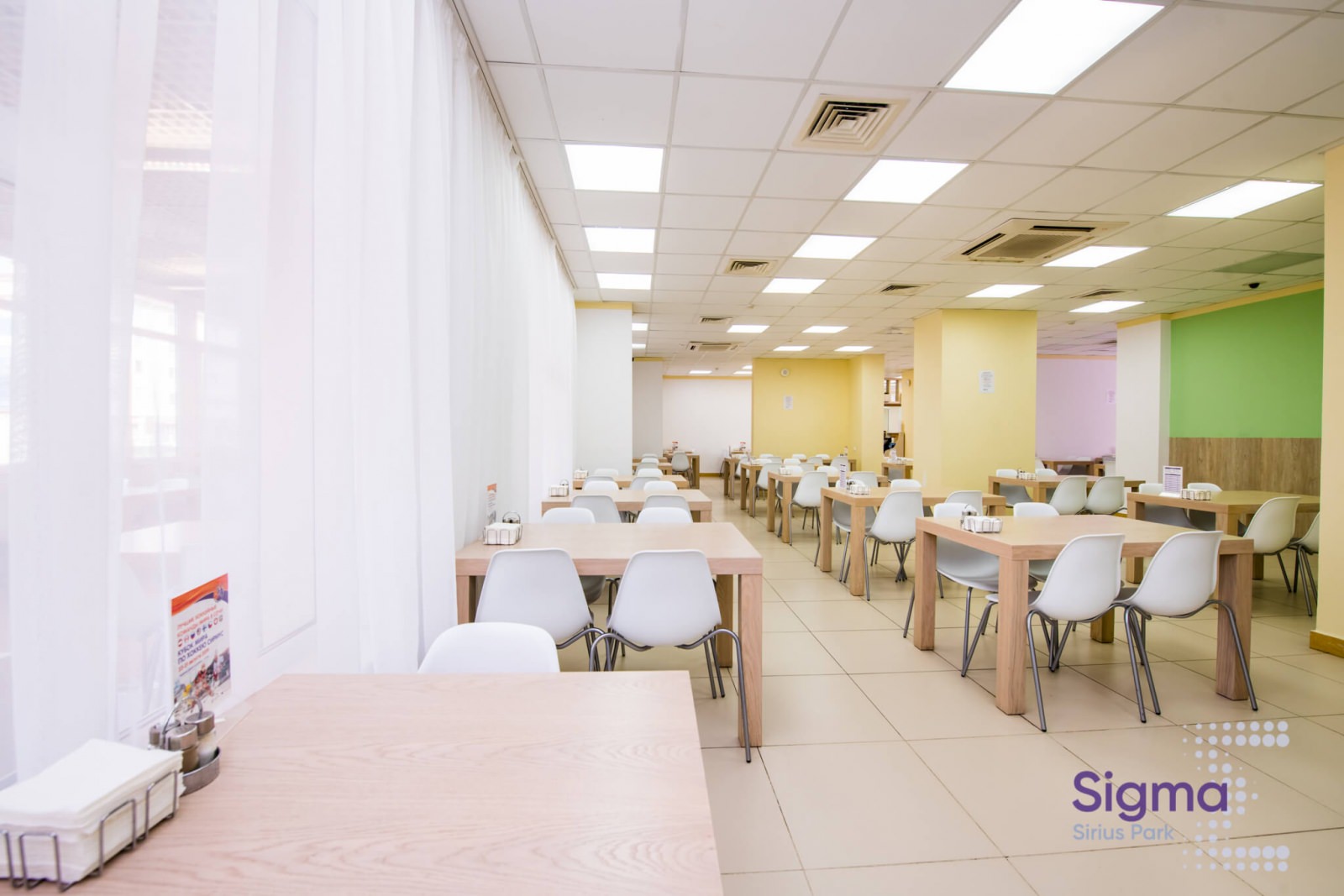 Светлое оформление и качественное освещение делают это место еще более уютным.