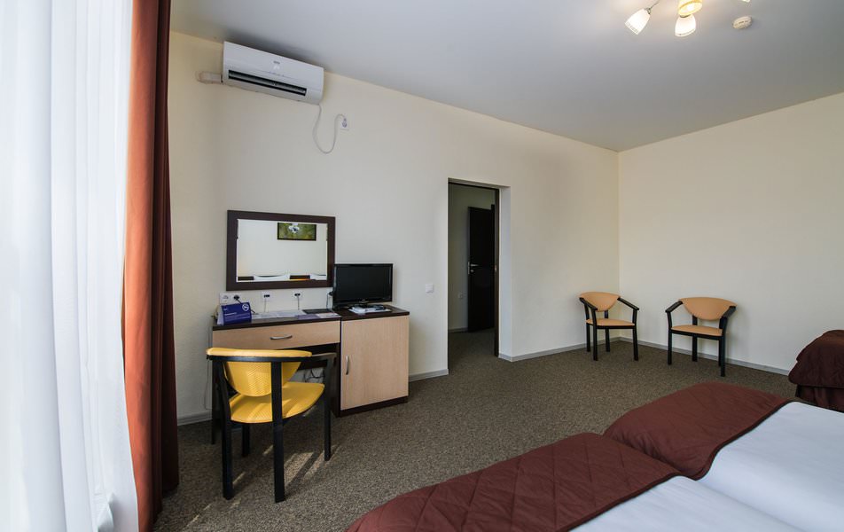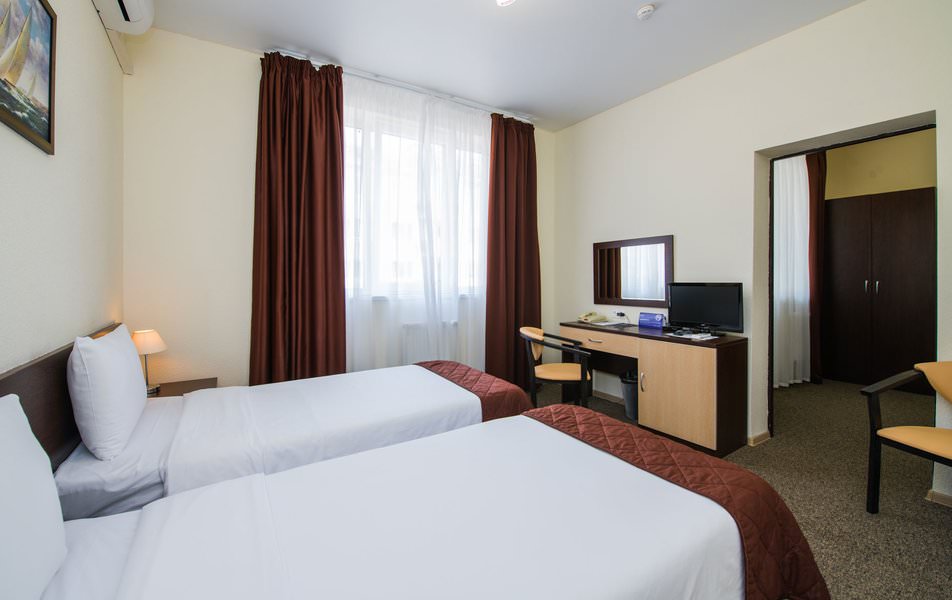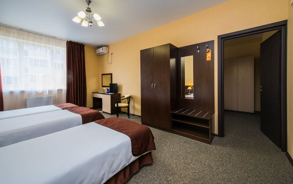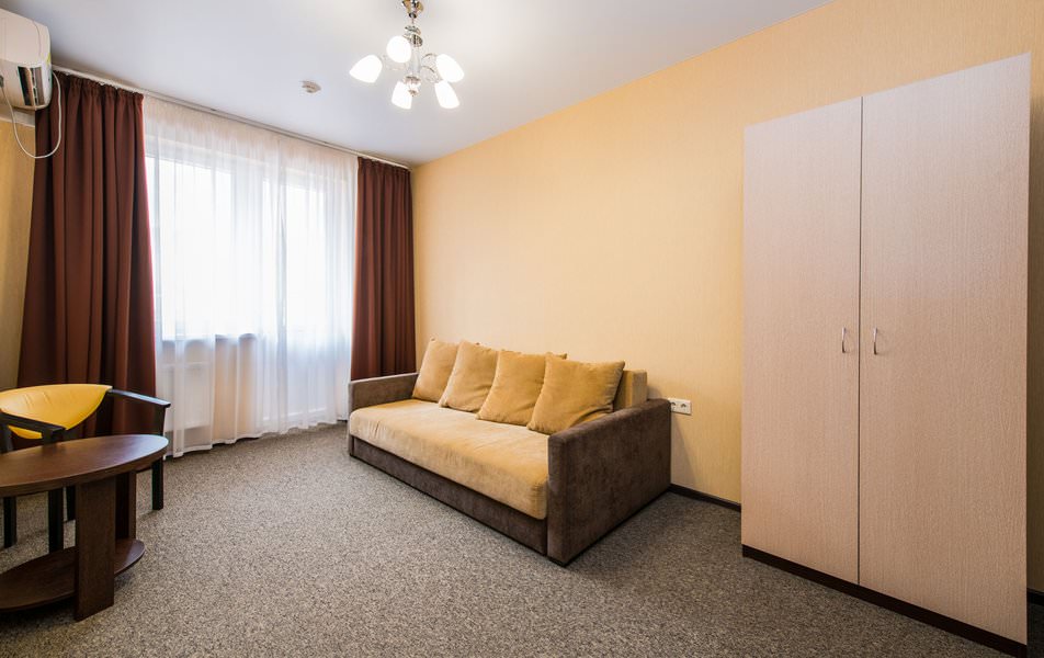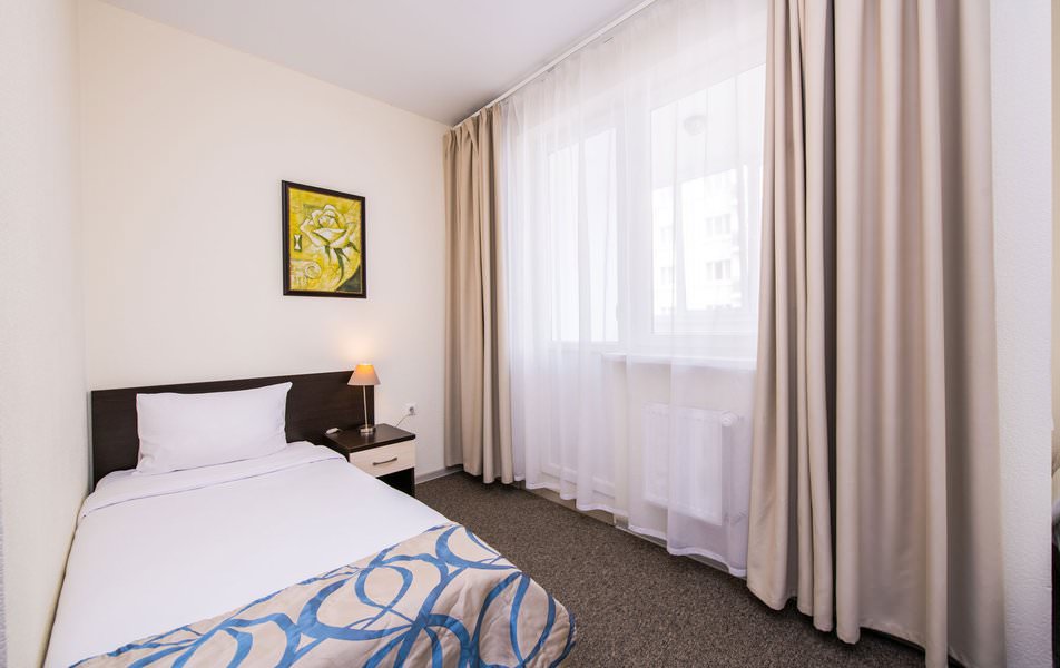 Номер для комфортного и спокойного проживания одного постояльца. Оснащен бытовой техникой. Есть мини-бар.