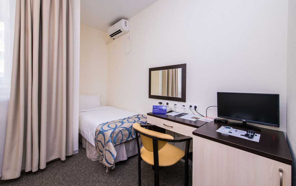 Минимальный набор самых необходимых удобств: мягкая односпальная кровать и письменный стол. Оснащен бытовой техникой. Есть мини-бар.