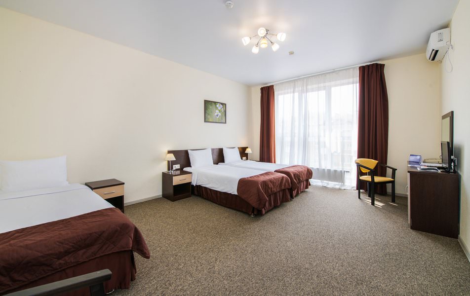 Номера такого типа оснащены тремя одноместными кроватями, плазменным телевизором, кондиционером и другими удобствами.