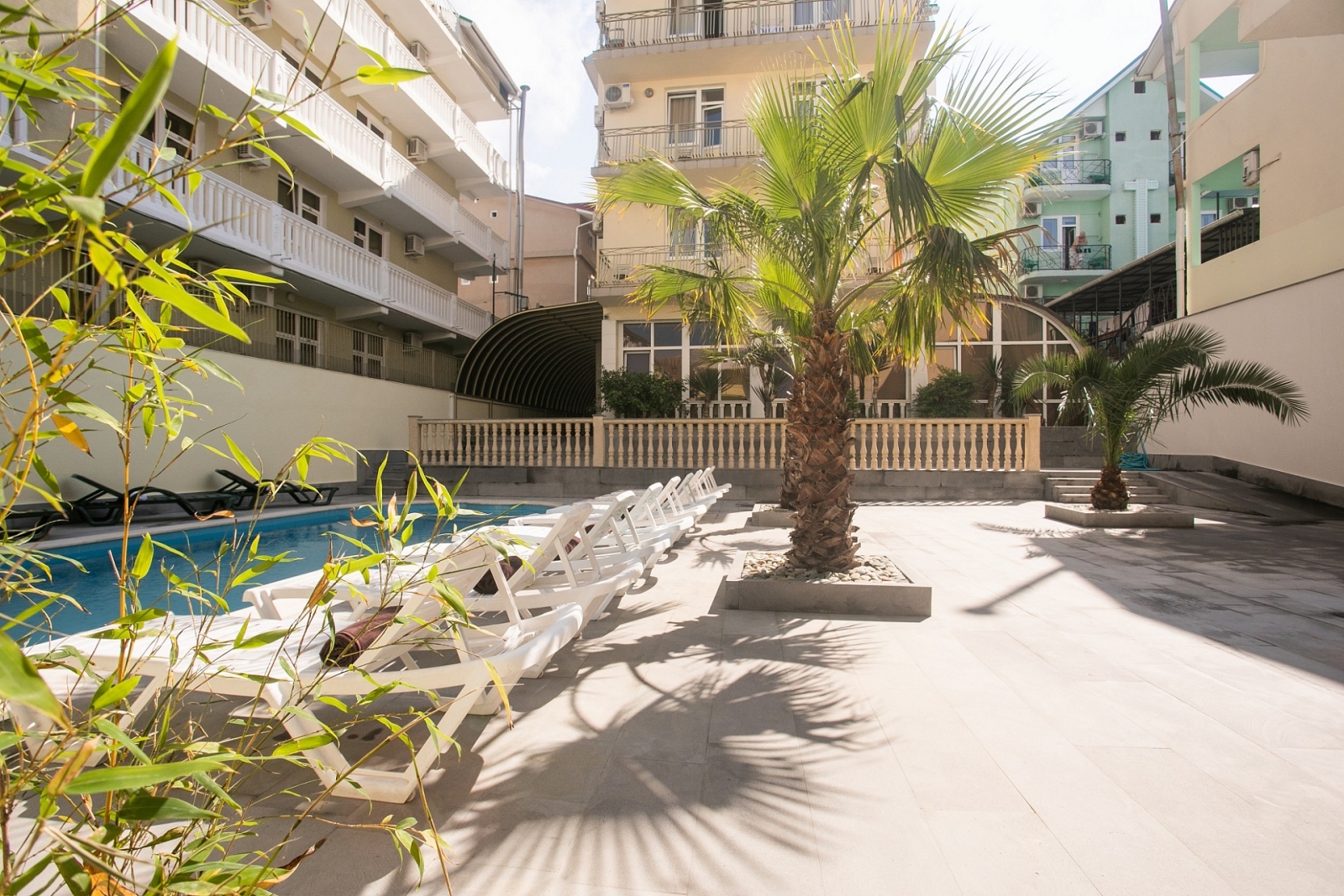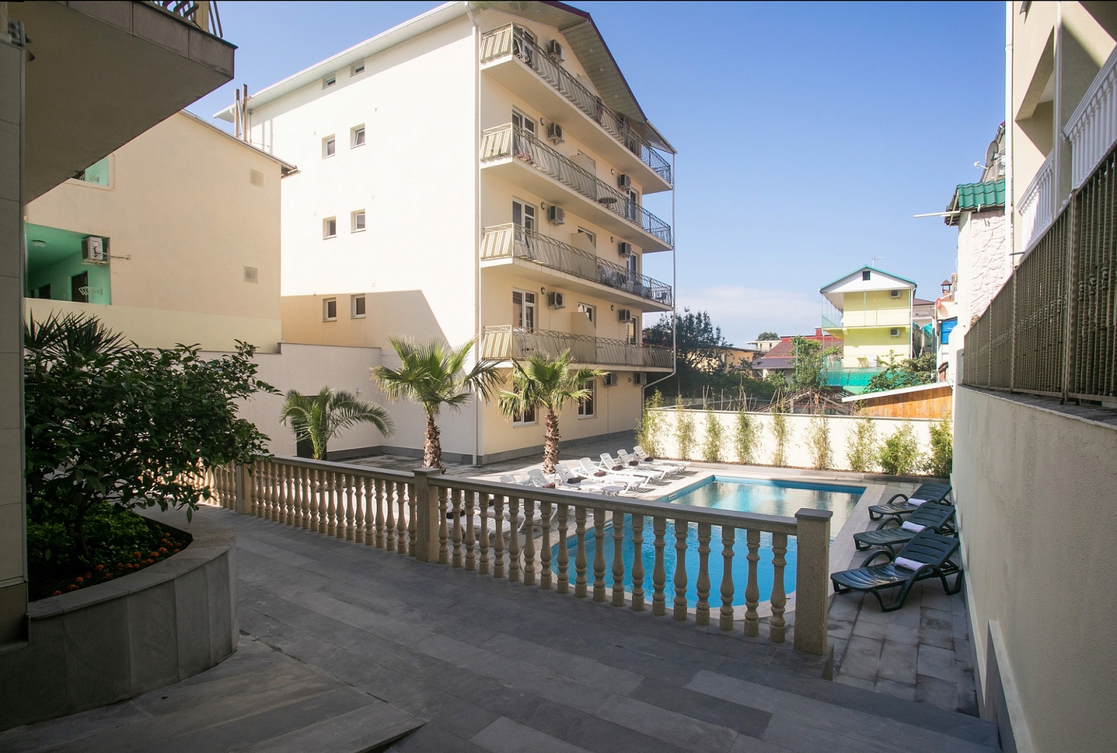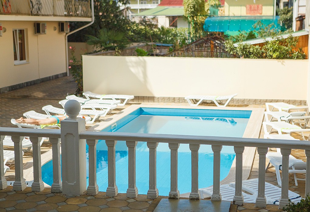 Самолетом до аэропорта Адлер, далее на автобусе №105, 105с до остановки «Пансионат Знание». Затем 530 м пешком (~ 6 минут) до отеля.