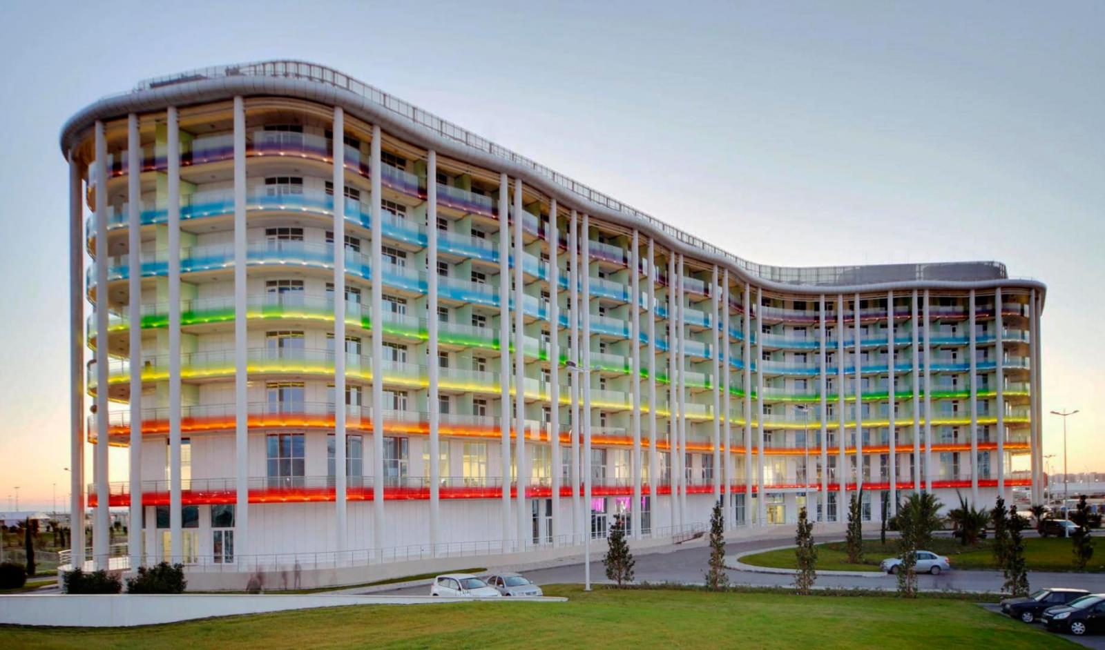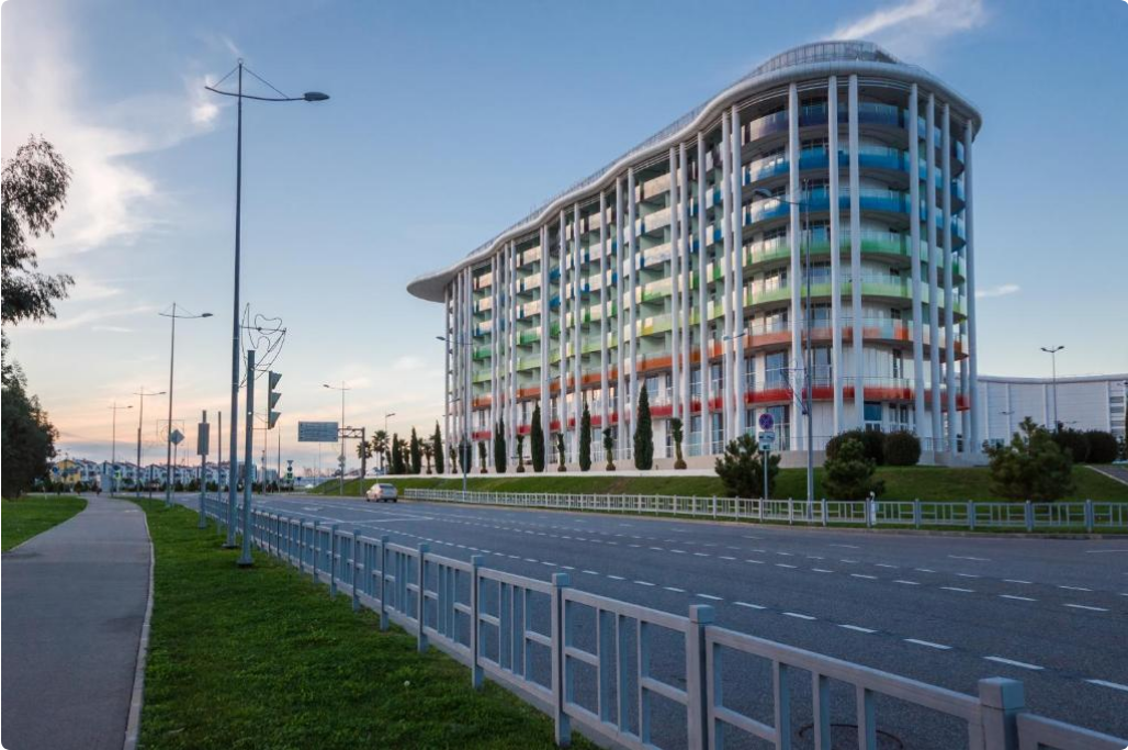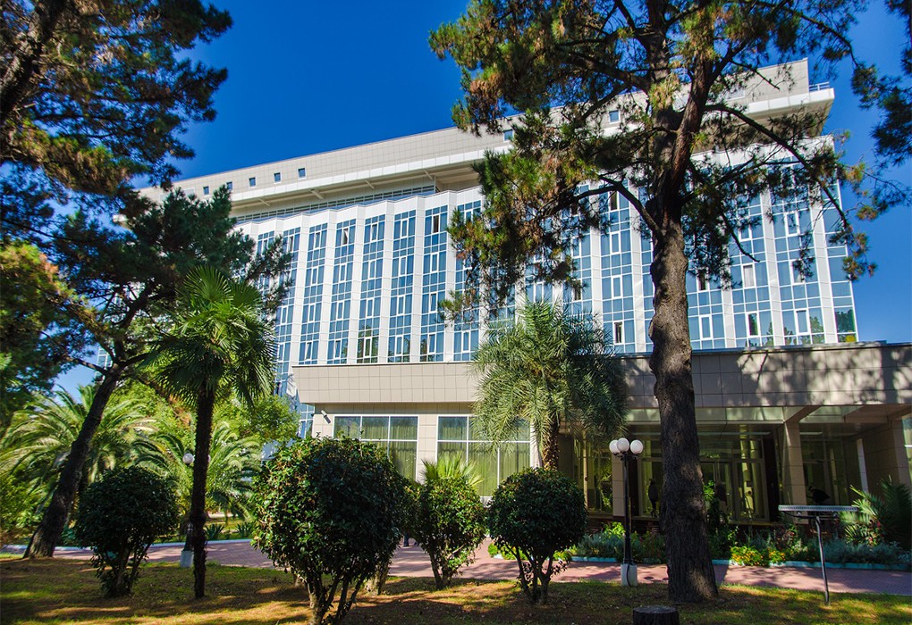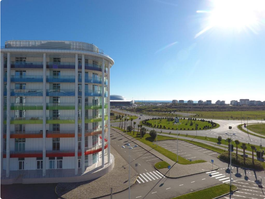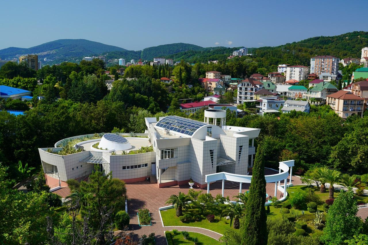 На самолете до ж/д вокзала Адлер, далее на автобусе №88 до остановки «Главный Медиацентр».