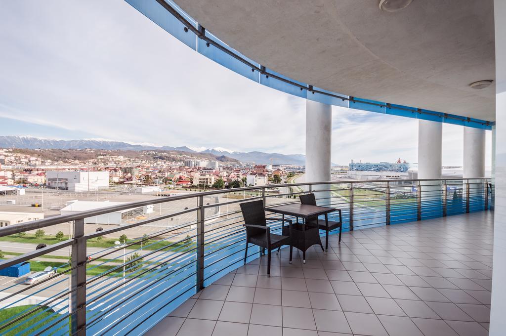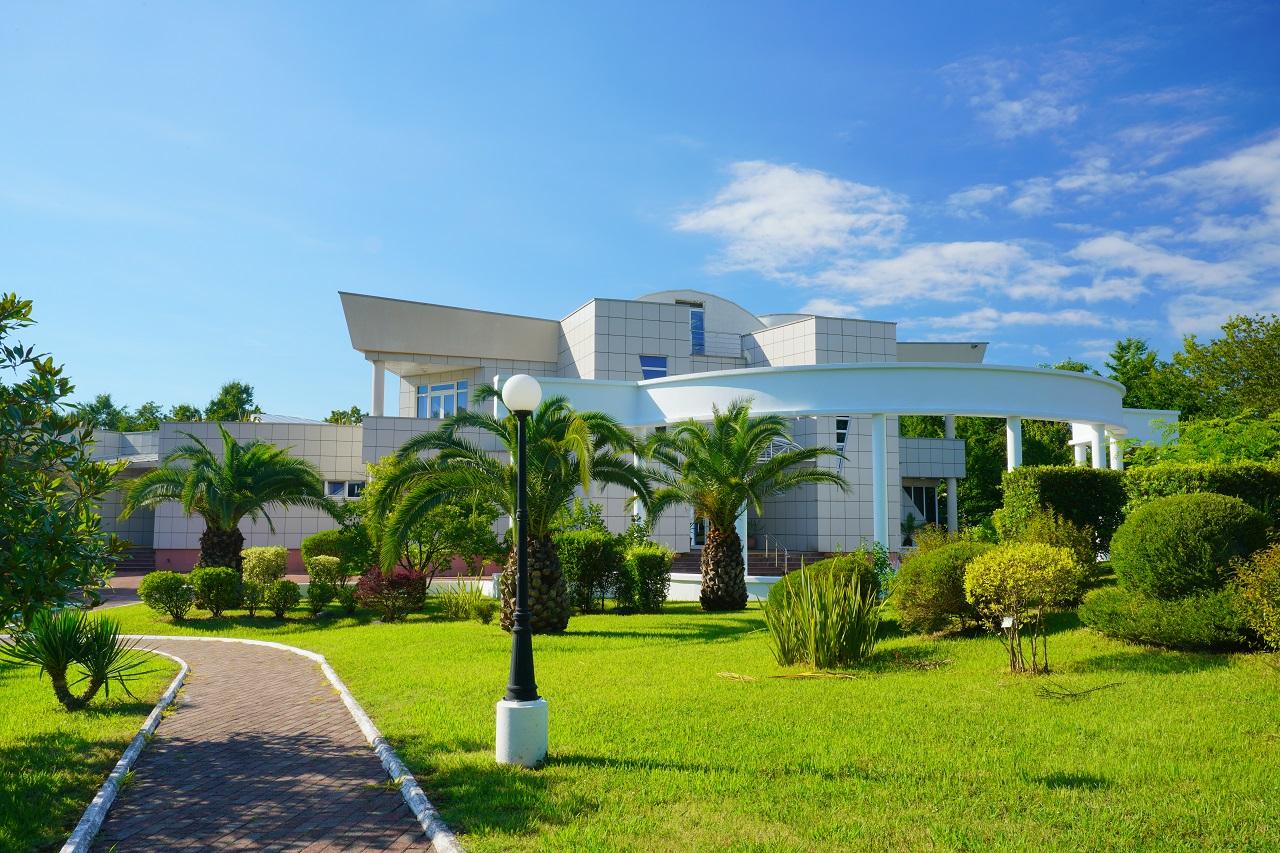 На поезде до аэропорта Адлер, далее на автобусе №135 до остановки «Главный Медиацентр».