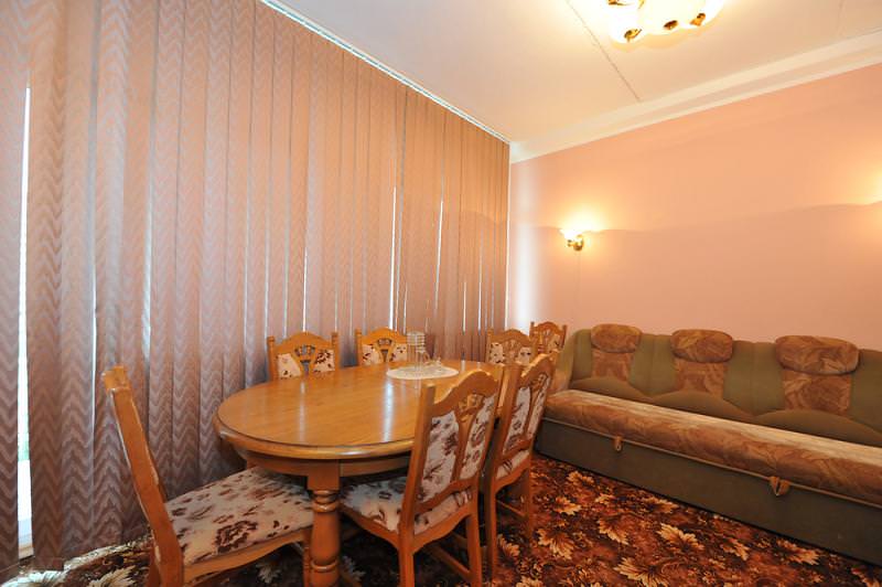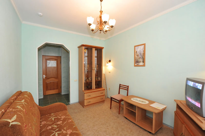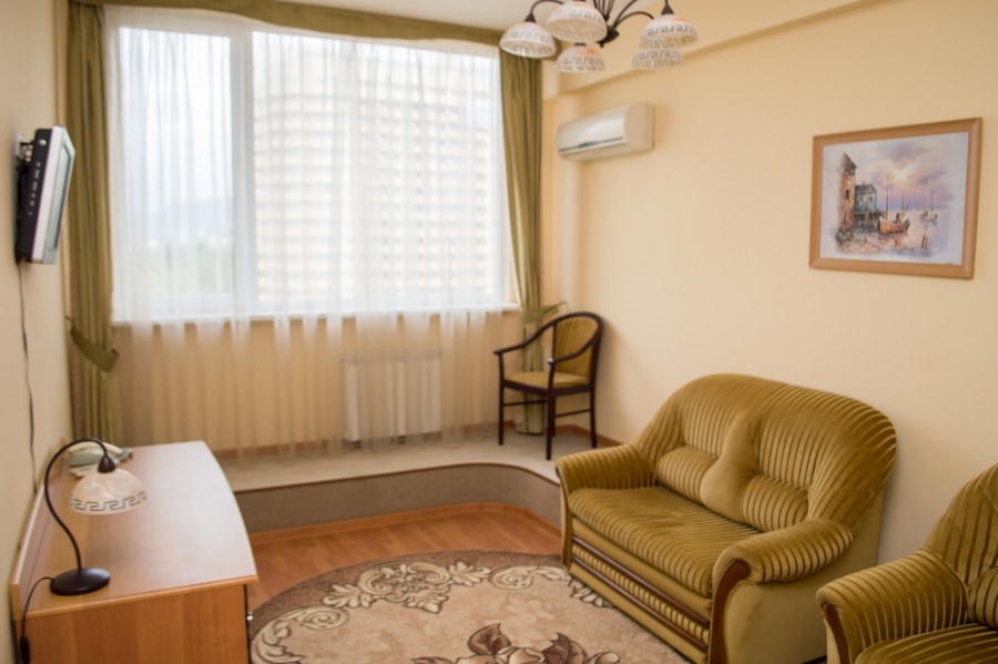 Данная категория номеров светлое классическое оформление, 2 комнаты и обладает площадью 28 кв. метров, чего вполне достаточно для размещения двух гостей санатория в условиях повышенного комфорта.