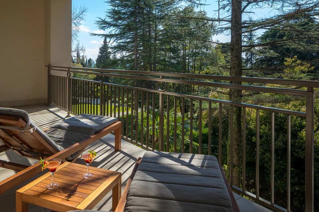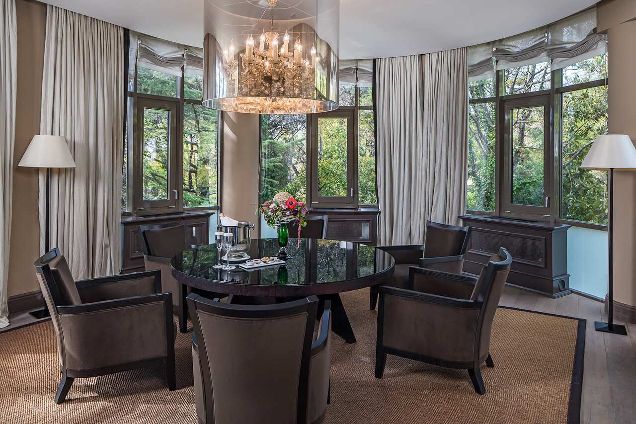 Эксклюзивная категория номеров создана для самых избирательных гостей и ценителей свободного пространства. На площади 162 кв.м. разместилось сразу несколько комнат, где вы будете чувствовать себя свободно и уютно. Светлая ротонда с дизайнерской люстрой, откуда открывается вид на море и парк полюбится ценителям изысканных трапез, а эргономичная бизнес-зона –