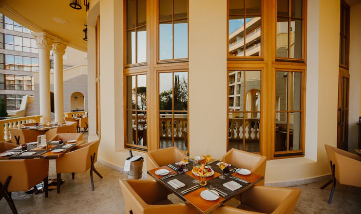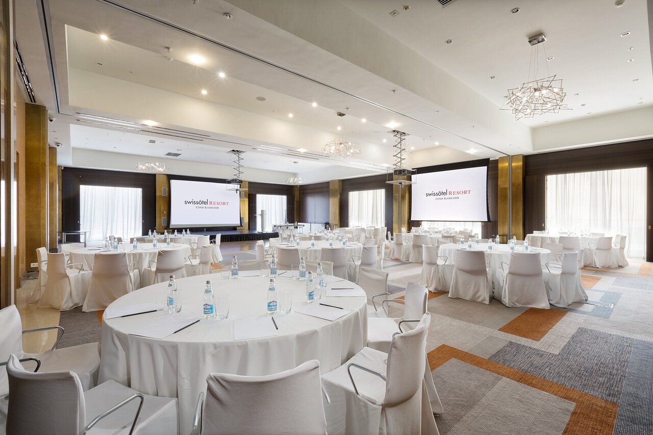 Пятизвездочный отель Swissotel Resort Sochi Kamelia находится на Черноморском побережье. До песчано-галечного пляжа – 200 метров. Там есть шезлонги, зонты, тенты и бар.