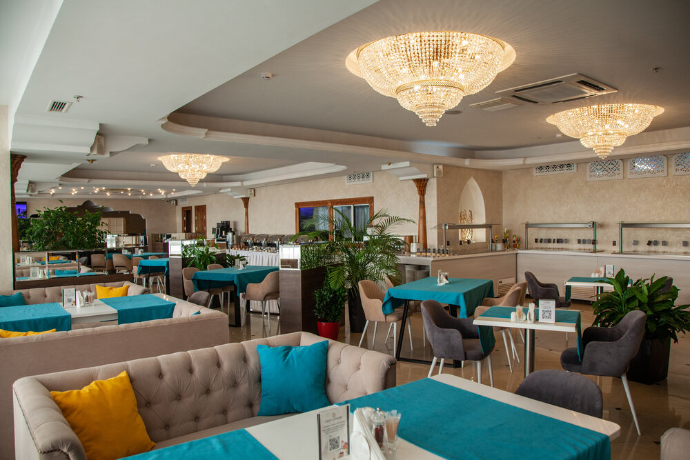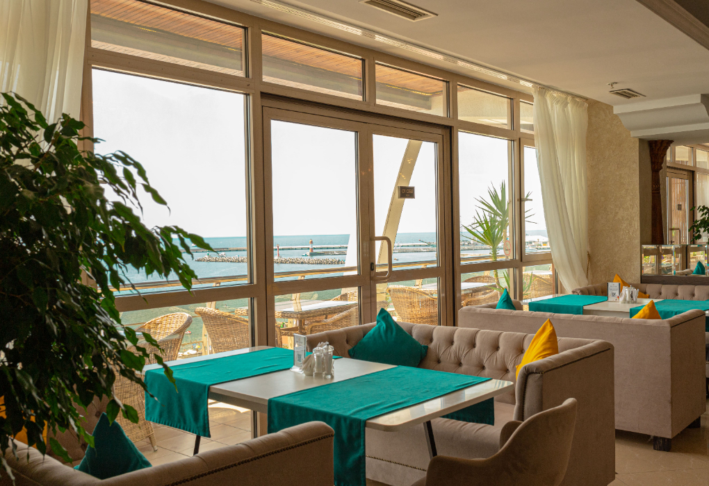 При отеле работают лобби-бар, обеденный зал и ресторан с видом на море. Тарифы питания в отеле: Без питания, Завтрак, Полупансион, Полный пансион. При бронировании любого тарифа посещение СПА входит в стоимость.